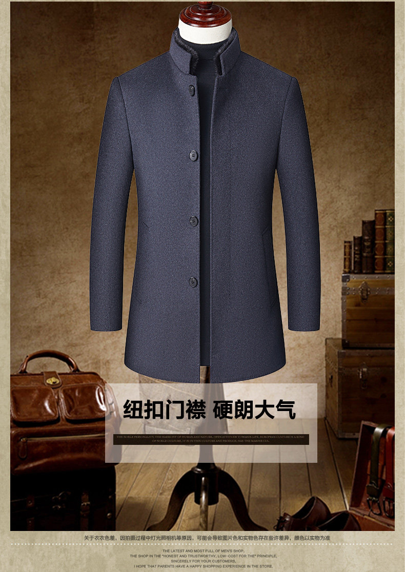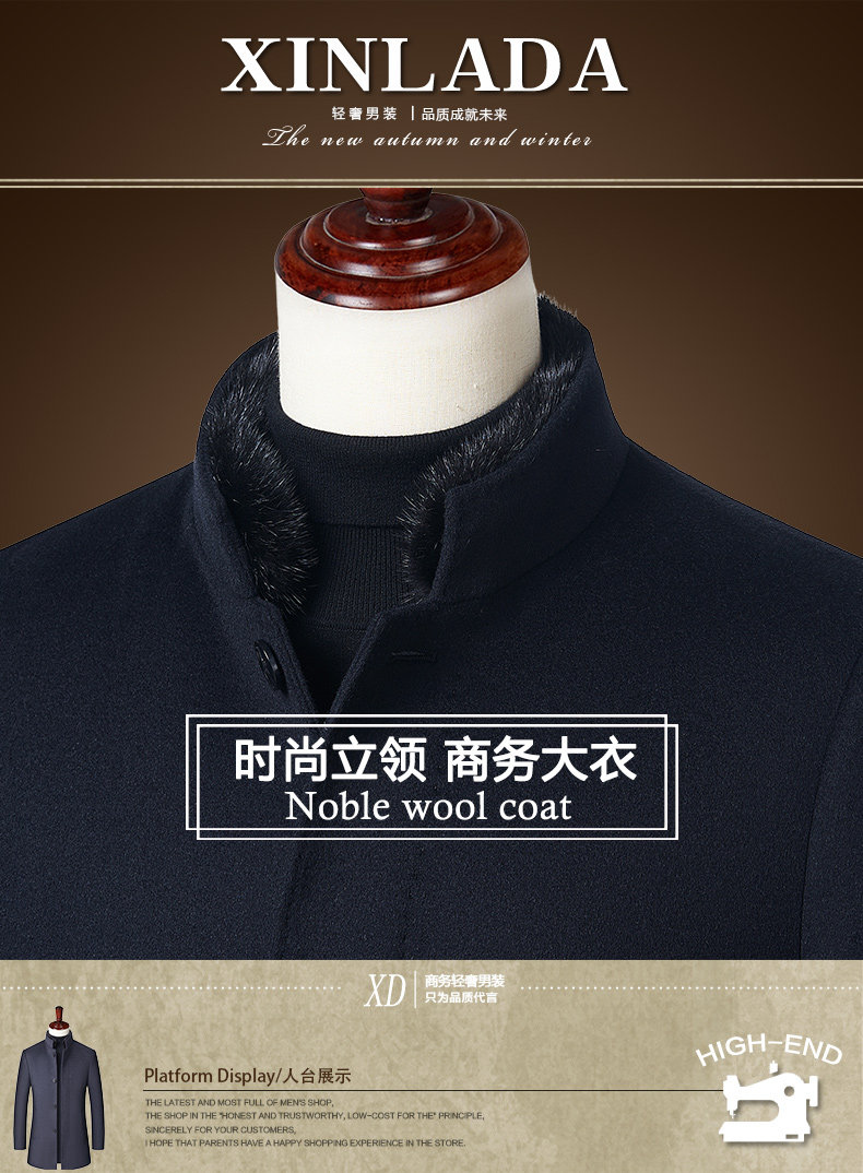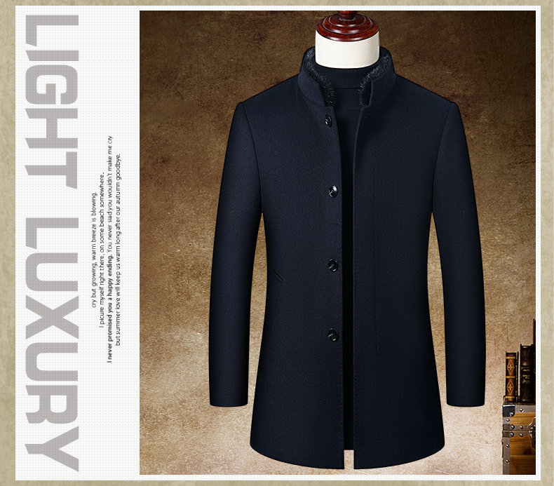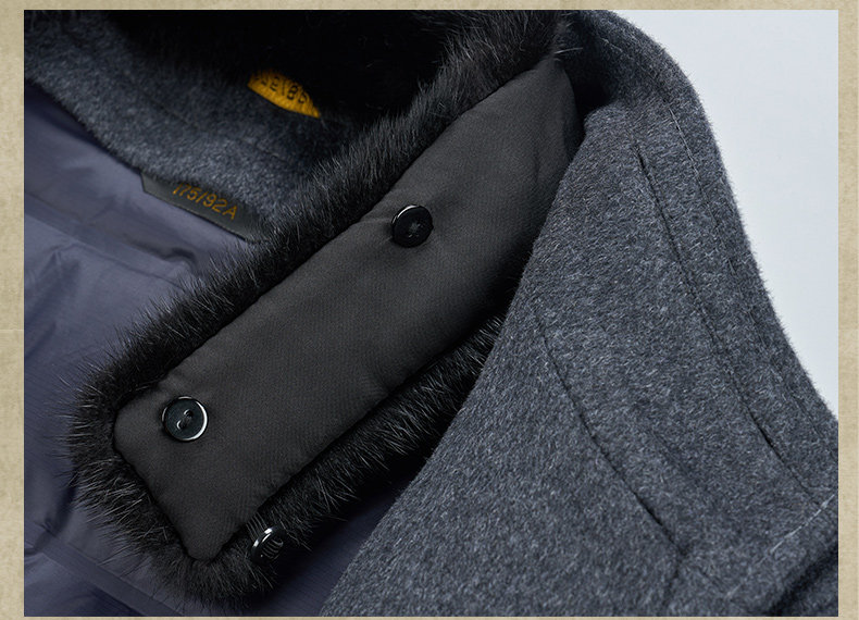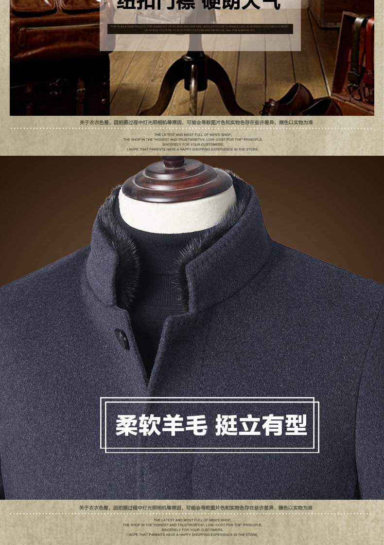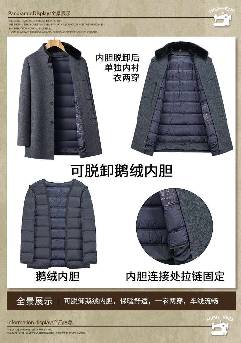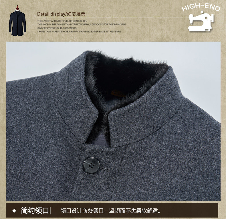 Cashmere Men's Coat with Mink Stand Collar, Thickened for Autumn and Winter, Woolen Men's Coat, Mid-Length, with Detachable Goose down Lining