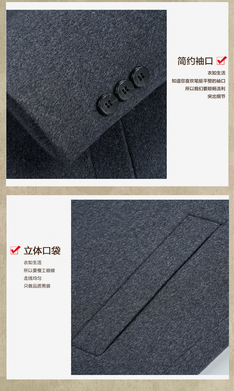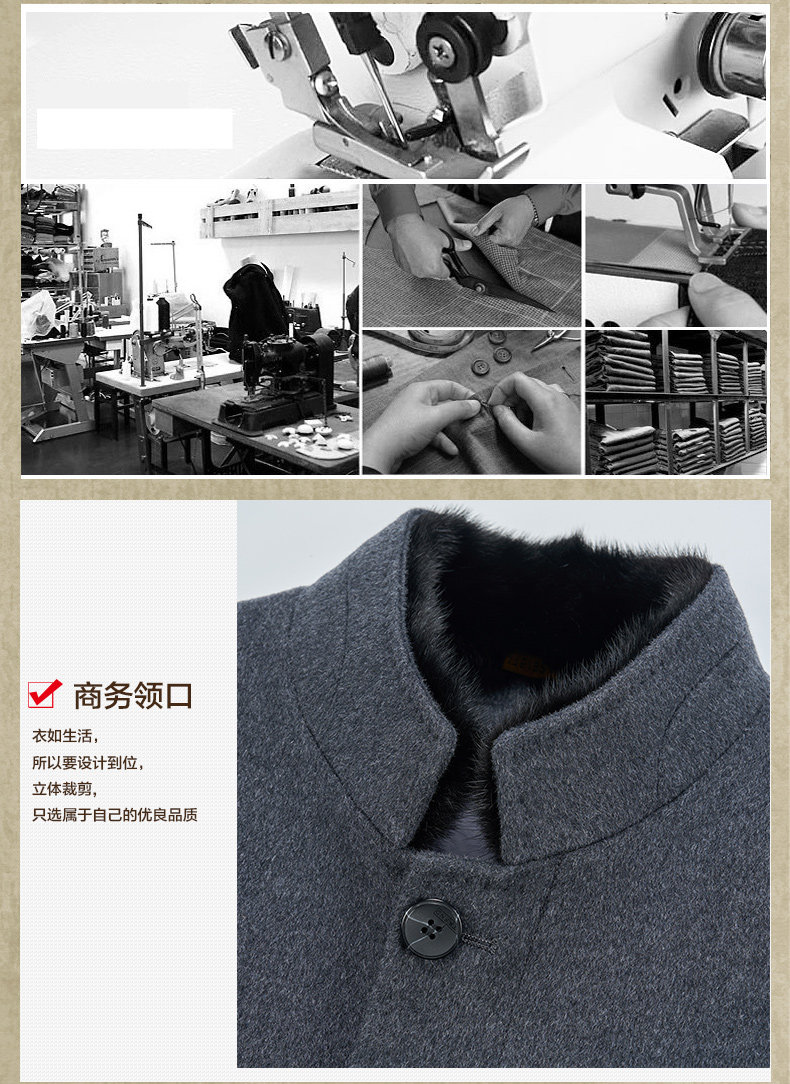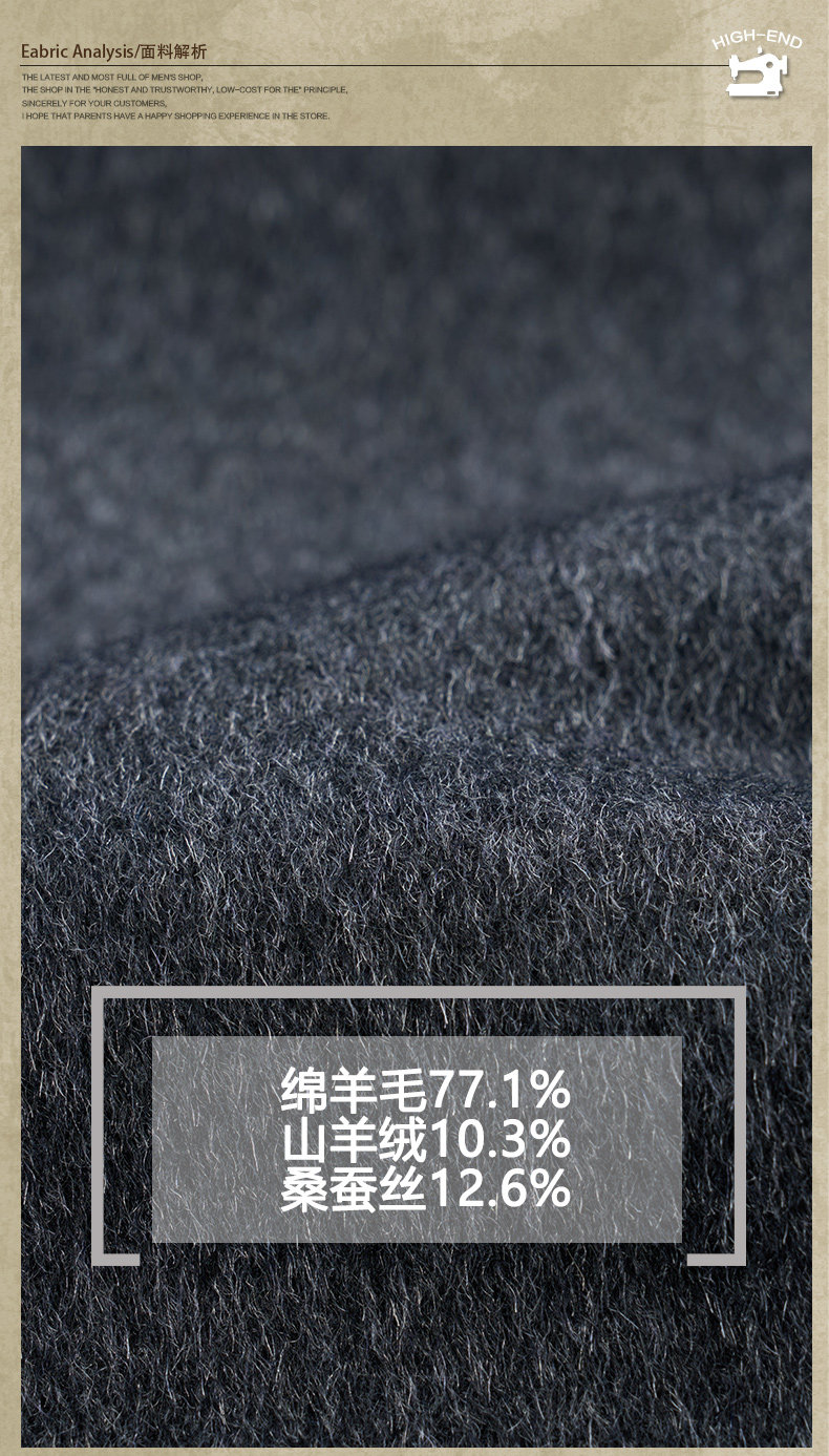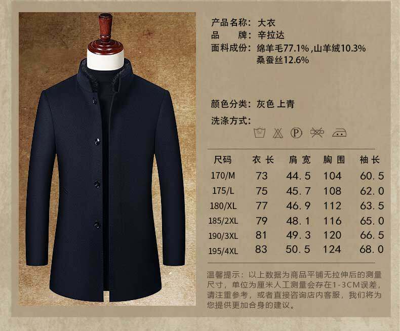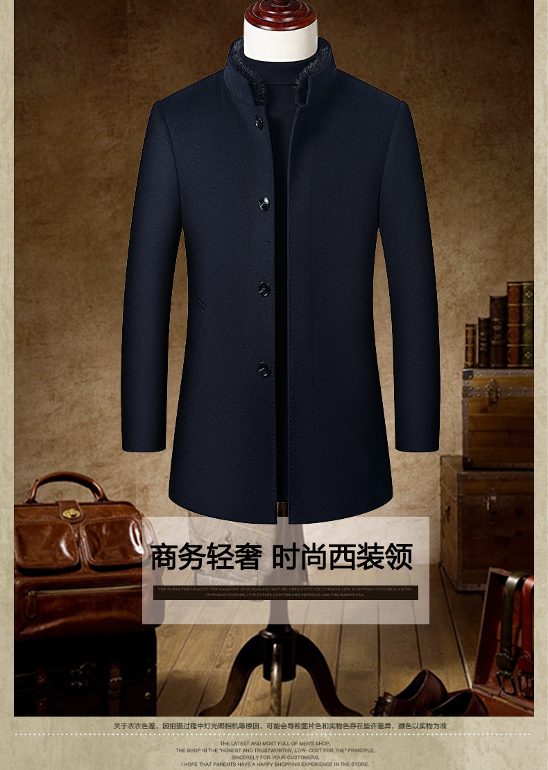 Cashmere Men's Coat with Mink Stand Collar, Thickened for Autumn and Winter, Woolen Men's Coat, Mid-Length, with Detachable Goose down Lining