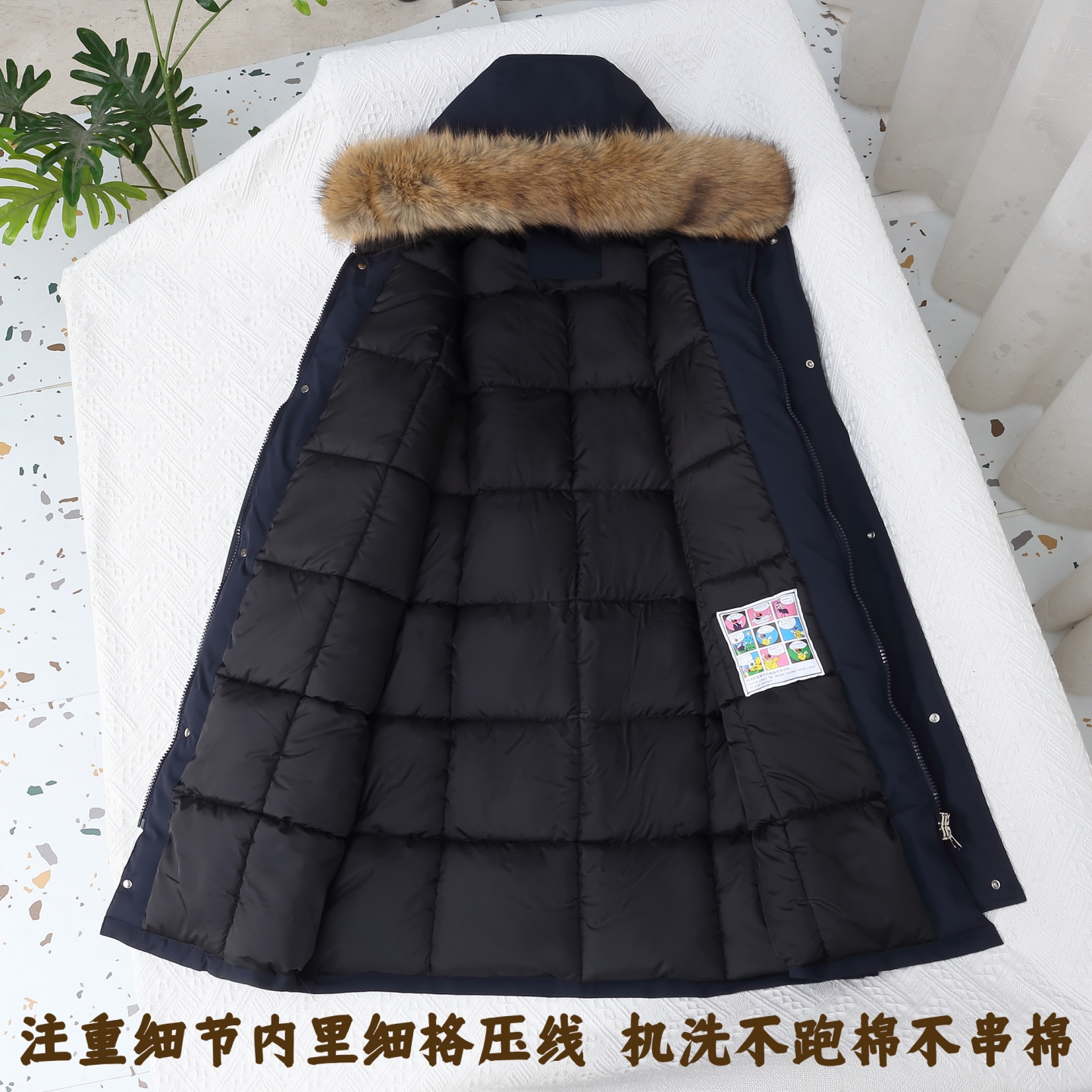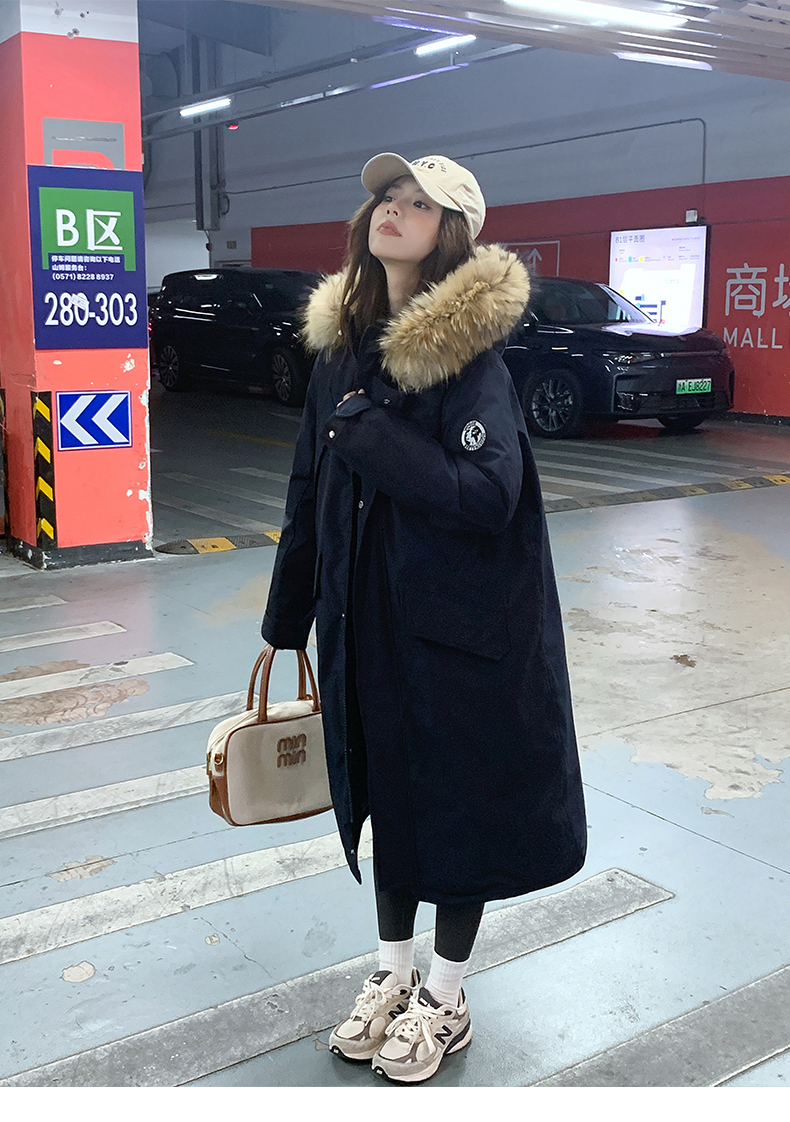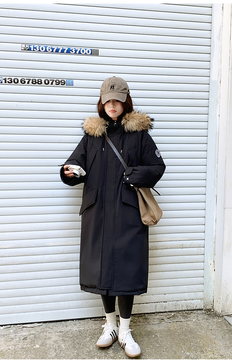2025 Winter New Korean Style Long Over-The-Knee Cotton Jacket Women's Workwear Parka Cotton Coat with Large Fur Collar Thick Outerwear