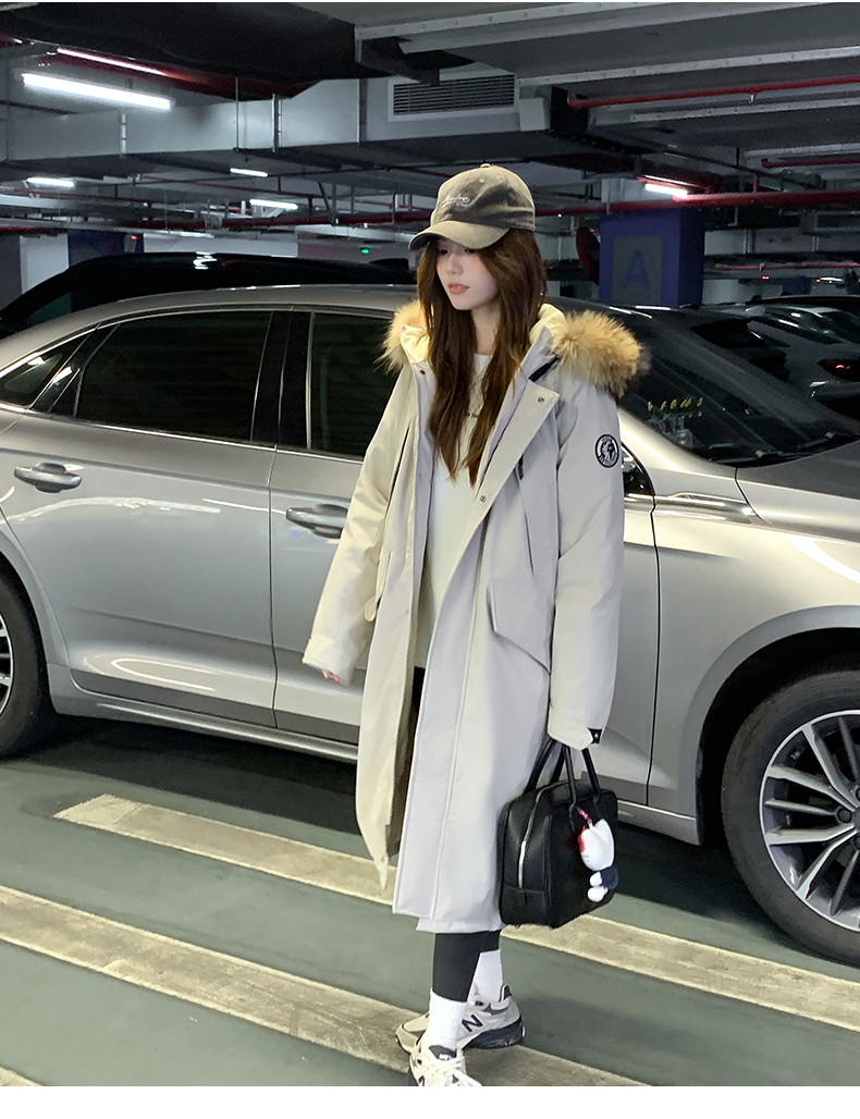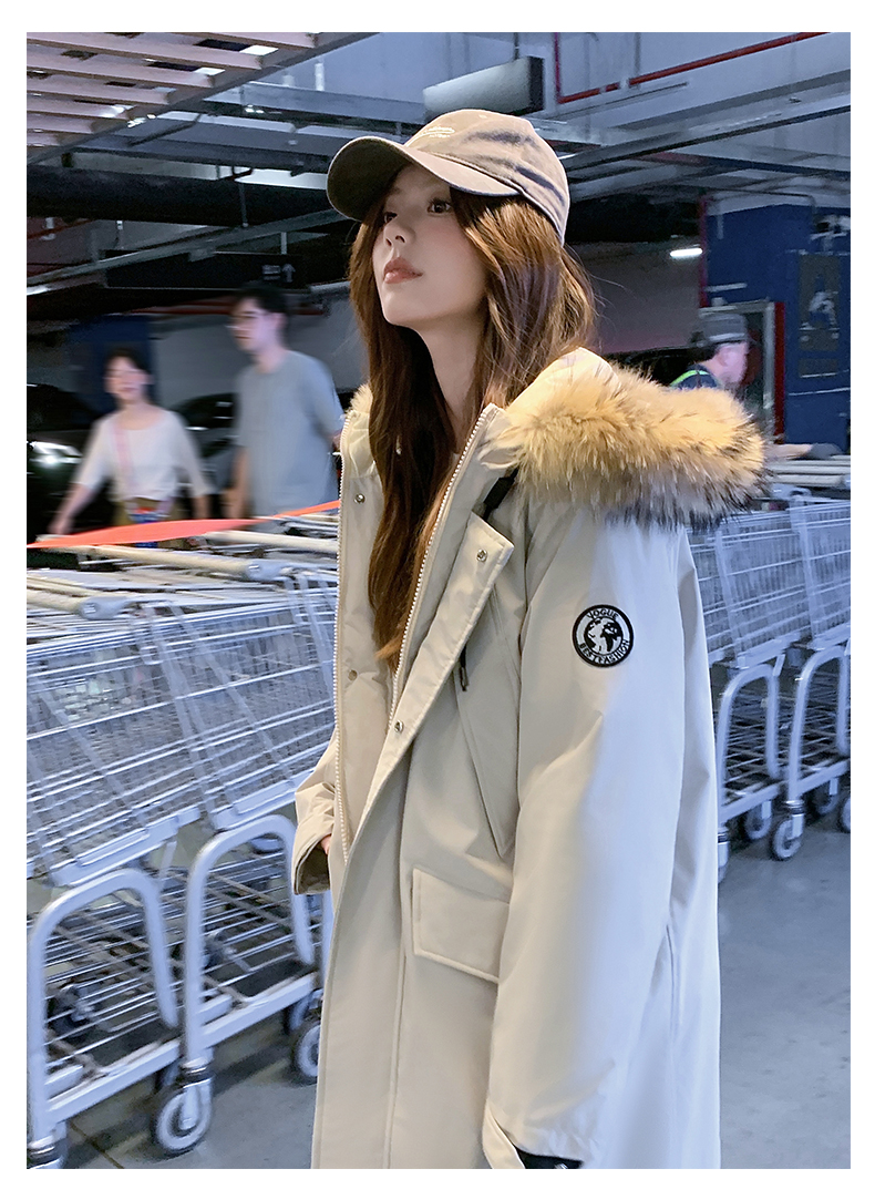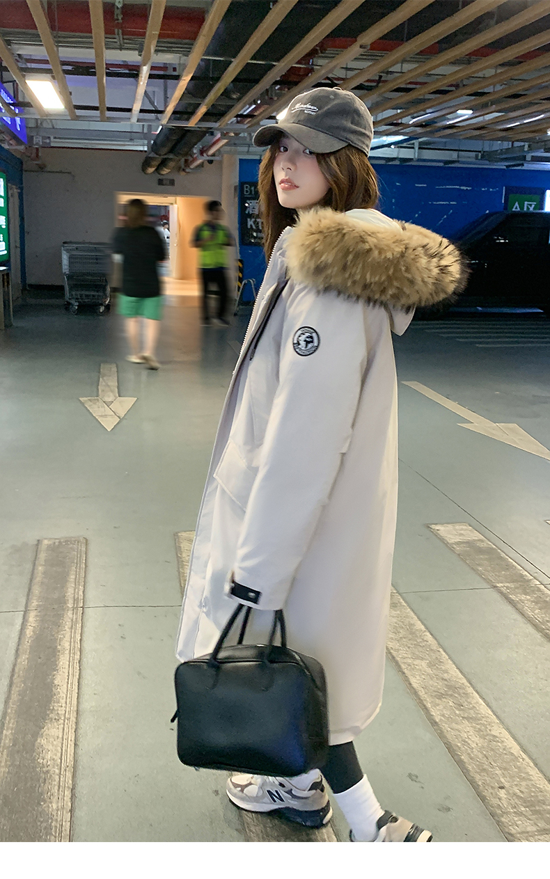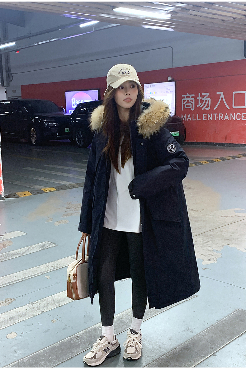 2025 Winter New Korean Style Long Over-The-Knee Cotton Jacket Women's Workwear Parka Cotton Coat with Large Fur Collar Thick Outerwear