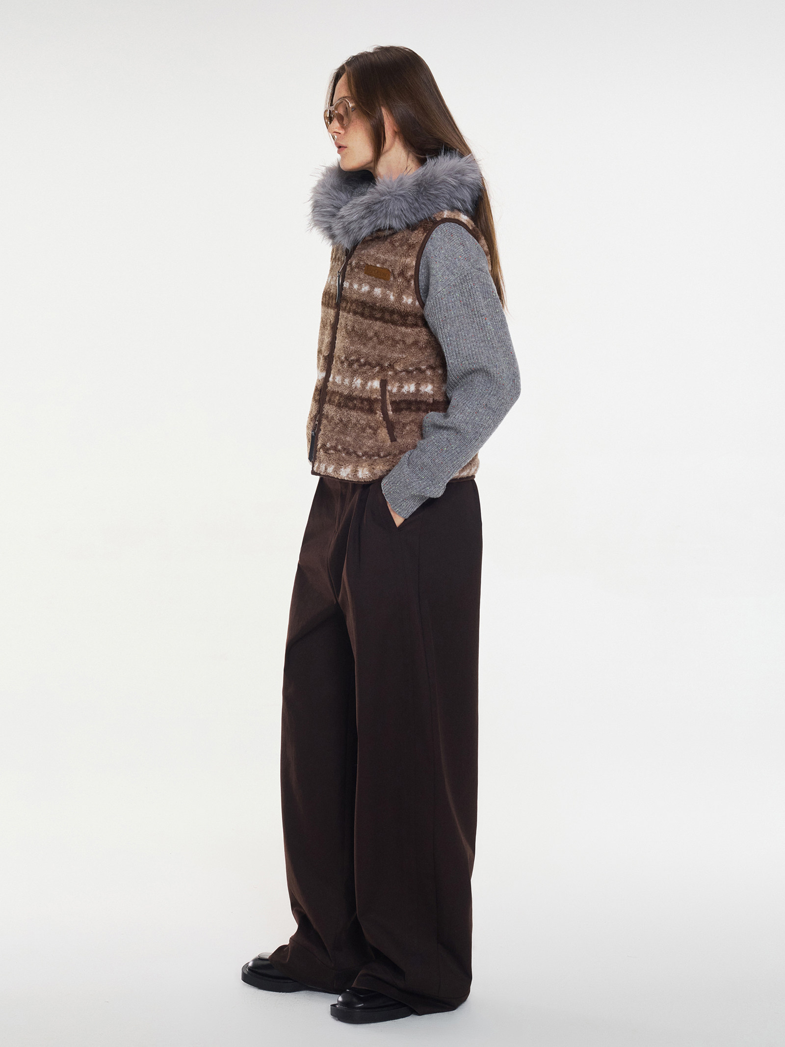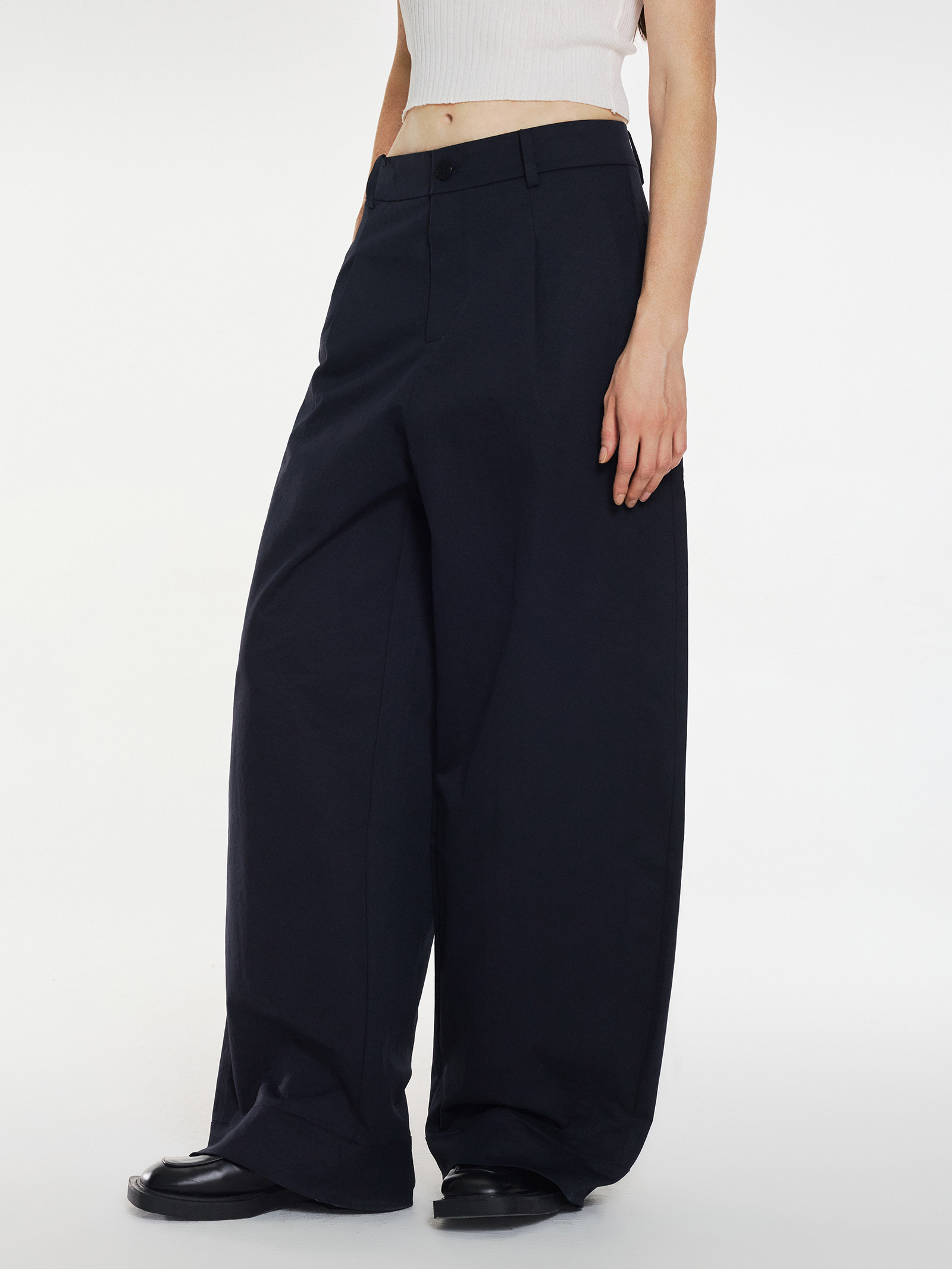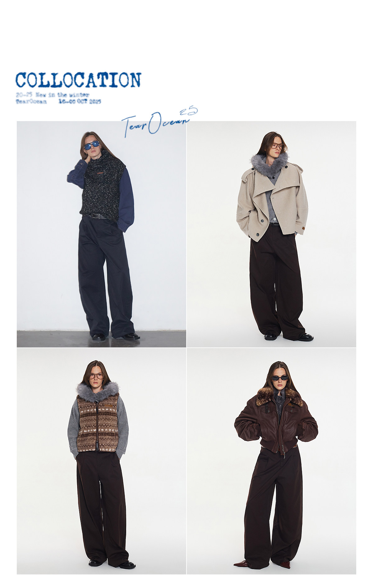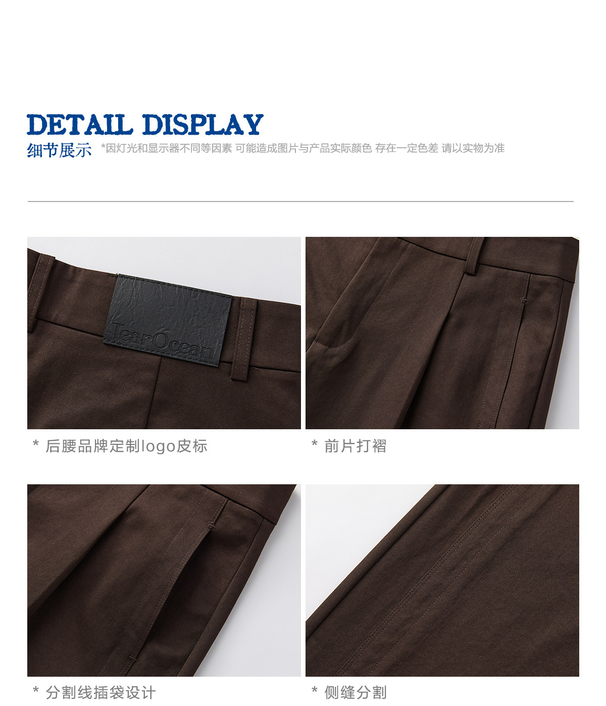 Tearocean* High-Quality Two-Tone Mid-Waist Pleated Wide-Leg Dress Pants for Women, Loose and Slimming, Long Pants for Autumn
