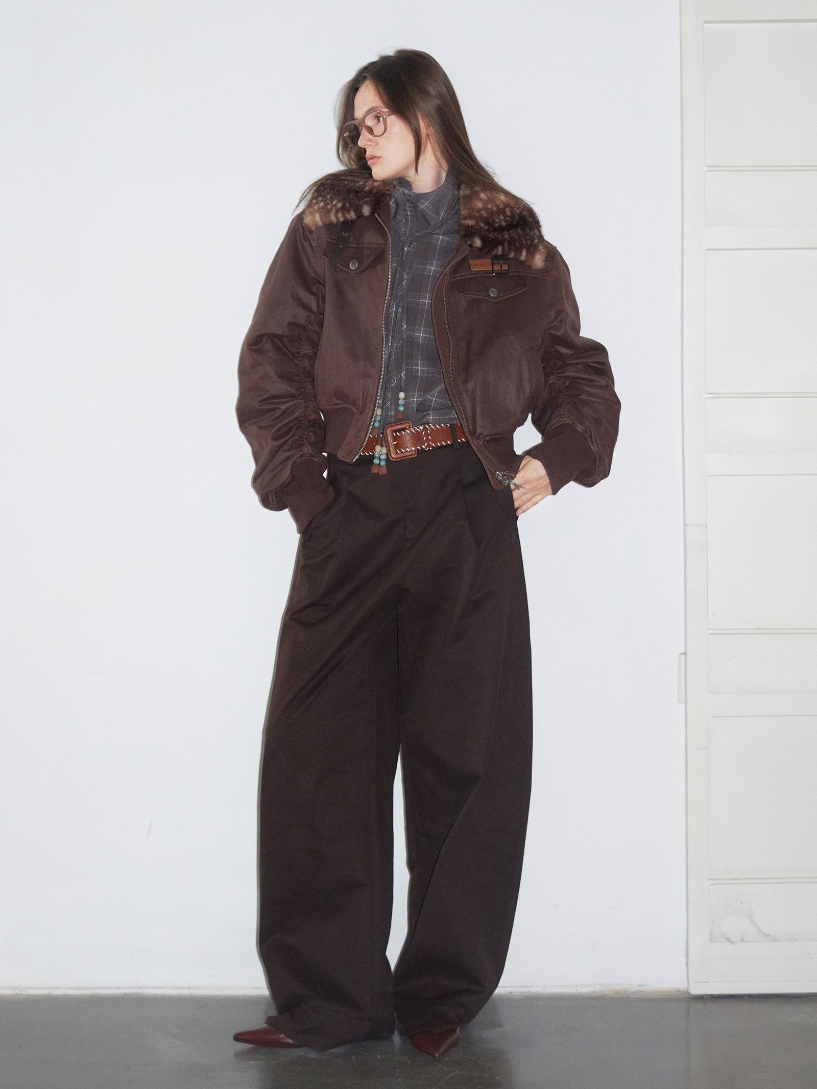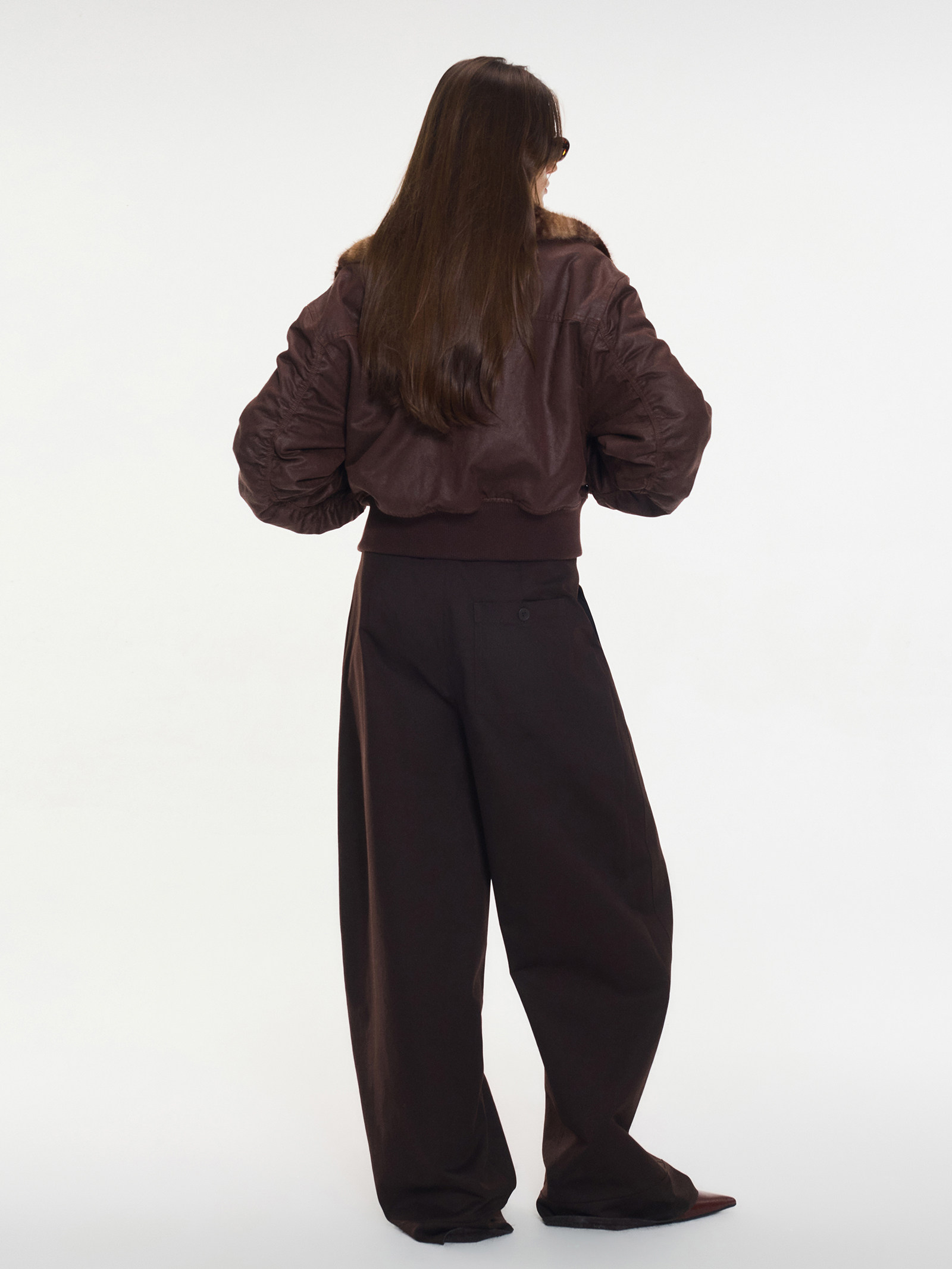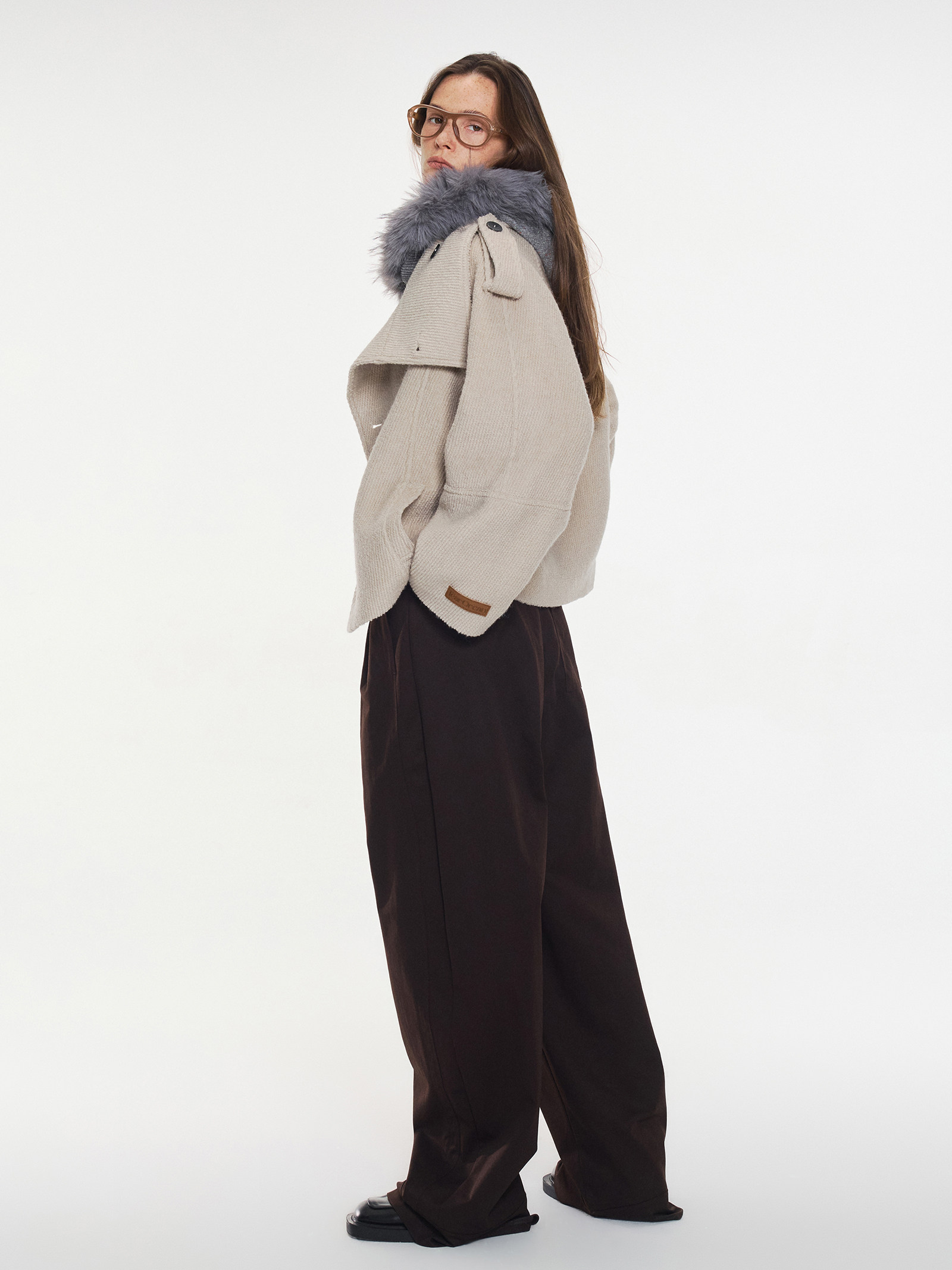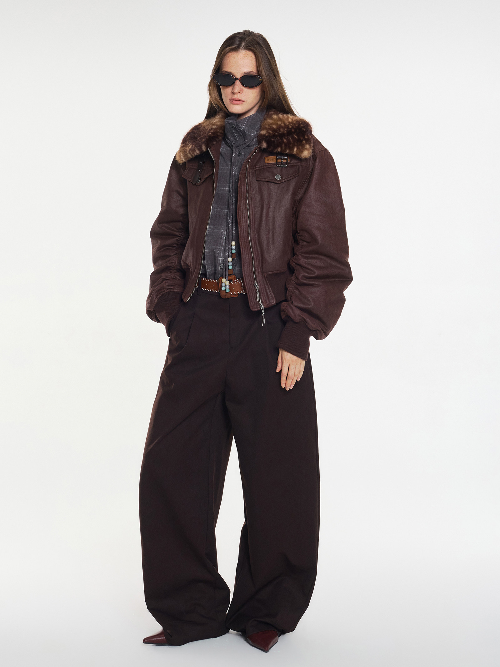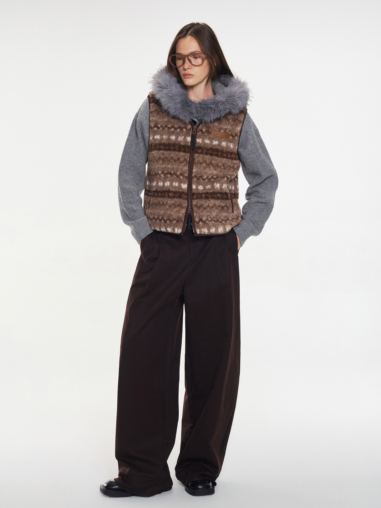 Tearocean* High-Quality Two-Tone Mid-Waist Pleated Wide-Leg Dress Pants for Women, Loose and Slimming, Long Pants for Autumn