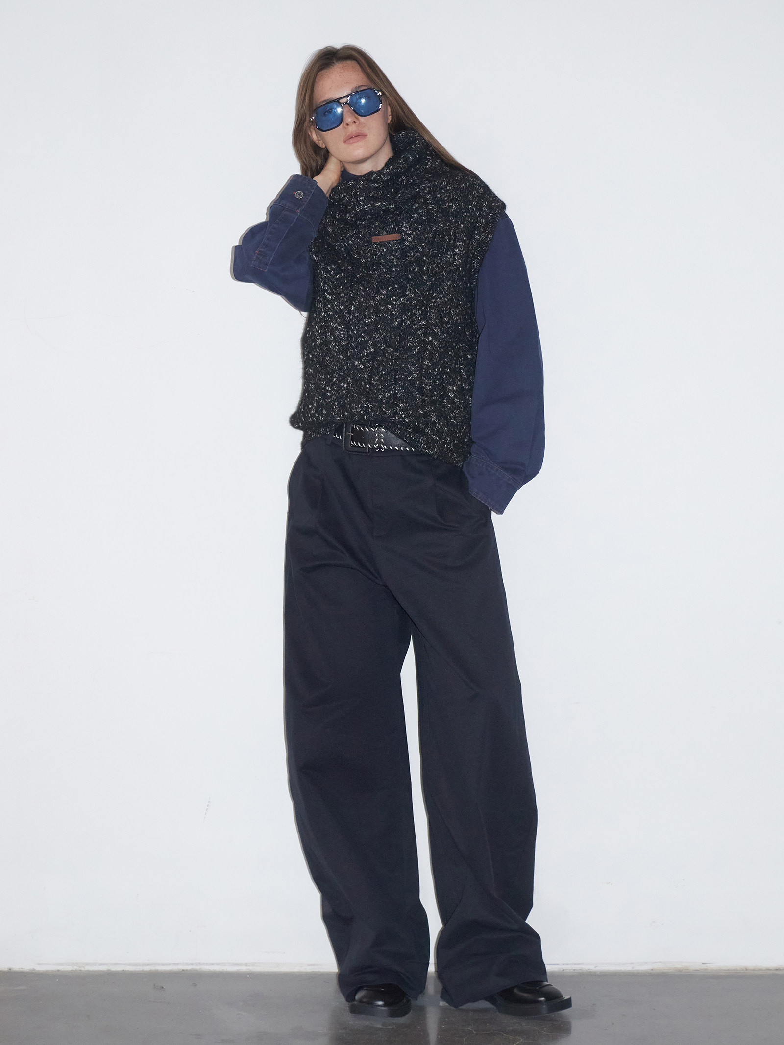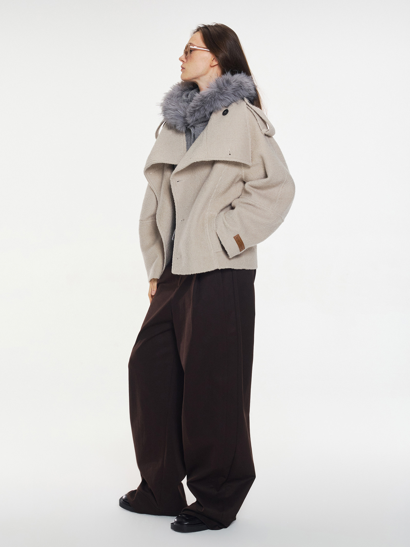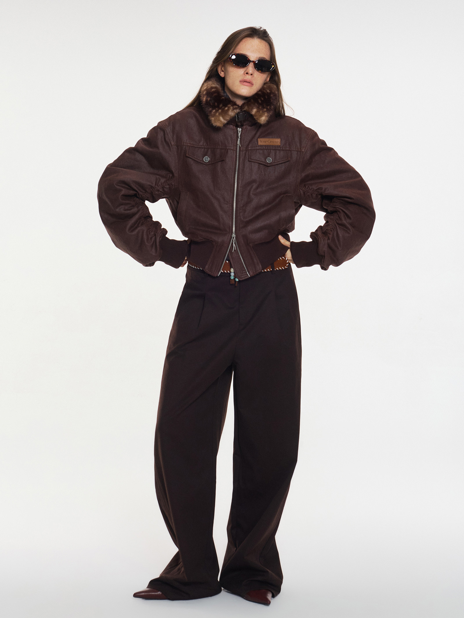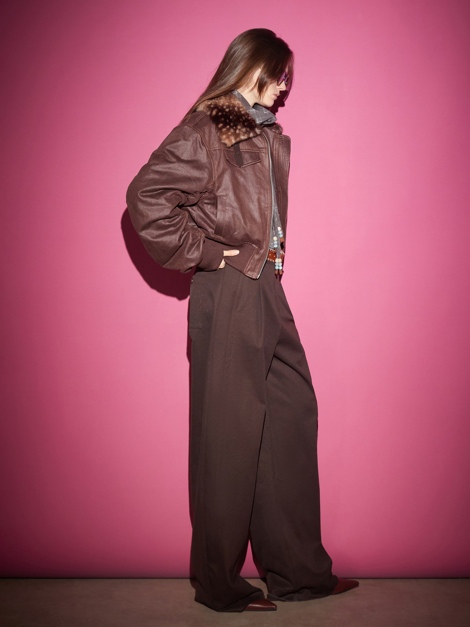 Tearocean* High-Quality Two-Tone Mid-Waist Pleated Wide-Leg Dress Pants for Women, Loose and Slimming, Long Pants for Autumn