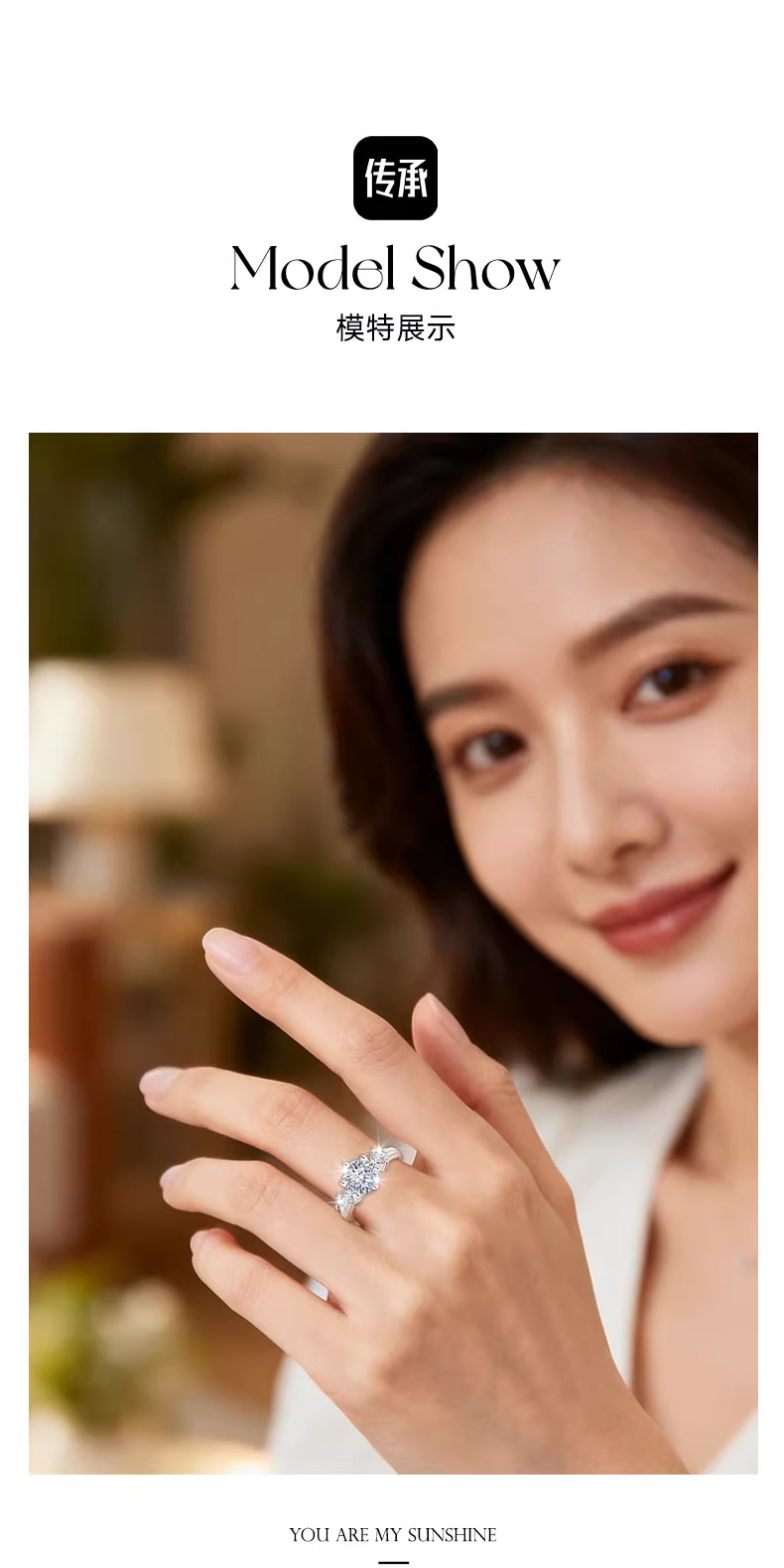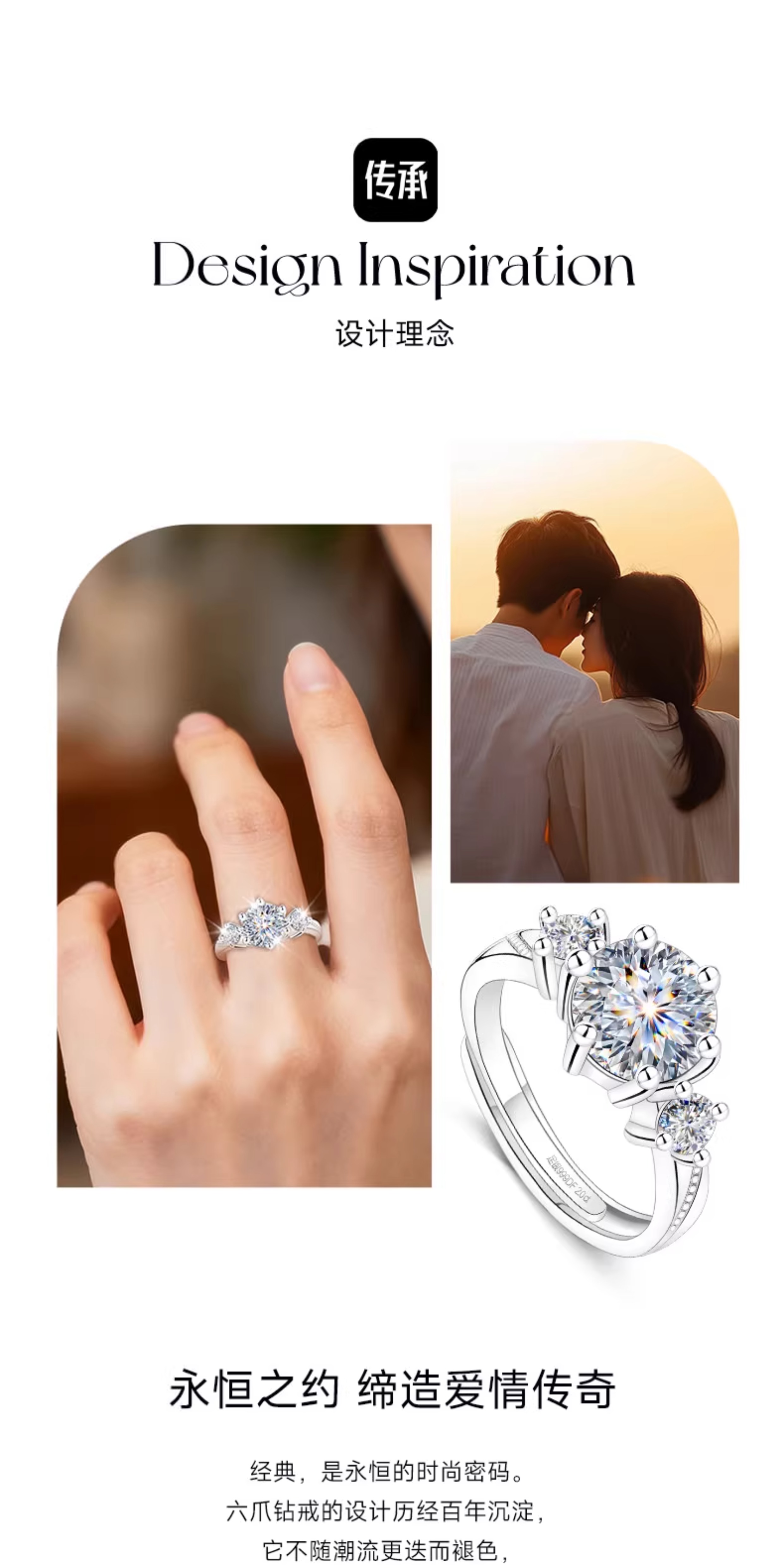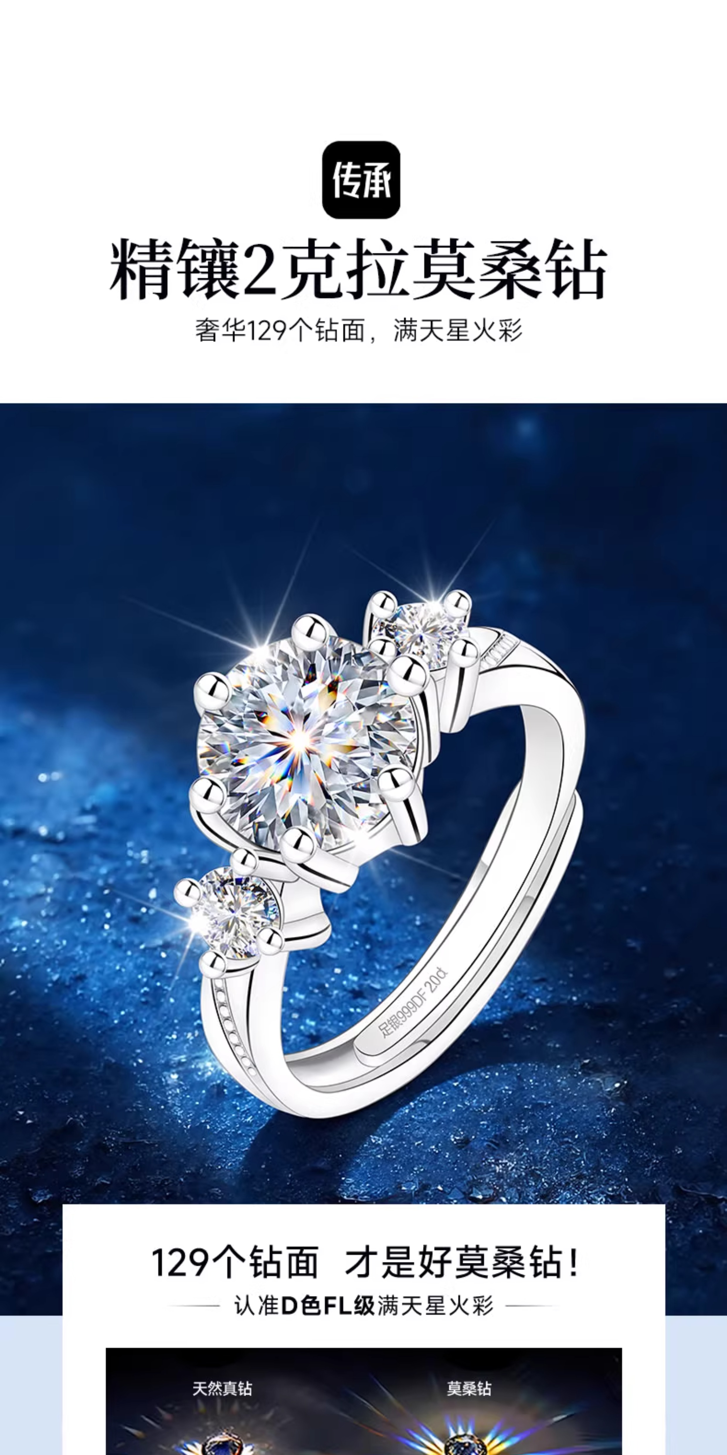Silver Ring 999 Pure Silver Couple Rings for Women 2 Carat Moissanite Diamond Moissanite Ring Gift for Girlfriend