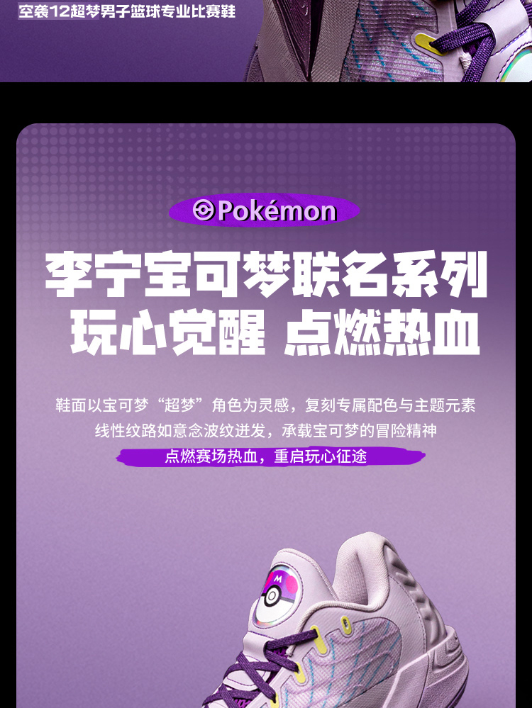 Li-Ning Pokémon Collaboration Series Air Raid 12 Ultra Dream | Basketball Shoes Men's Lightweight Professional Practical Sports Shoes