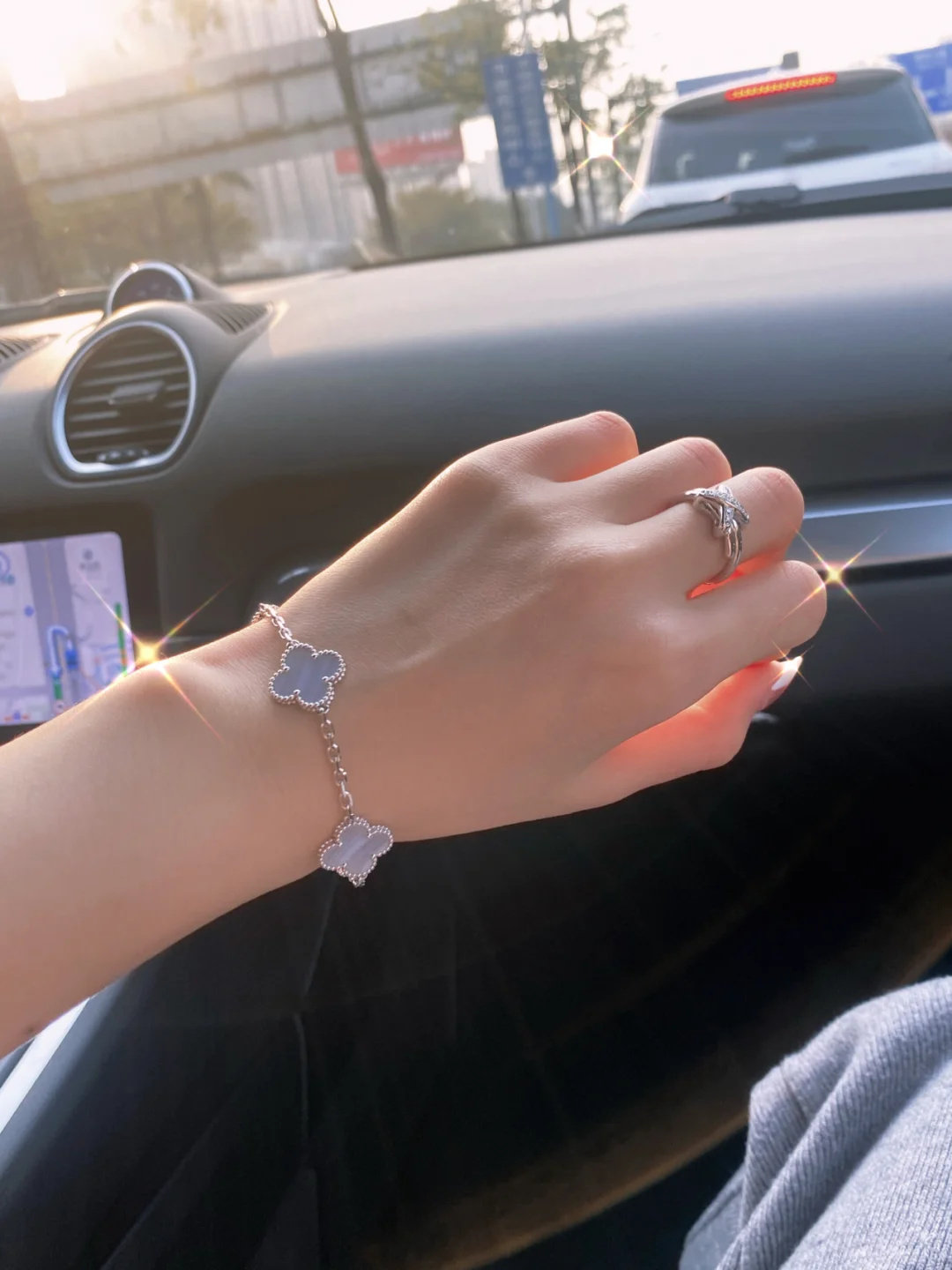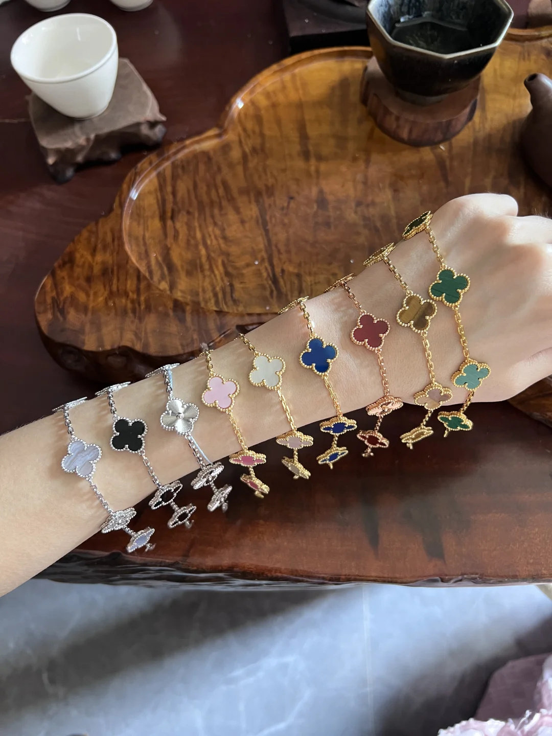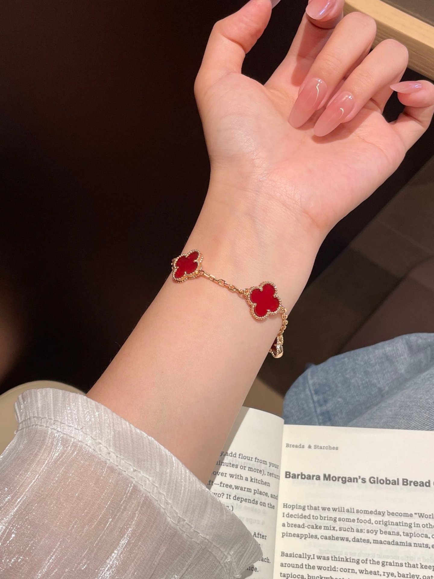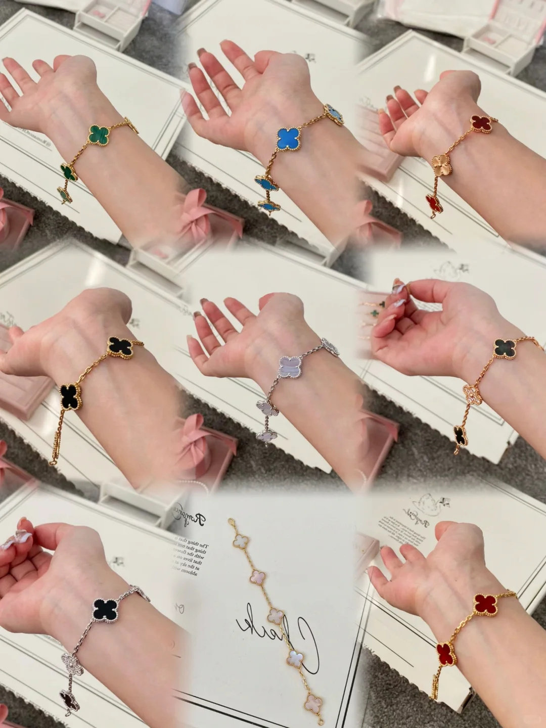 High-End Four-Leaf Clover Five-Flower Bracelet for Women, Red Chalcedony, White Mother-Of-Pearl, Laser-Encrusted Full Diamond Men's Stackable Bracelet, Light Luxury