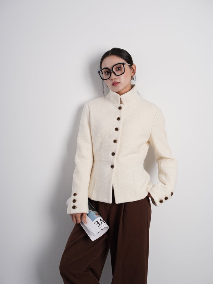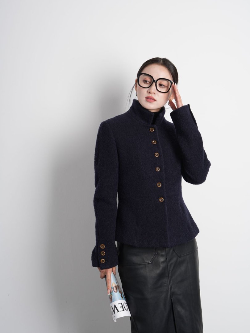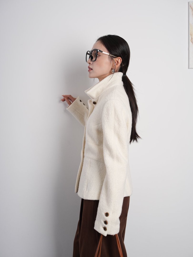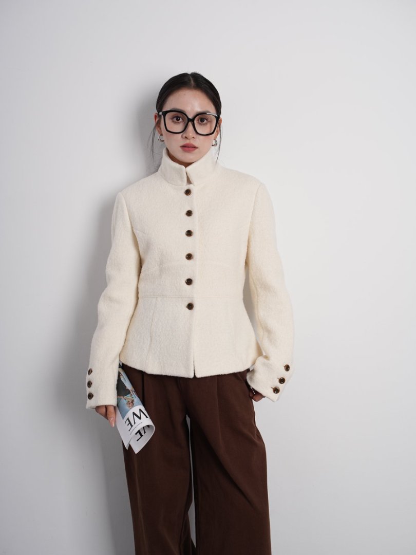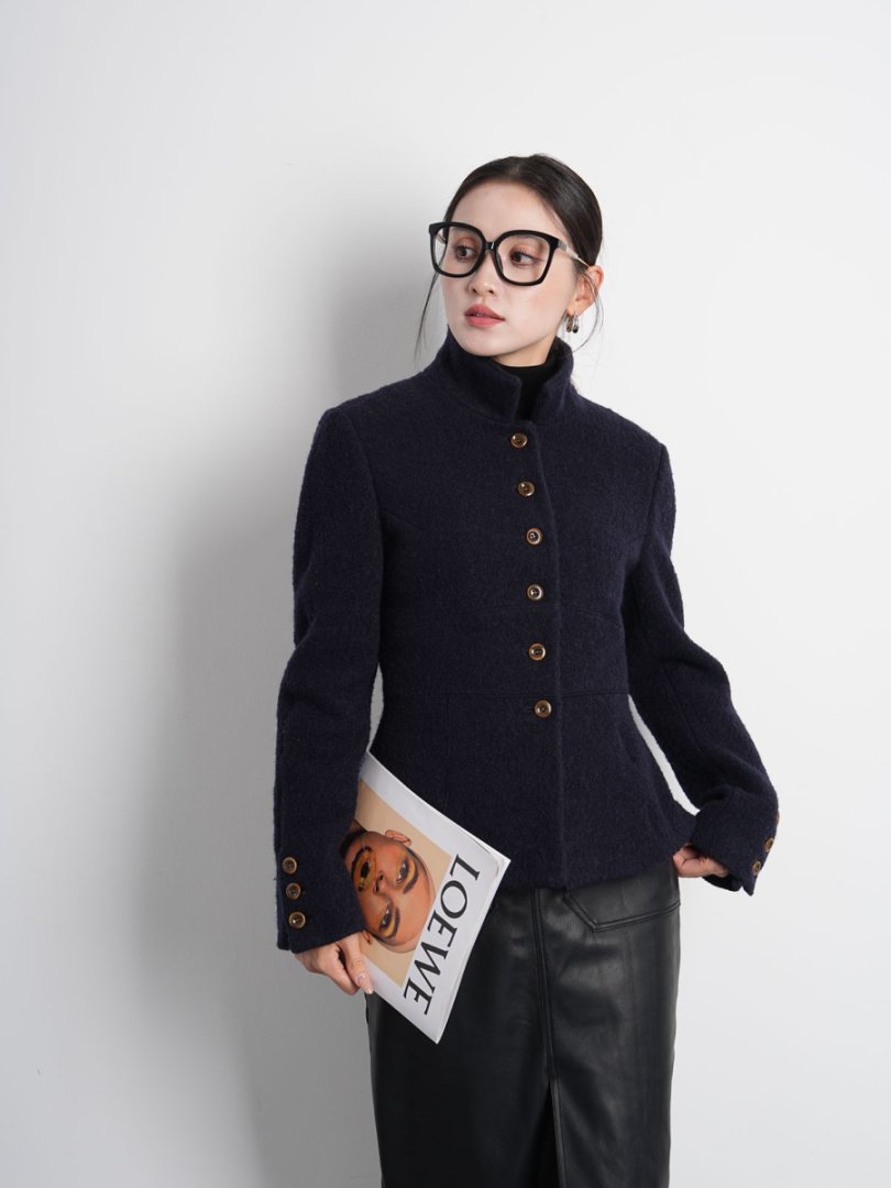 Australian Merino 100% Sheep Wool Looped Woolen Waist-Cinching Structured Short Coat Autumn and Winter Slimming Top