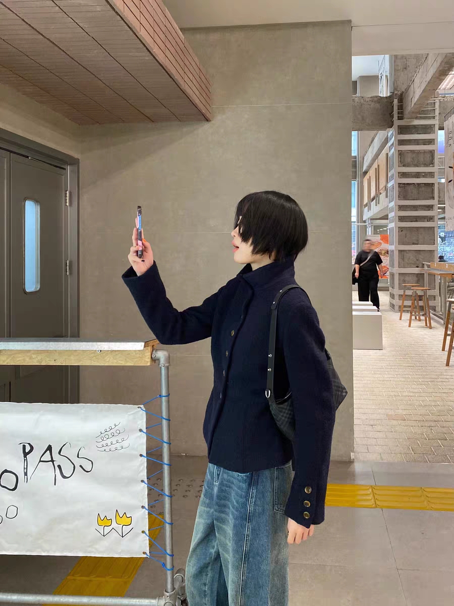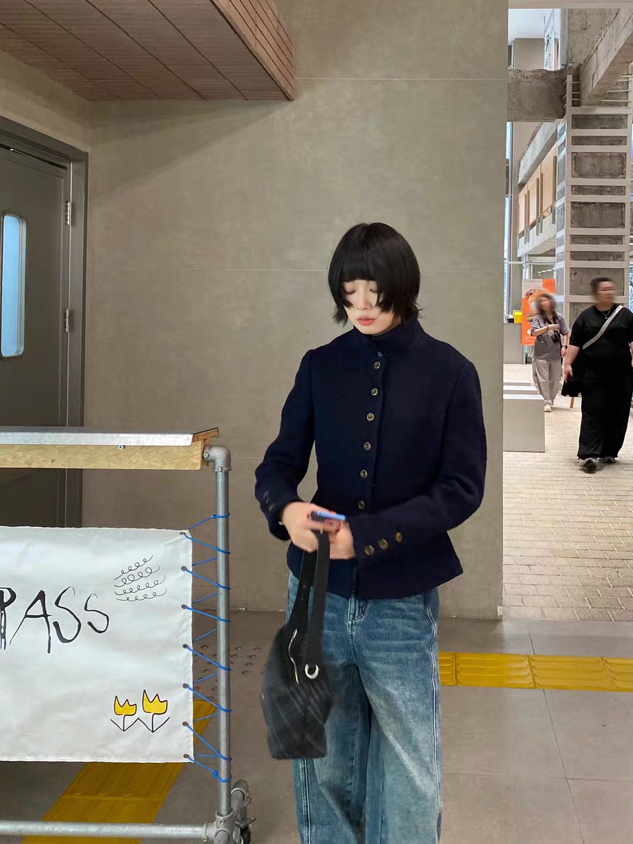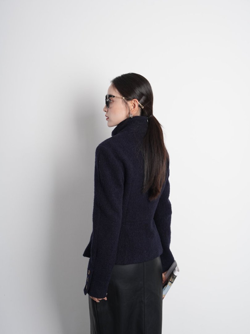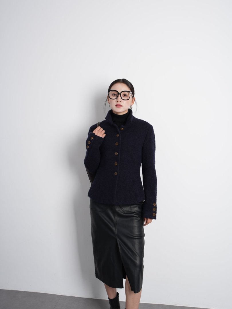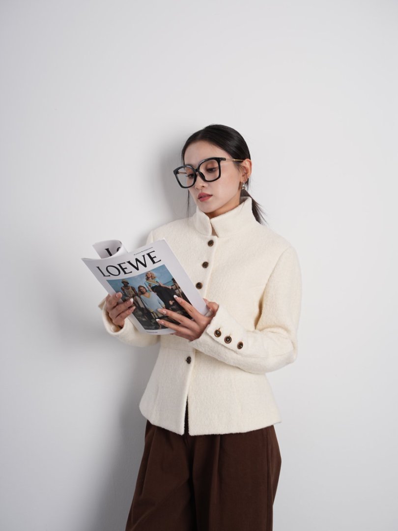 Australian Merino 100% Sheep Wool Looped Woolen Waist-Cinching Structured Short Coat Autumn and Winter Slimming Top