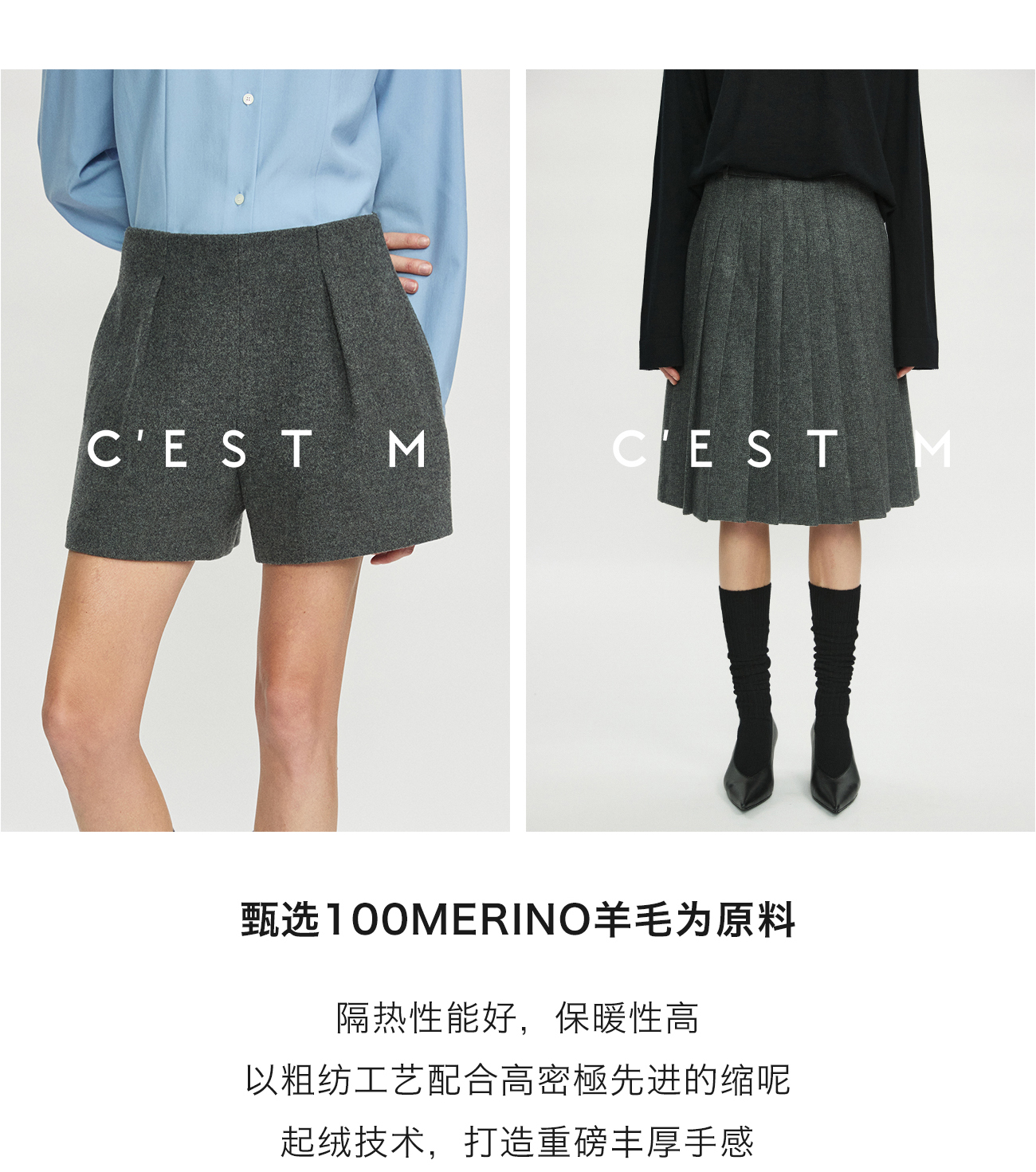 CEST M, M1U wind show intellectual wind exquisite Elegance wool pleated skirt & Bud shorts