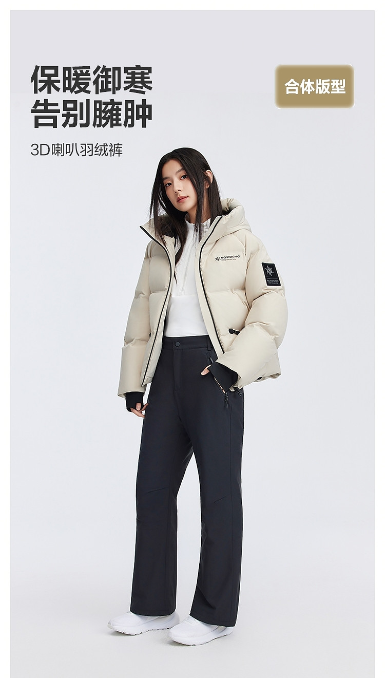 Bosideng Slim-Fit 25 New Style down Pants for Women, Winter Windproof, Warm, Not Bulky, Black Outdoor Ski Pants