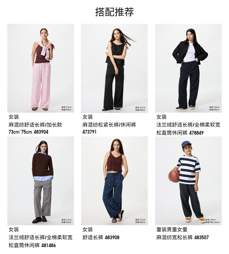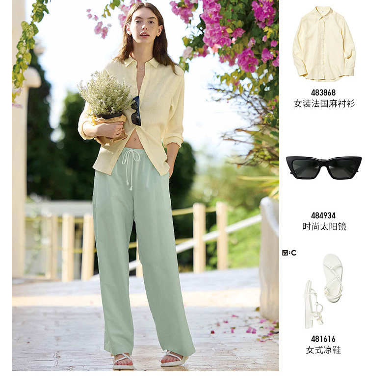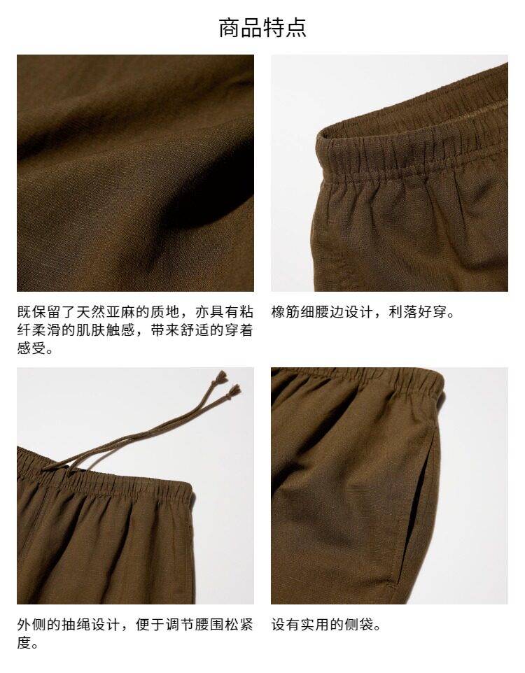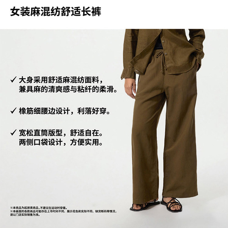 Regular Style Uniqlo Women's Linen Blend Comfortable Trousers/Casual Pants 26 Spring/Summer New Model 482246