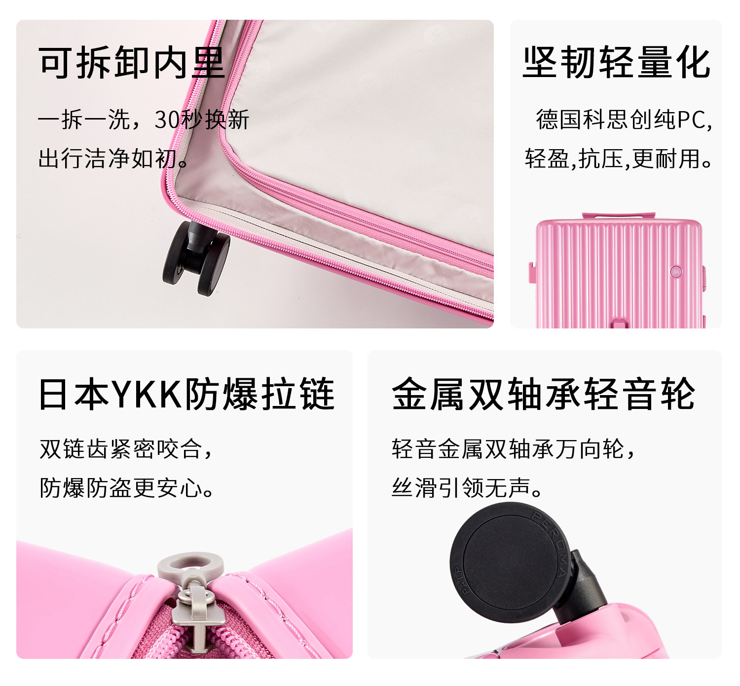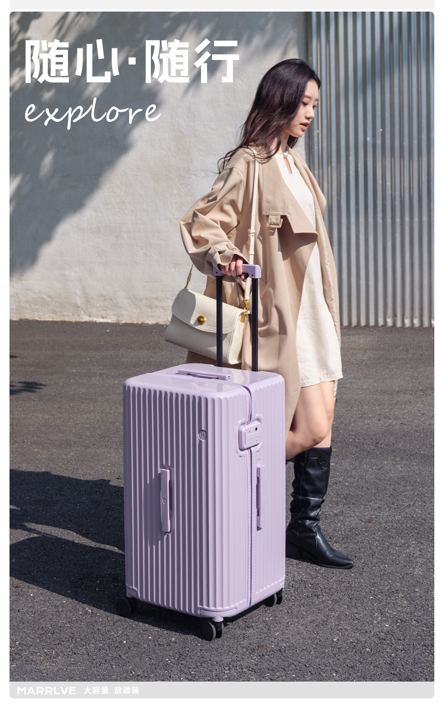 Marrlve【Malve】Zipper Detachable Inner Lining Pure Pc International Student Boarding Trolley Suitcase Travel Luggage