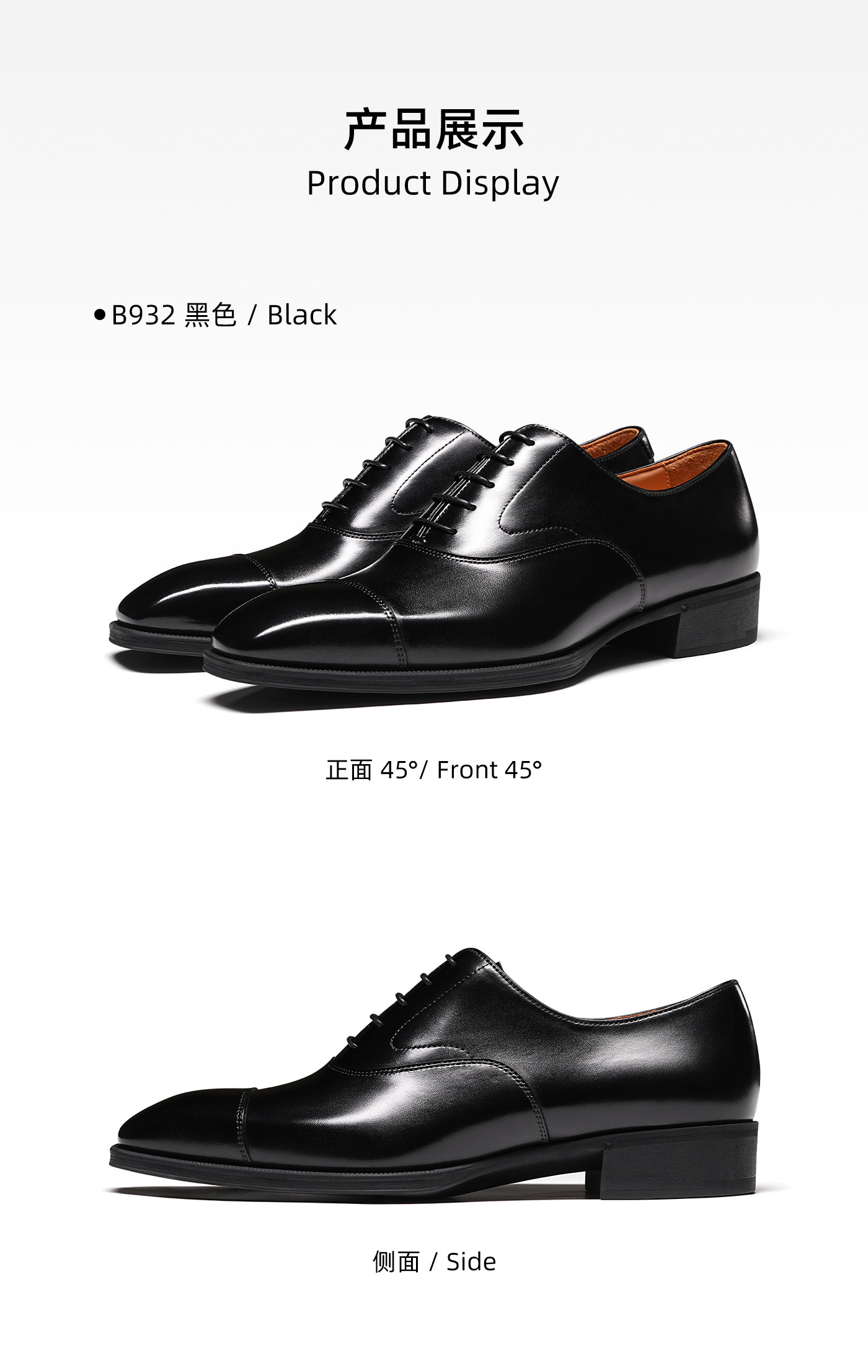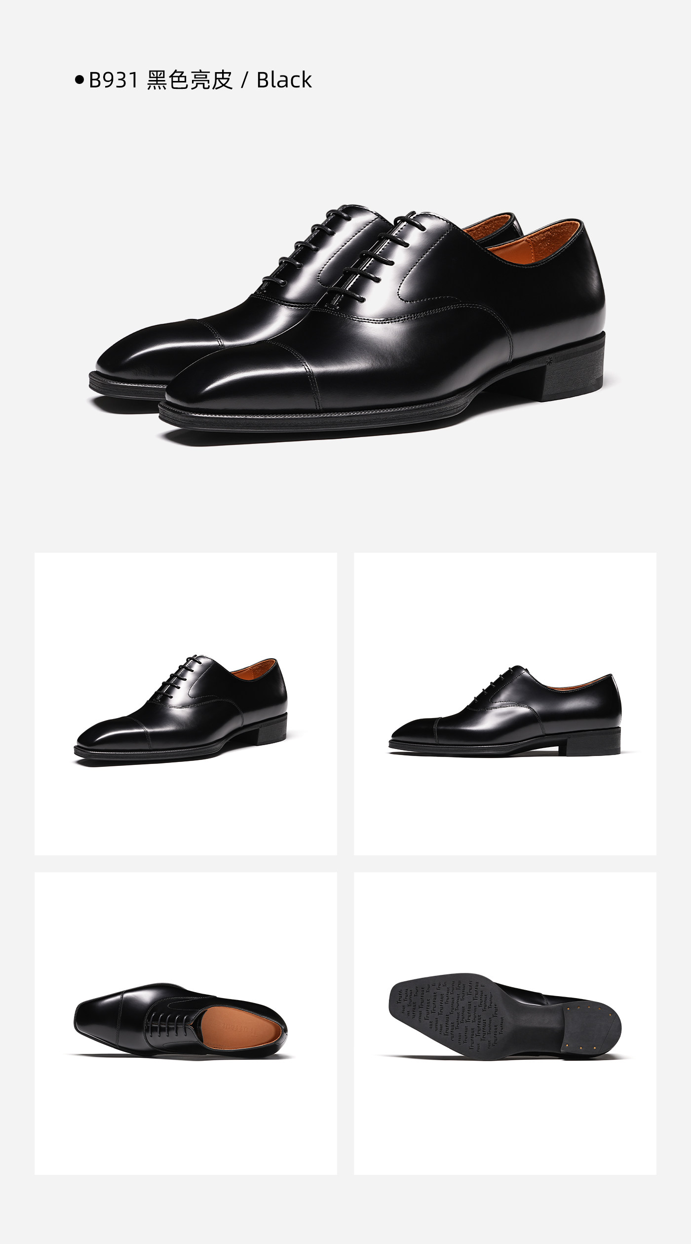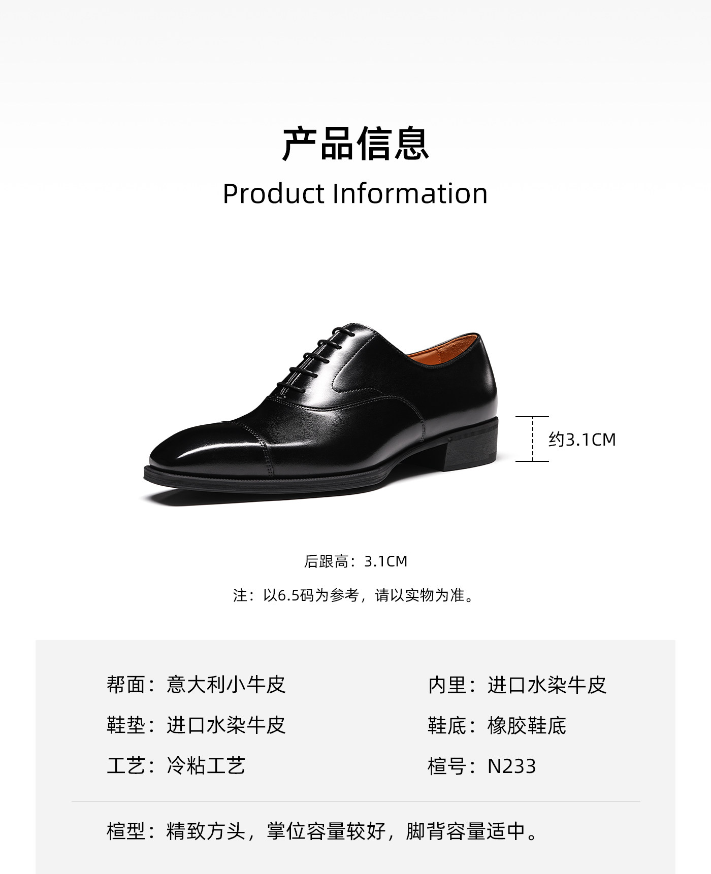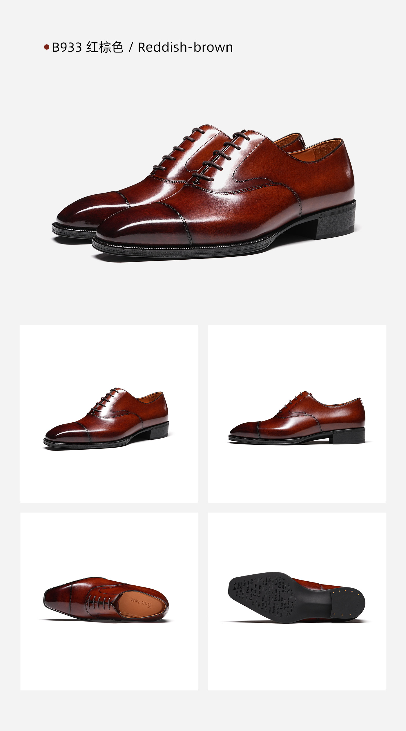 Truffaut Men's Leather Shoes for Weddings, Business Formal Wear, Three-Strap Oxford Shoes, Genuine Leather British Groom Wedding Shoes