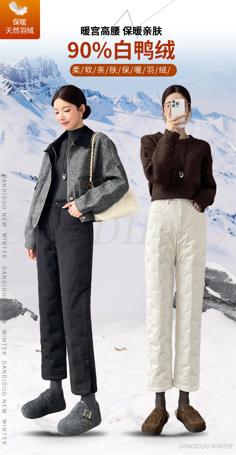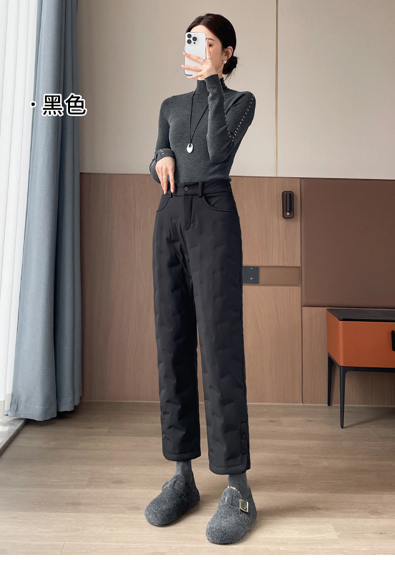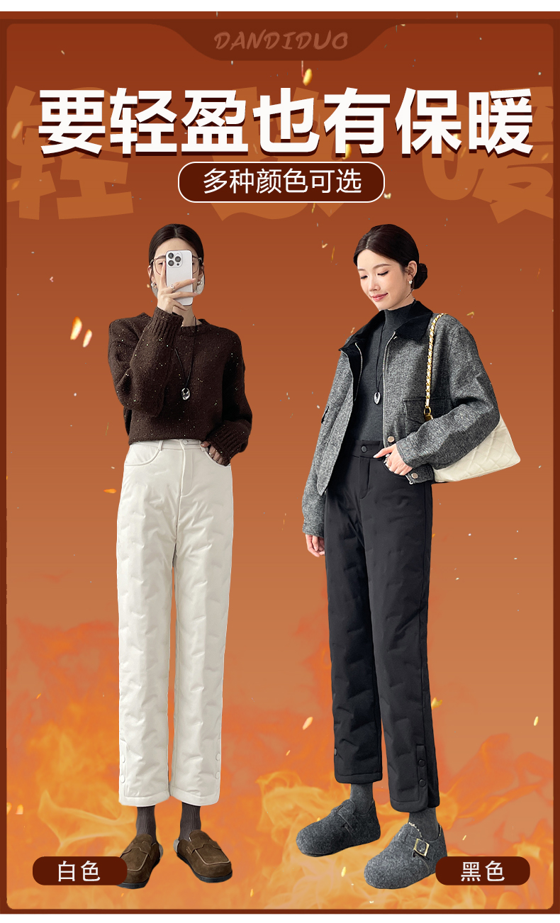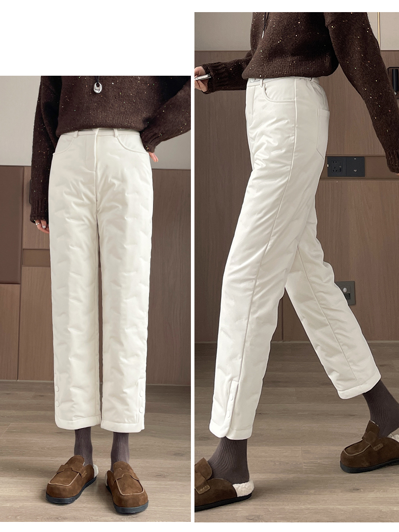 Lightweight White Duck down Straight-Leg down Pants for Women, Winter Outdoor Wear, Cold-Proof and Warm, Petite Size, Harbin Cigarette-Pipe Cotton Pants
