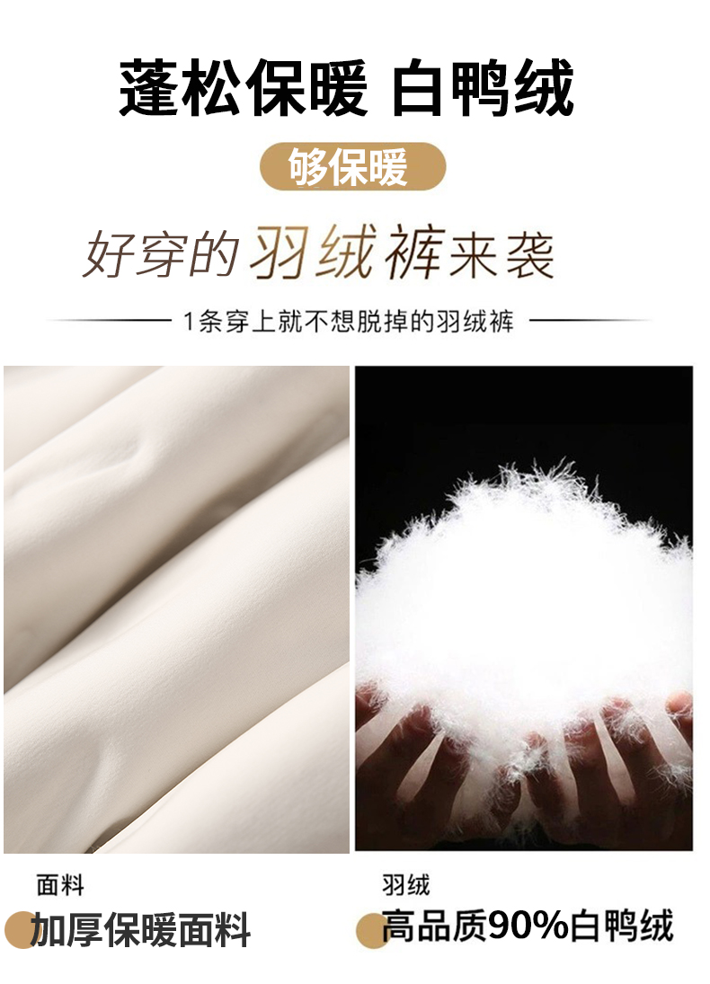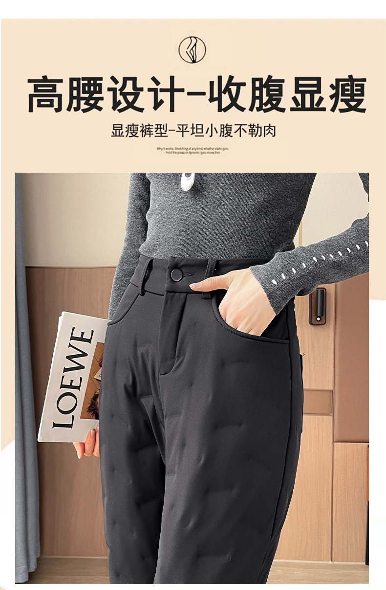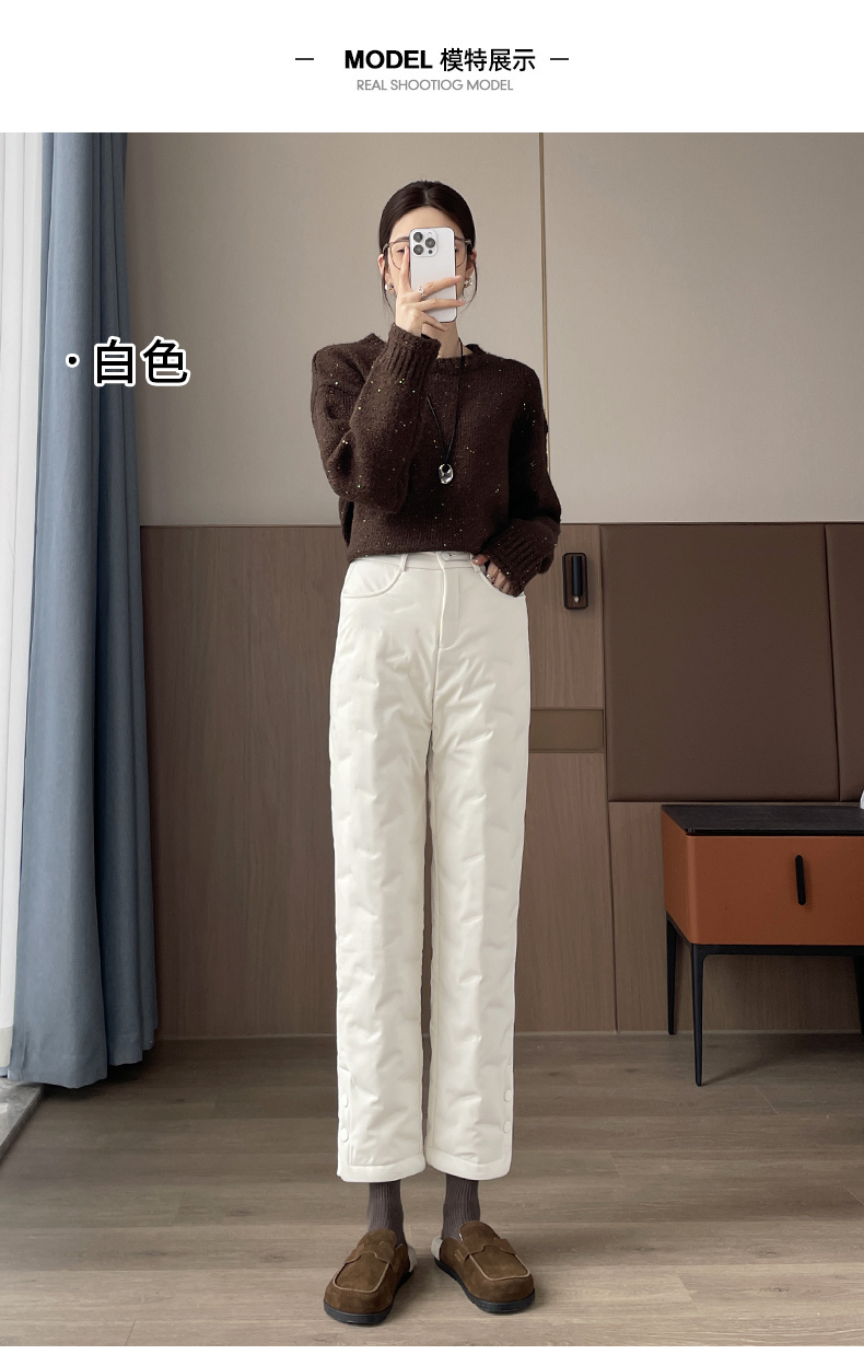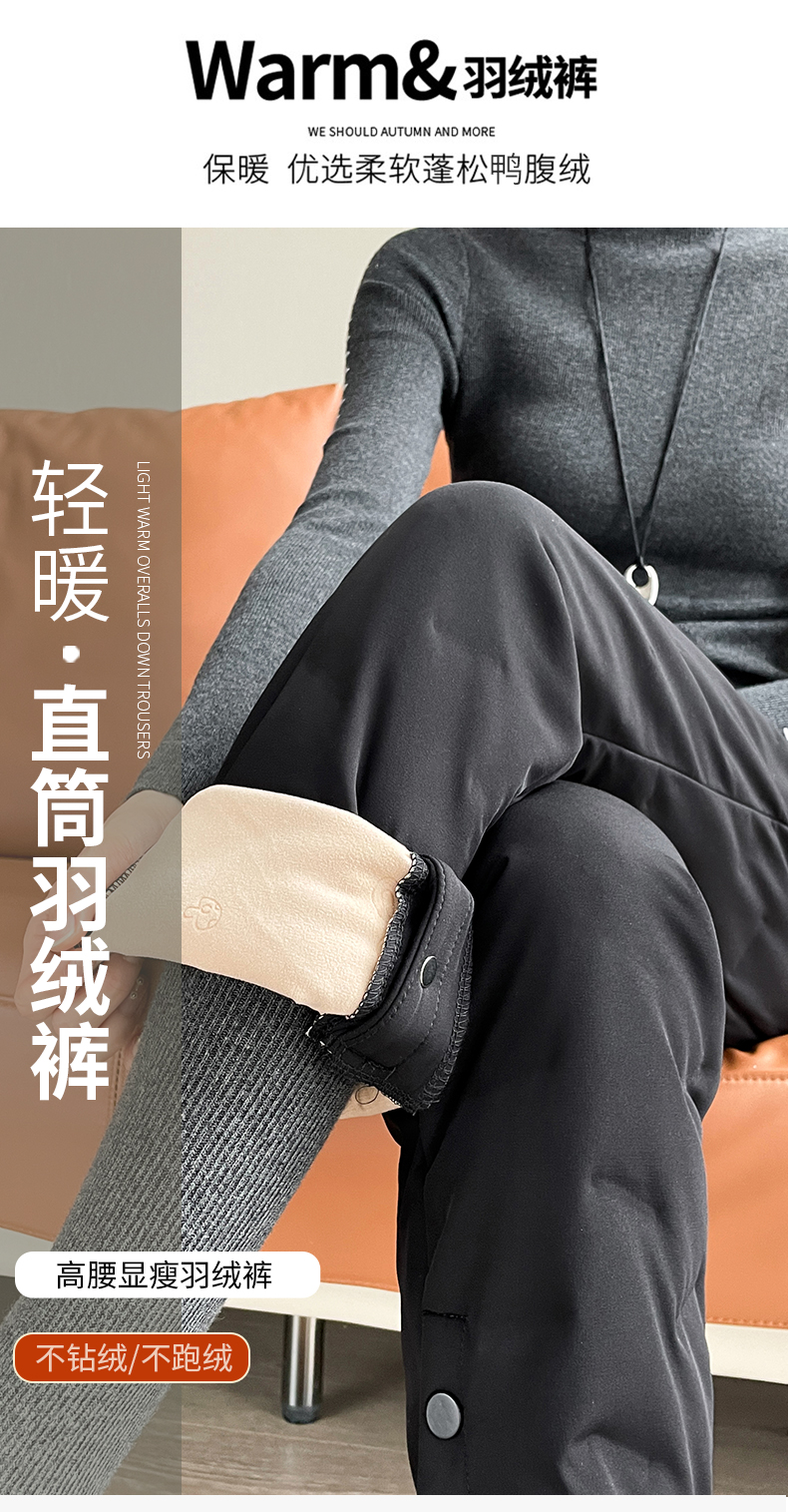 Lightweight White Duck down Straight-Leg down Pants for Women, Winter Outdoor Wear, Cold-Proof and Warm, Petite Size, Harbin Cigarette-Pipe Cotton Pants