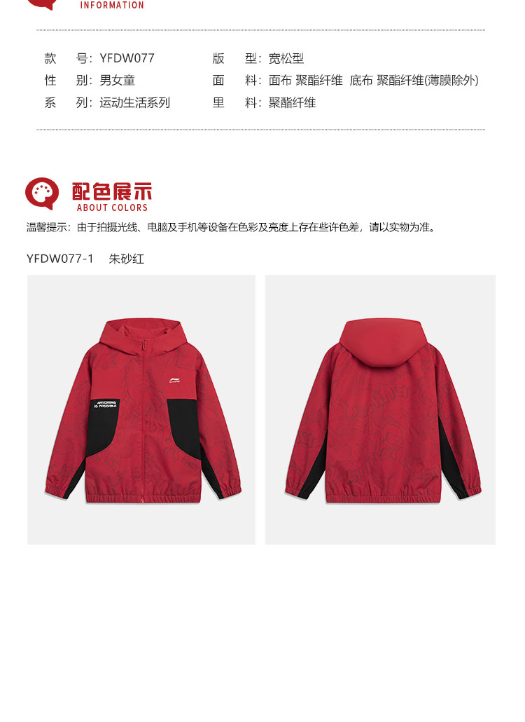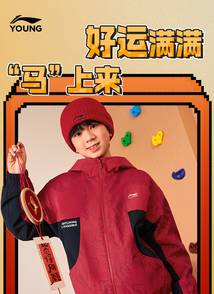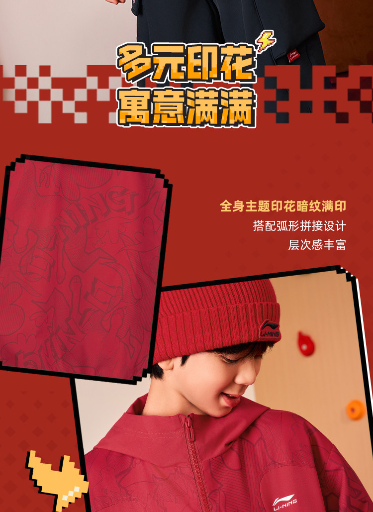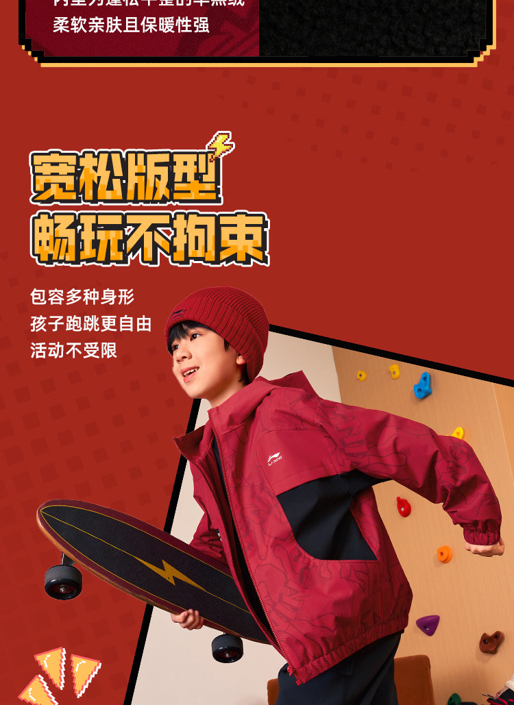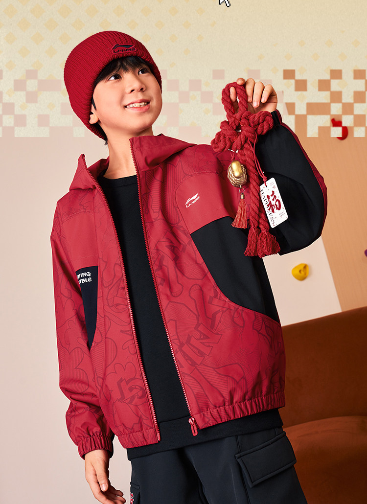 Li-Ning Children's Windbreaker for Boys and Girls, Small and Big Kids, Sports and Lifestyle Series, Loose Fit, Autumn and Winter Casual, Fleece-Lined Woven Children's Clothing