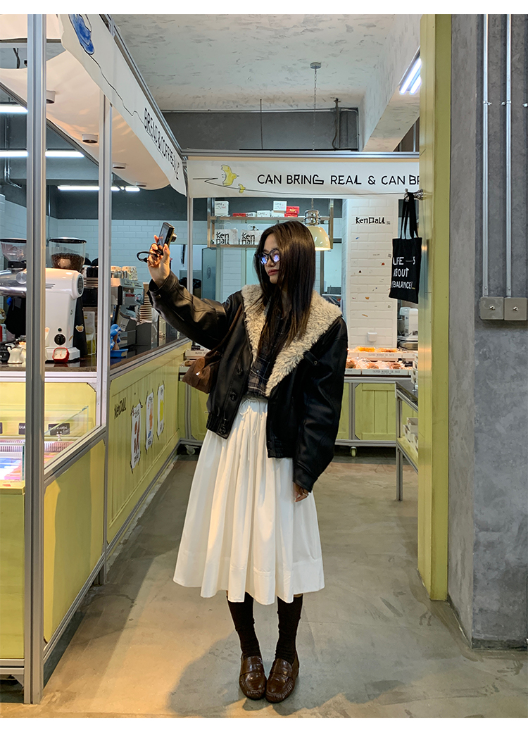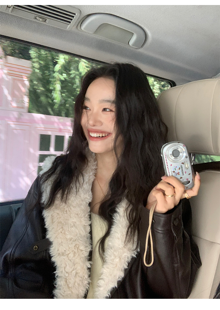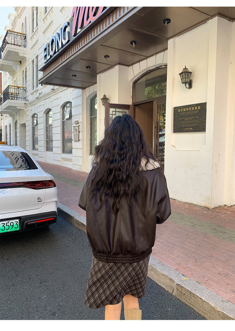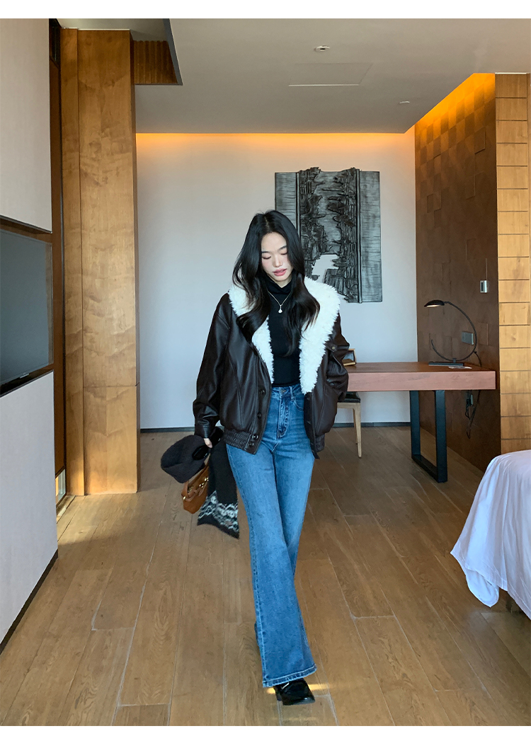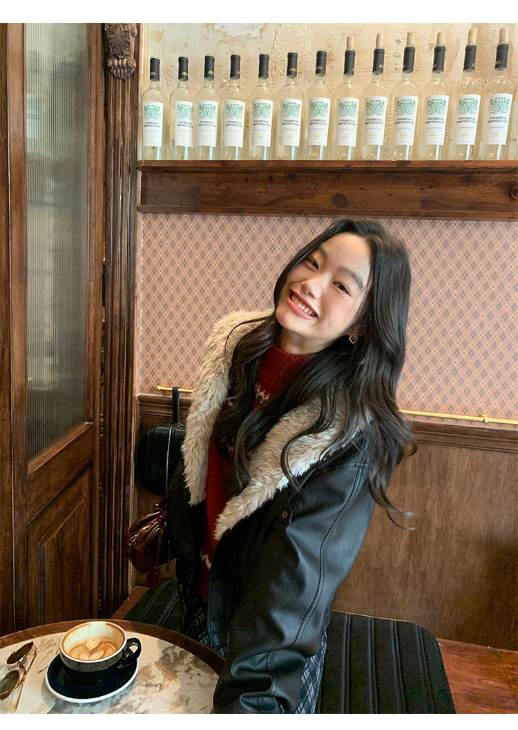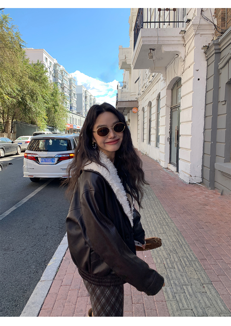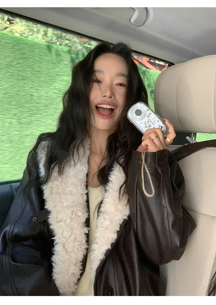 Pusumede High-Quality Private Label Vintage Large Fur Collar Pu Leather Jacket for Women, Stylish Short Warm Leather Coat