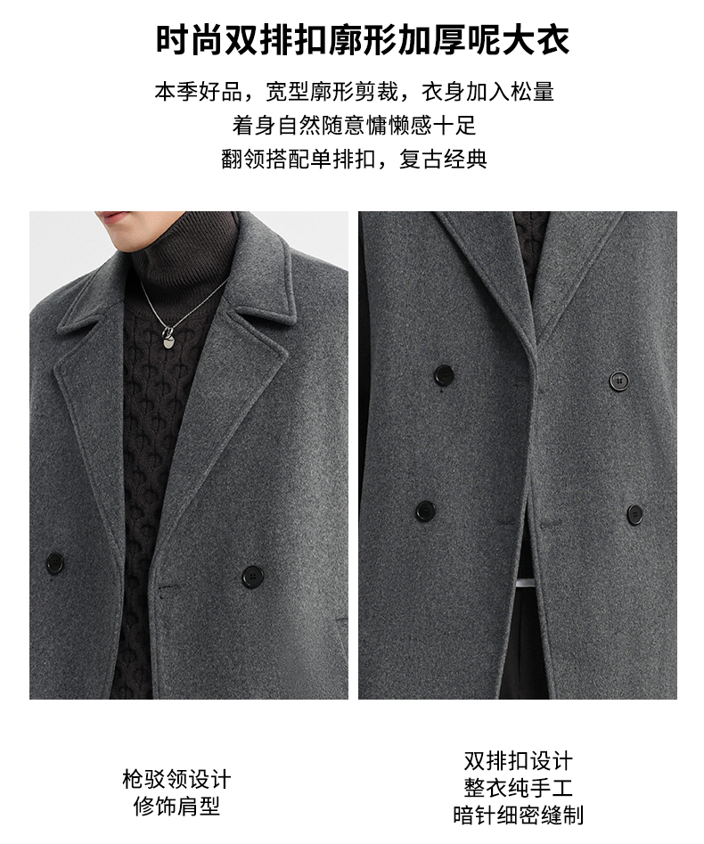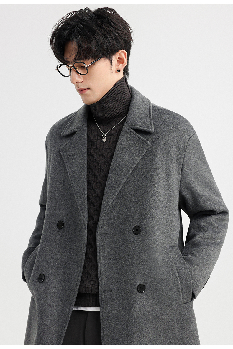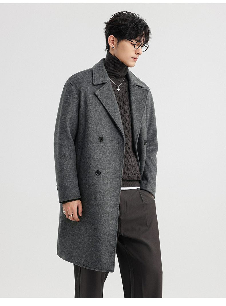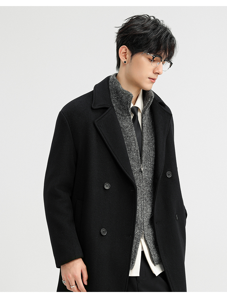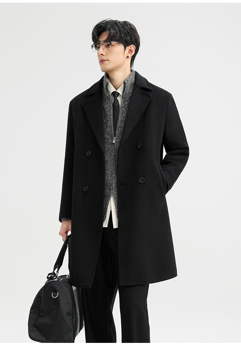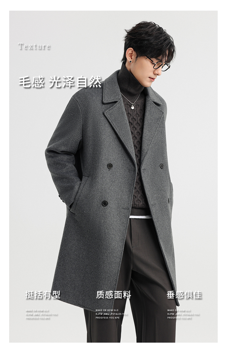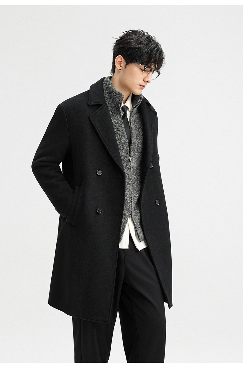 Woodpecker Cashmere Coat for Men, Mid-Length, New Winter Style, Thick Woolen Trench Coat, Double-Breasted Woolen Jacket
