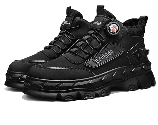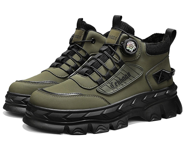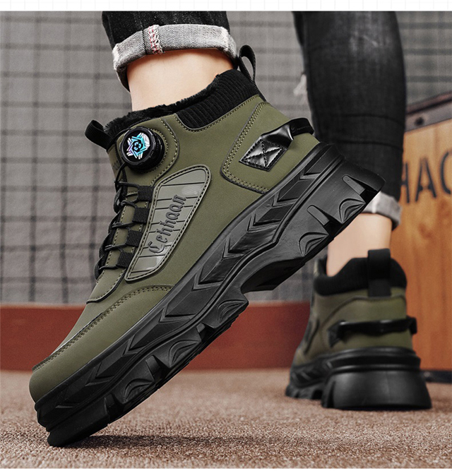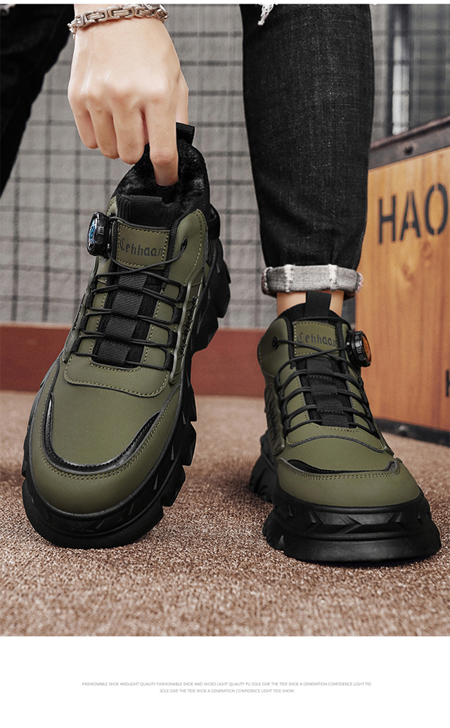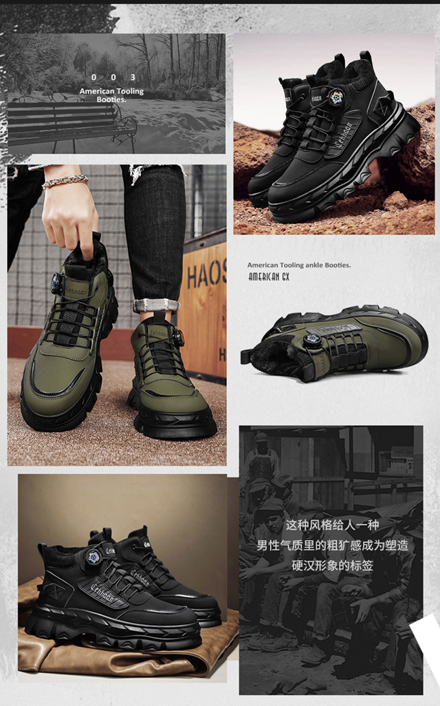 High-Top Men's Shoes, Winter Fleece-Lined Warm Leather Casual Work Boots, Men's Wear-Resistant Thick-Soled Sports Mid-Top Martin Boots