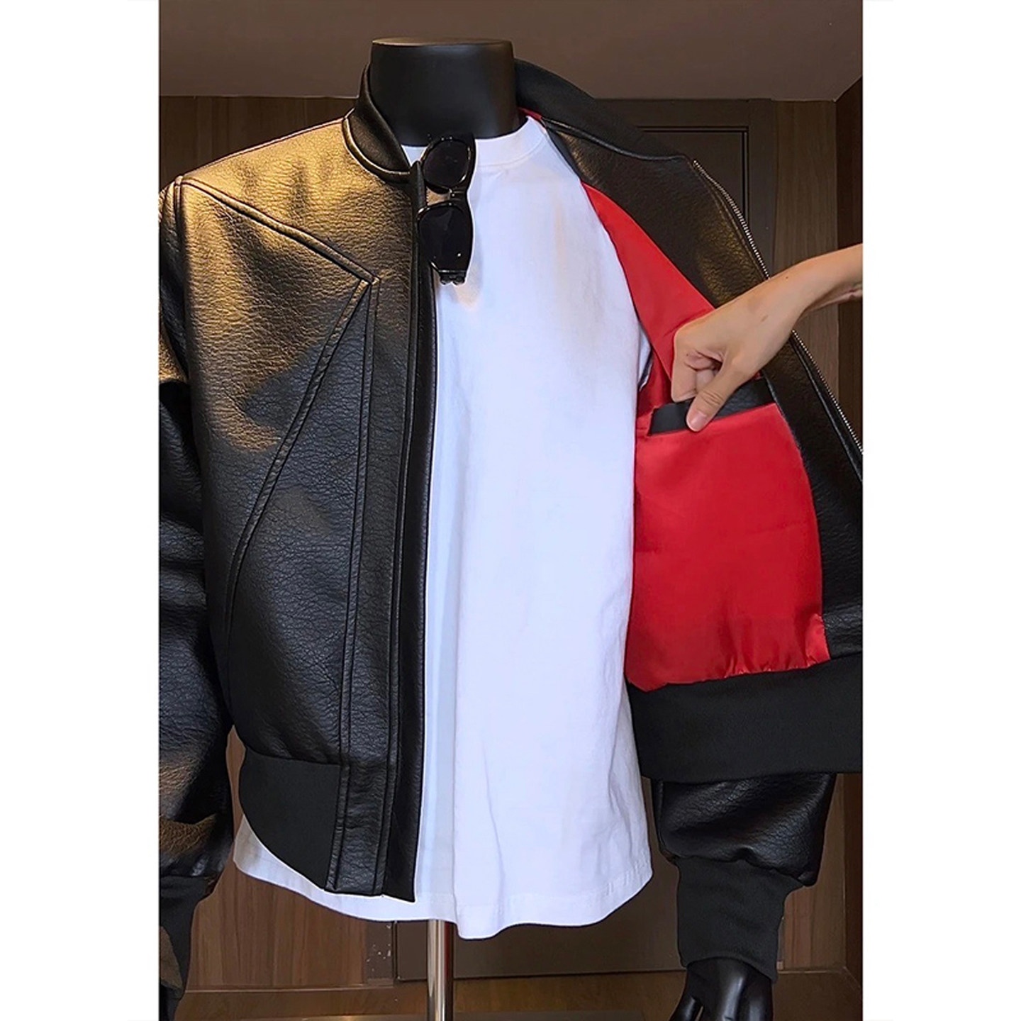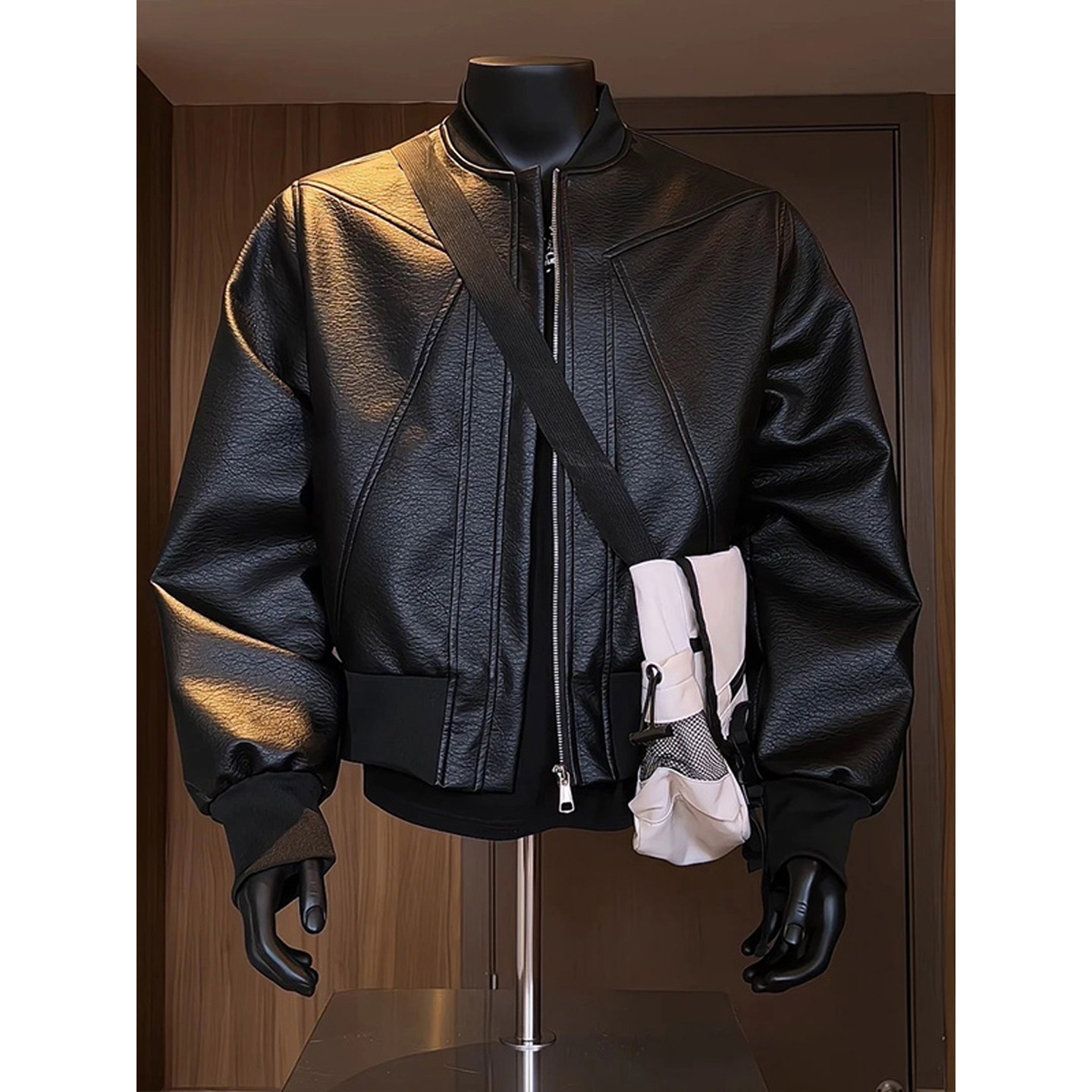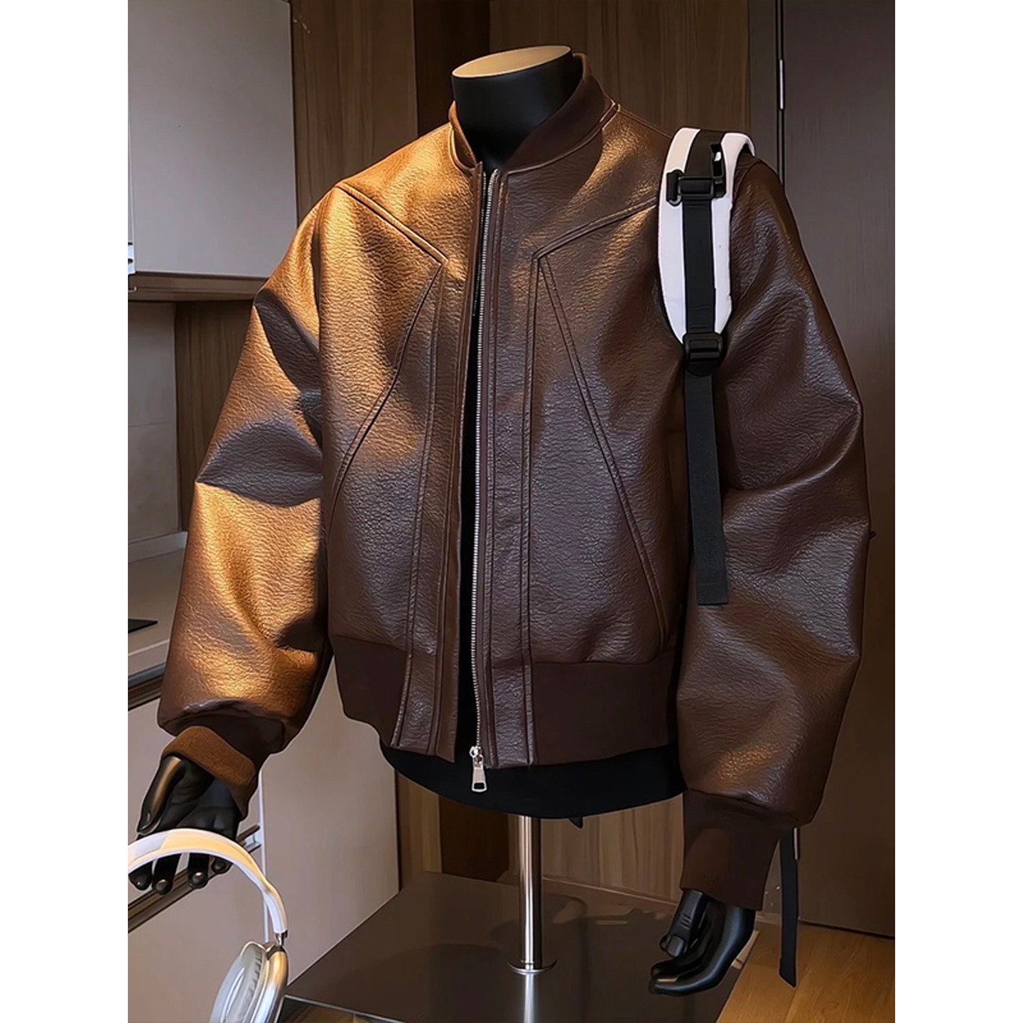 Men's Brown Leather Jacket, Autumn American-Style Bomber Pilot Jacket, Boxy Fit Baseball Jacket