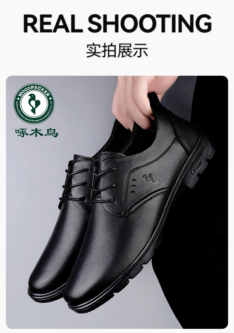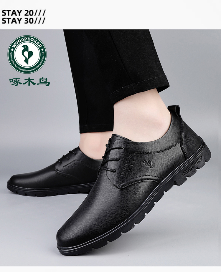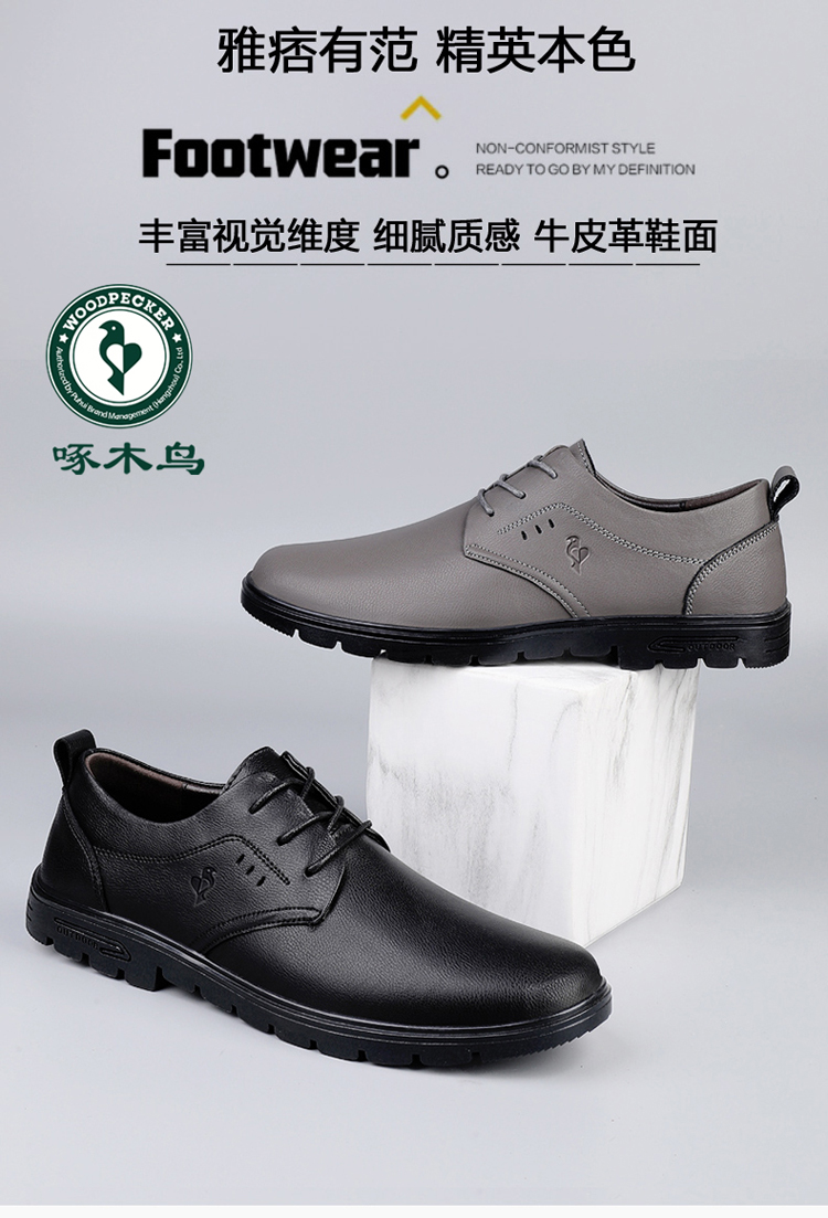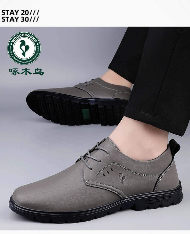 Woodpecker Leather Shoes for Men 2025 New Autumn Business Casual Genuine Leather Lace-Up Soft Sole Men's Casual Shoes Gray