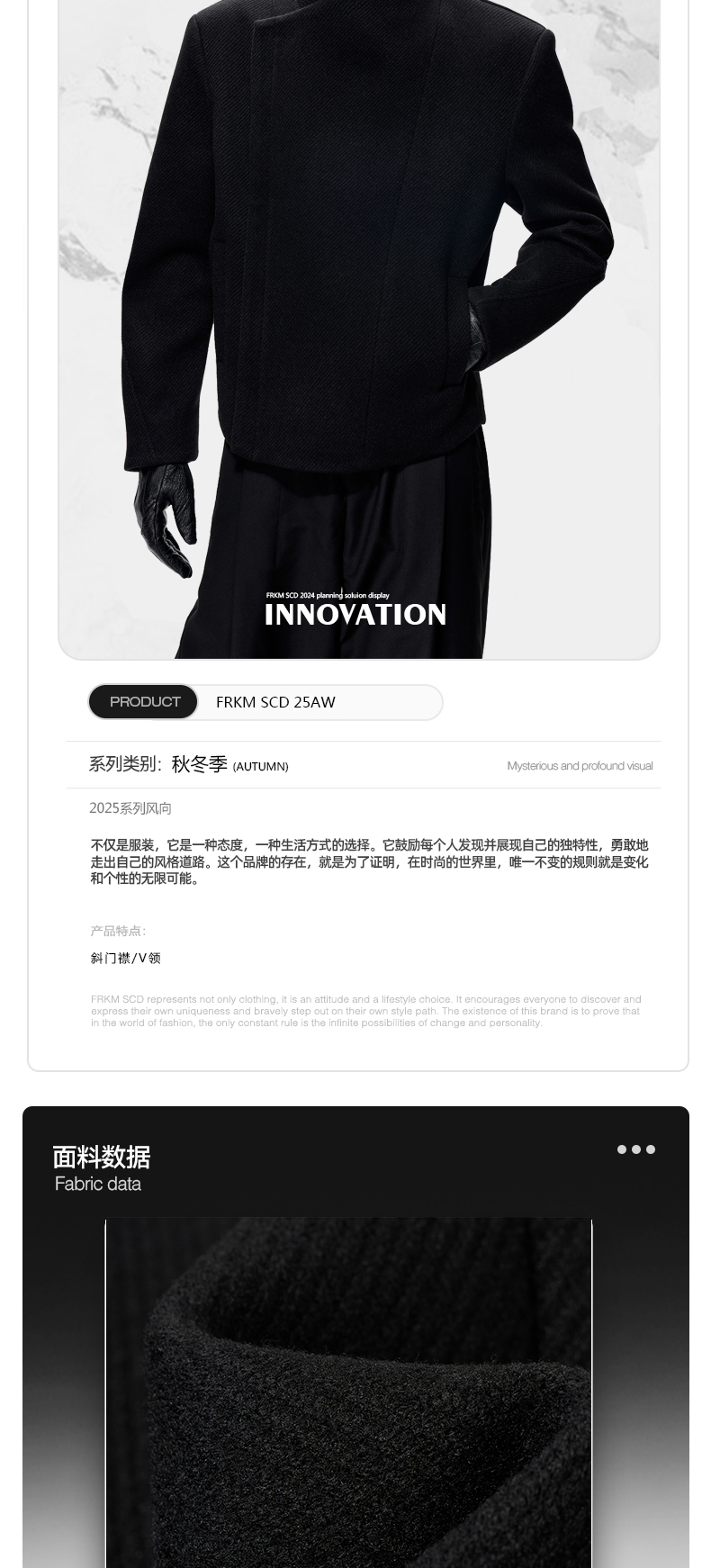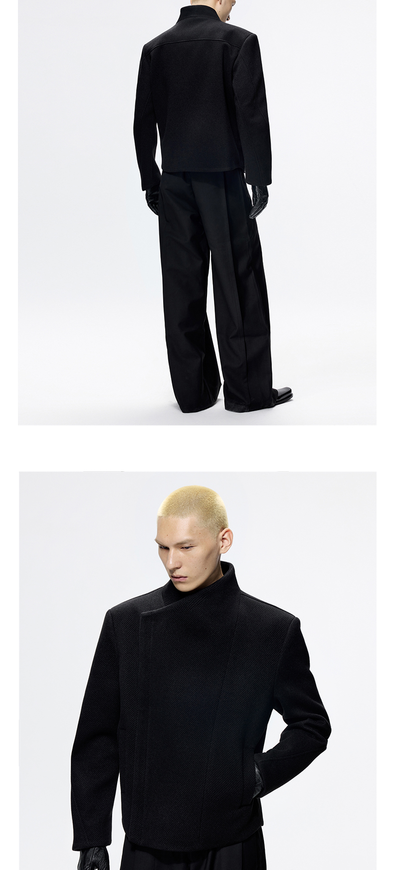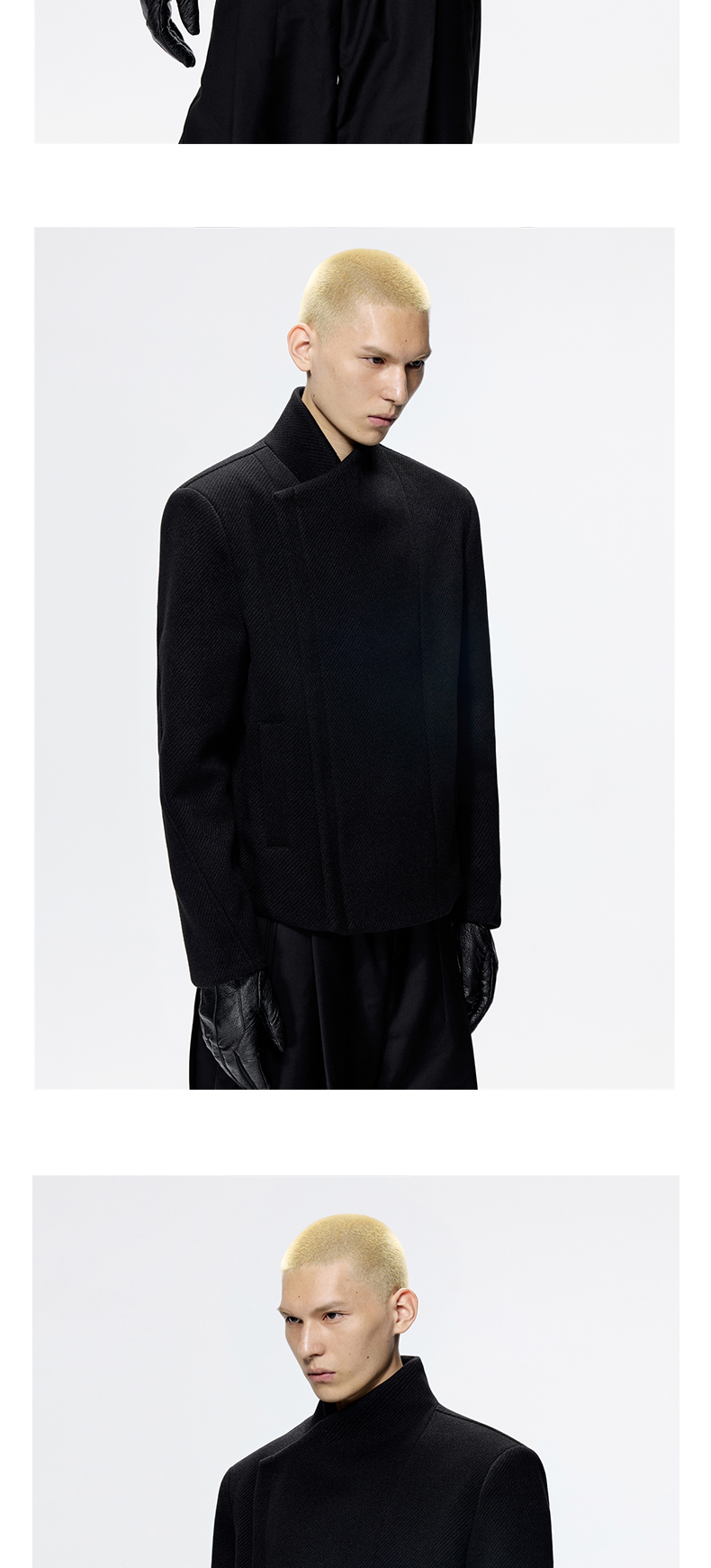 FRKM SCD 25AW Deconstruct slant placket woolen Outwear V Neck Fall and winter New arrival Heattech twill short coat