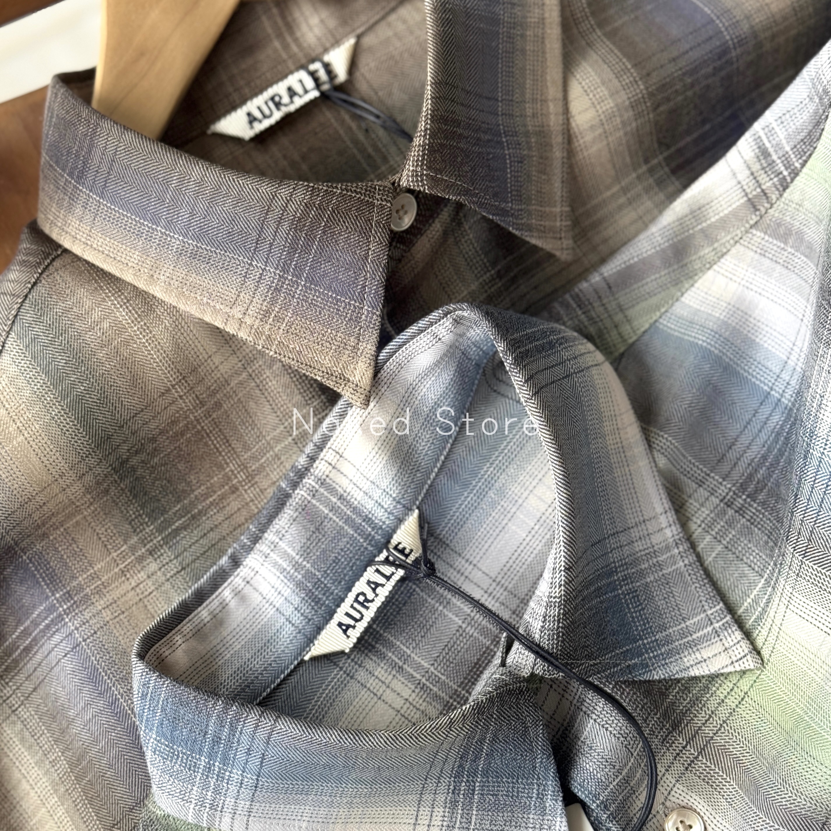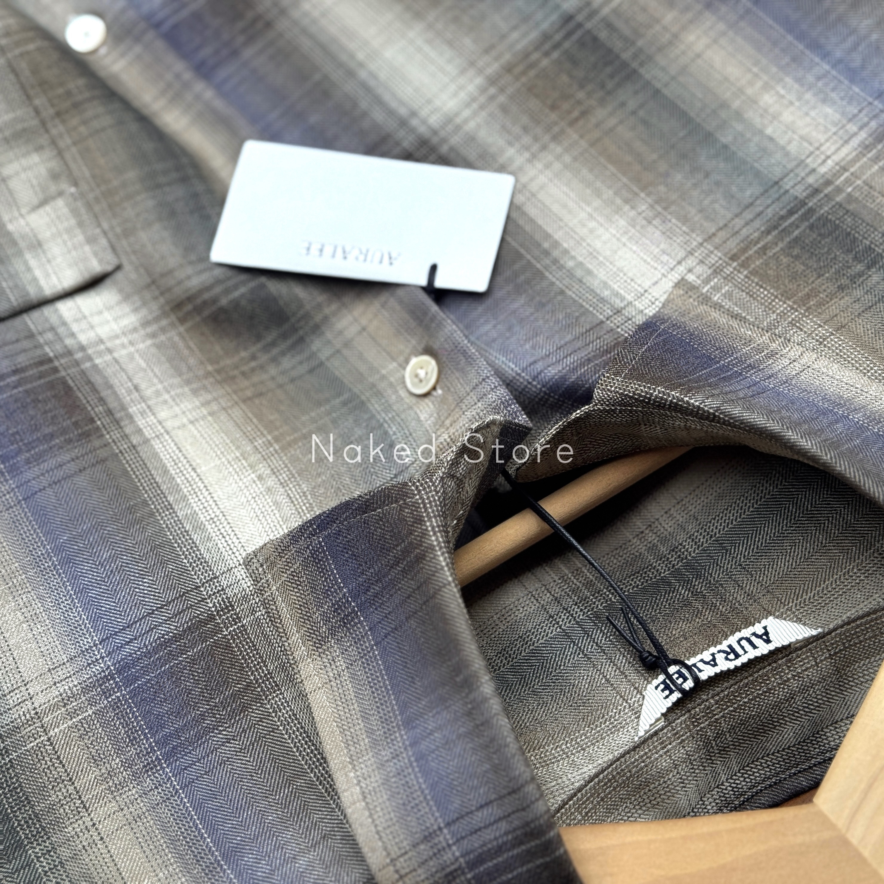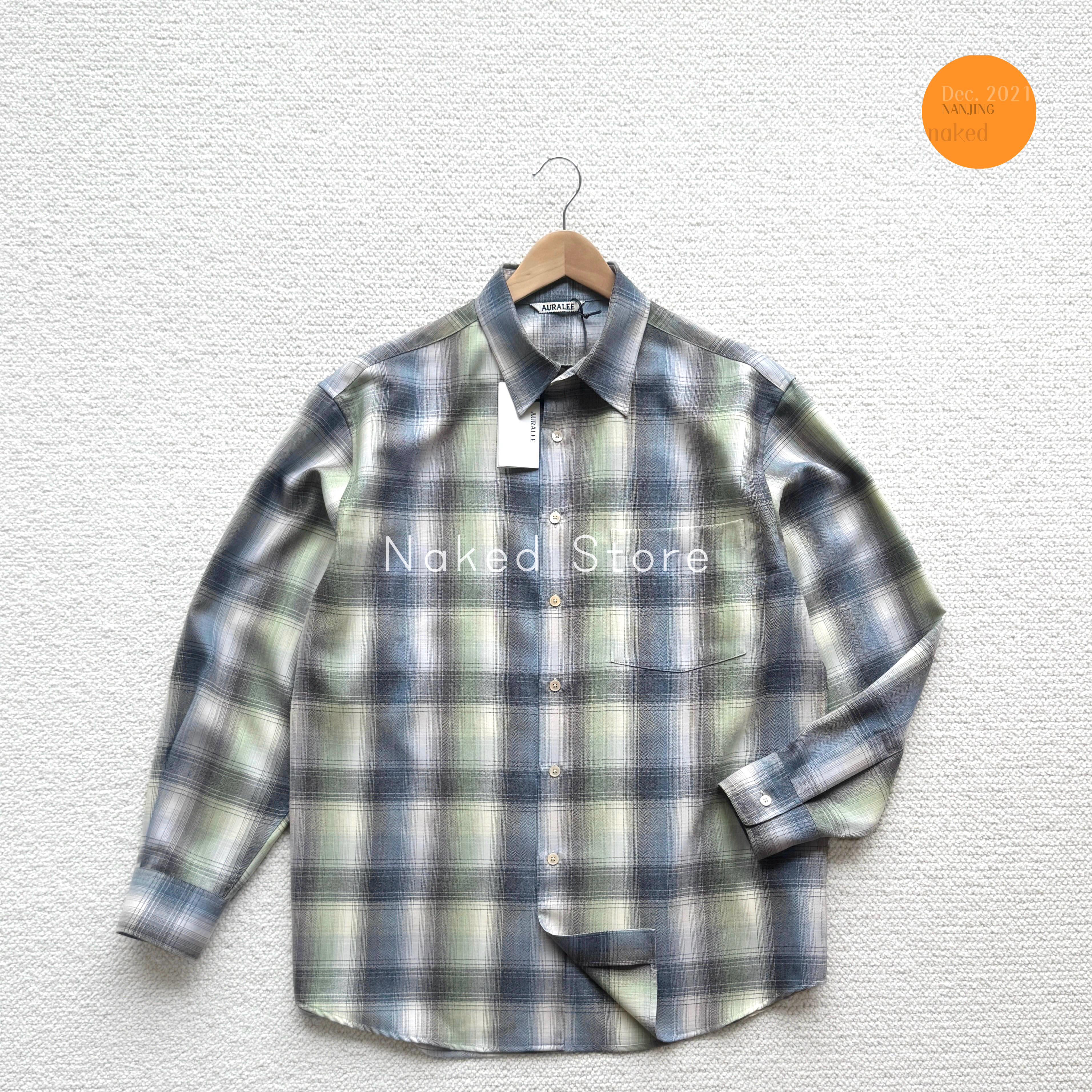 In Stock Auralee Super Light Wool Japanese-Made Washable Wool Plaid Long-Sleeve Shirt 25Aw