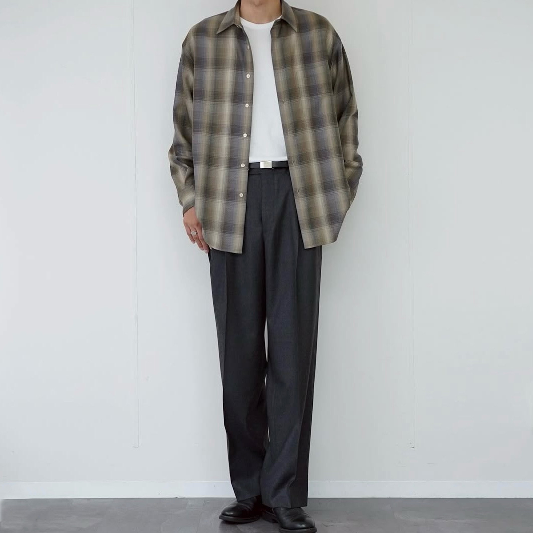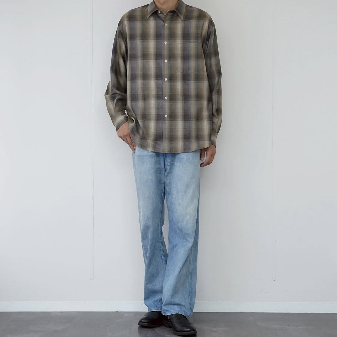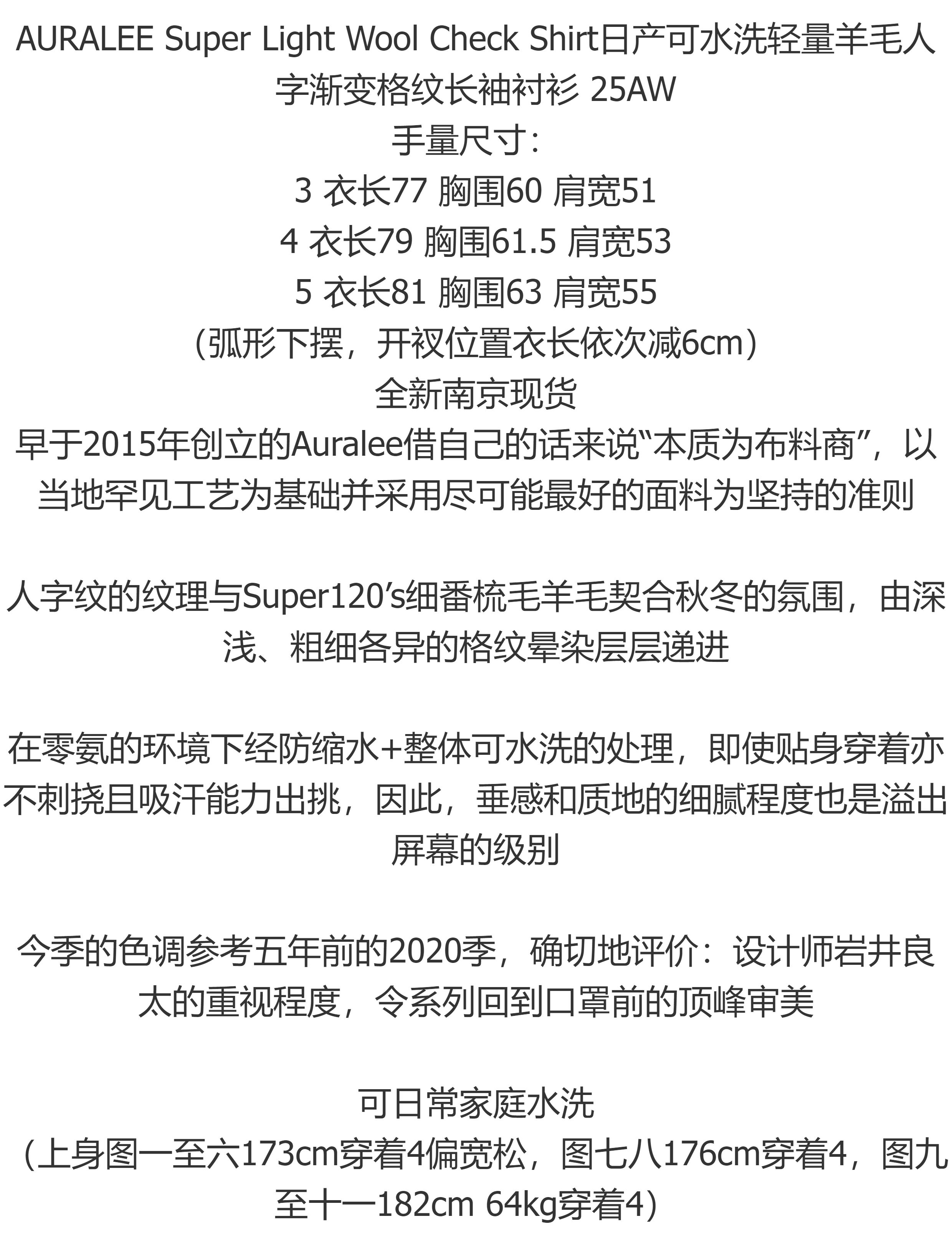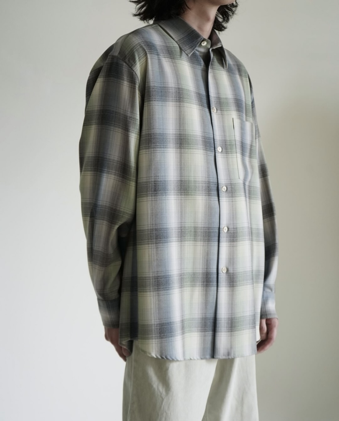In Stock Auralee Super Light Wool Japanese-Made Washable Wool Plaid Long-Sleeve Shirt 25Aw