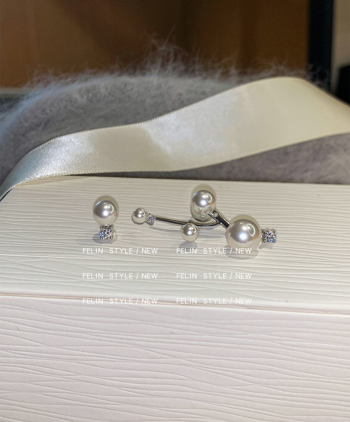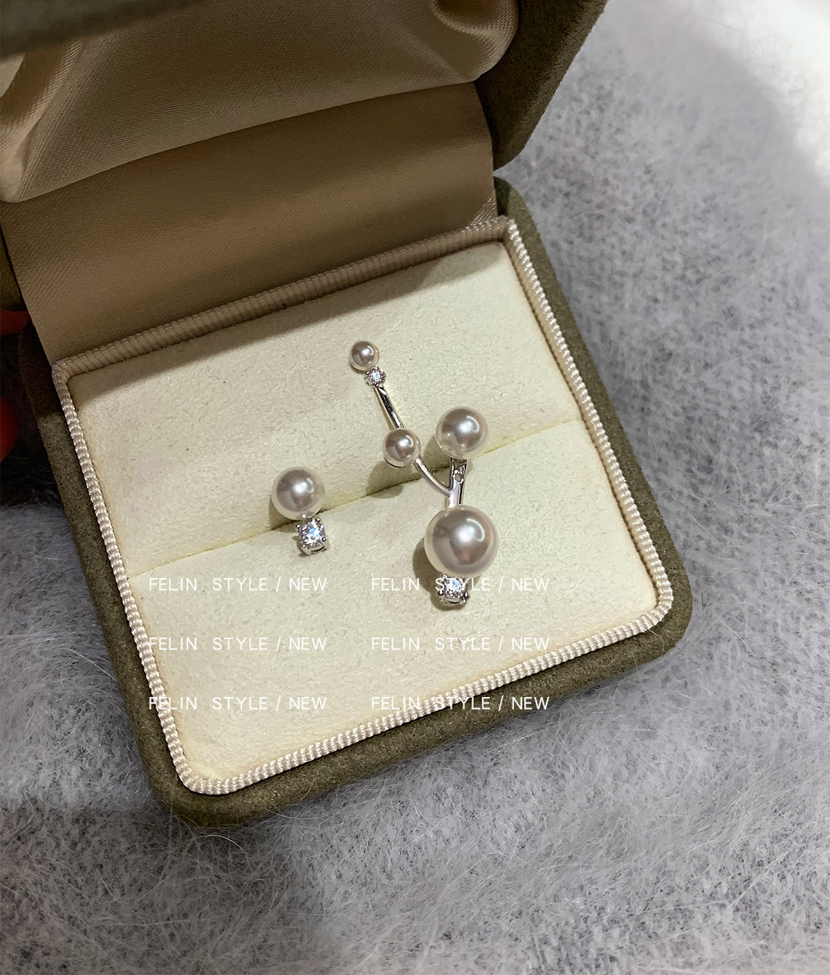 999 sterling silver asymmetric diamond pearl earrings women's Accessible Luxury Fancy beautiful beautiful Elegant earrings earrings