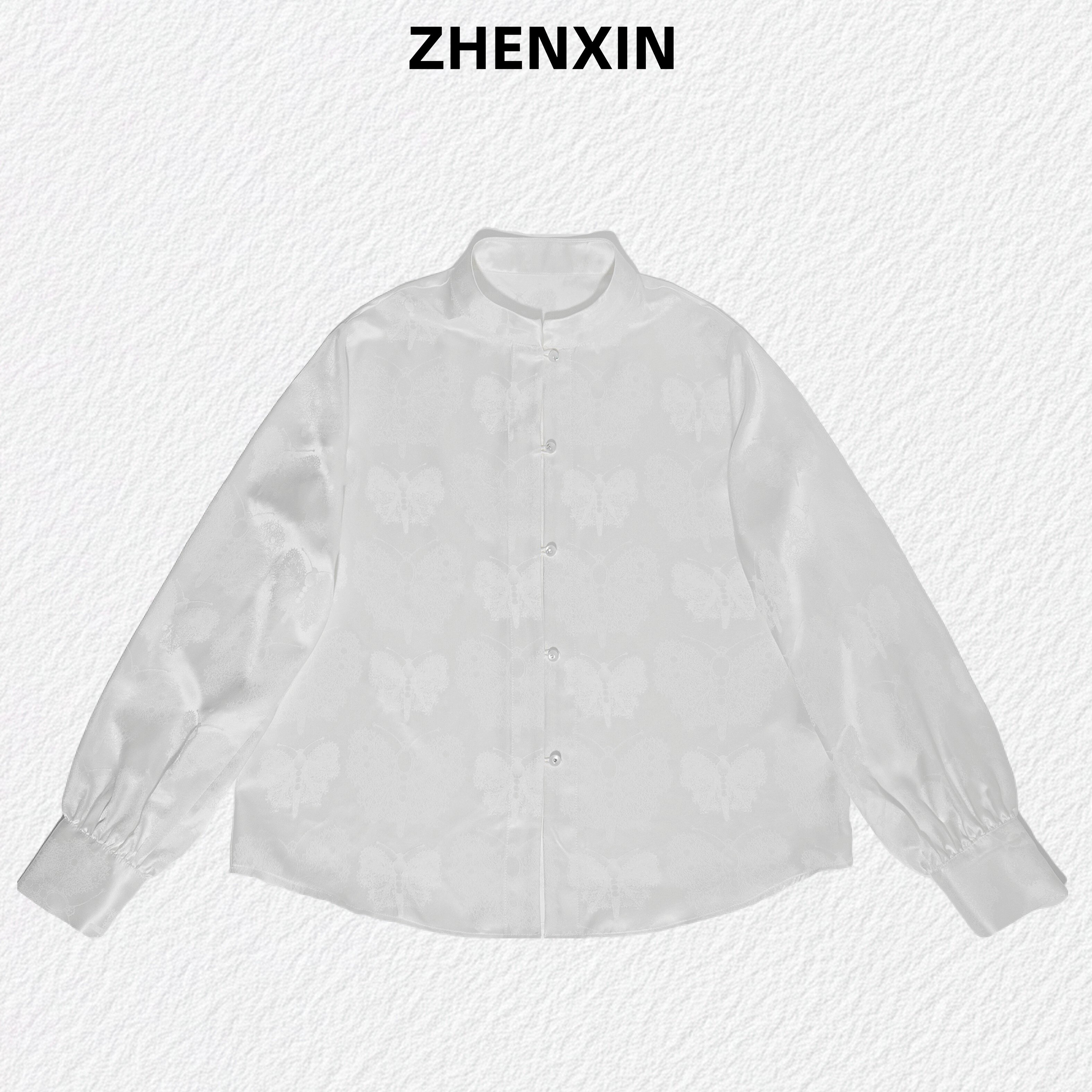 【Zhai Niao*Butterfly】Shangjiuqiao Long-Sleeved Shirt Made of Mulberry Silk for Spring and Autumn, Chinese-Style Front Placket