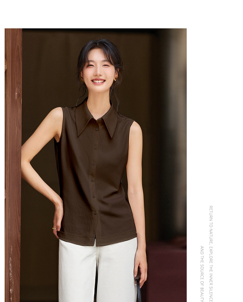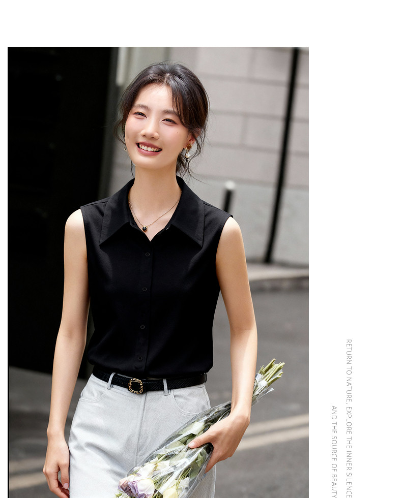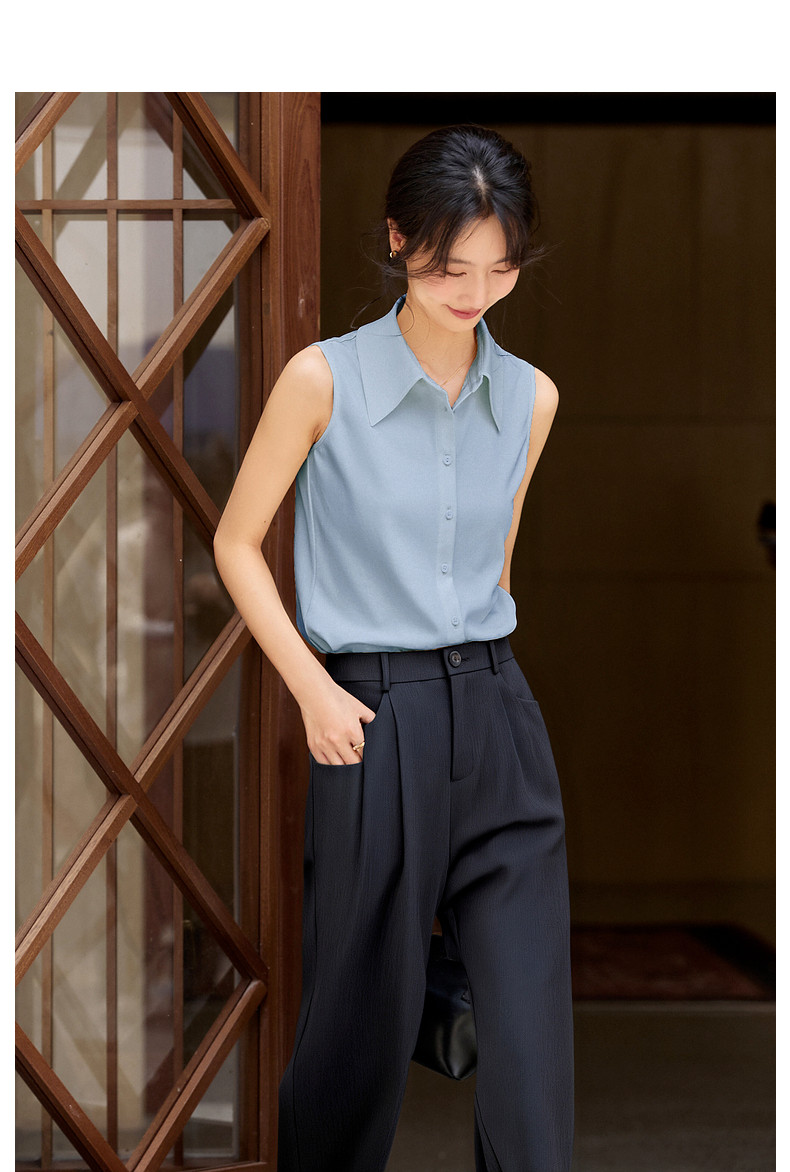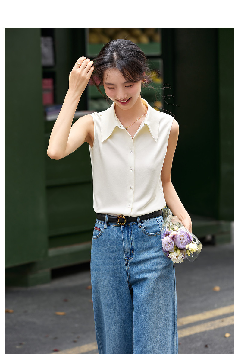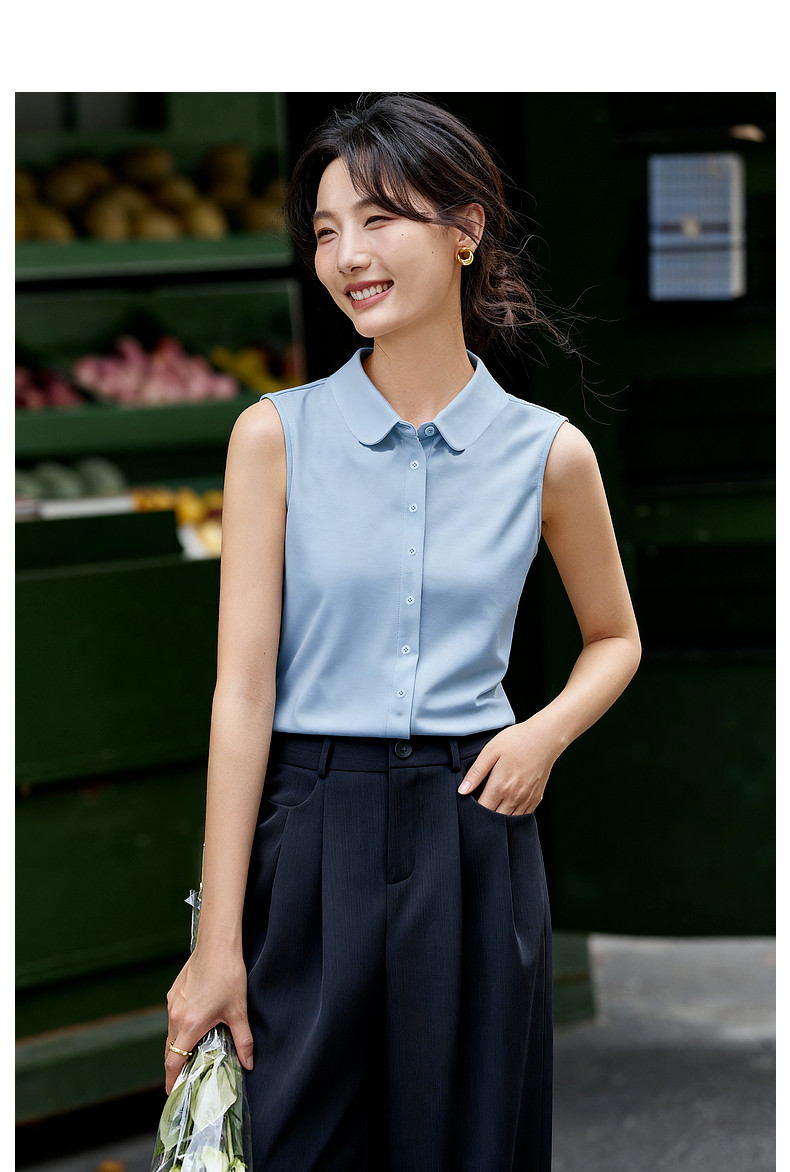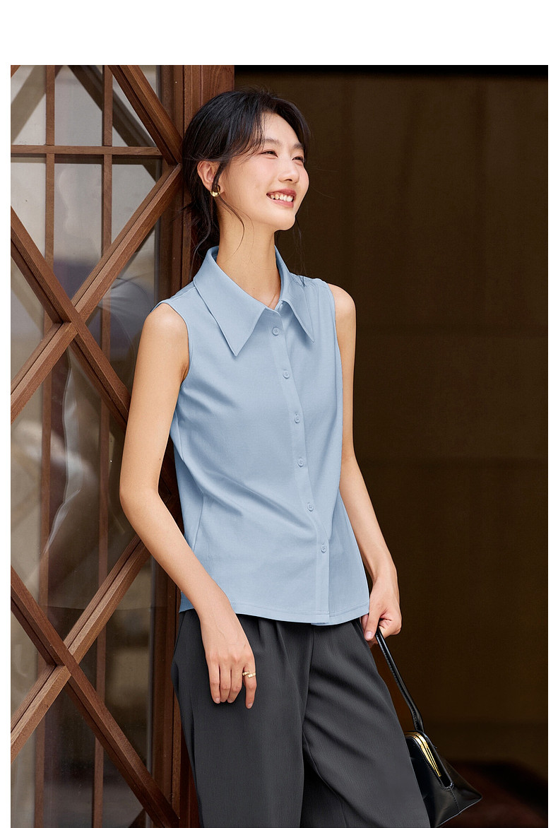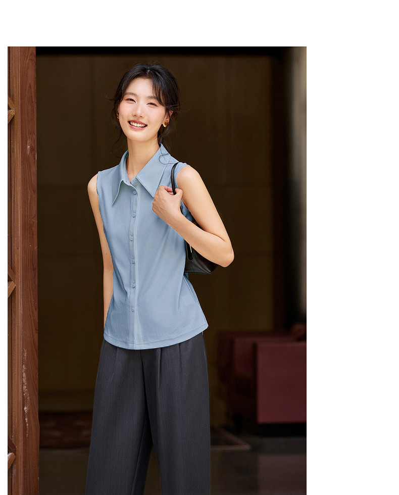 Fanxi Man Blue Commuter Sleeveless Shirt Women's 2025 Autumn New Style Inner Layering Shirt with a Turn-Down Collar Vest Top