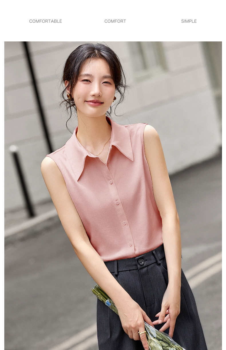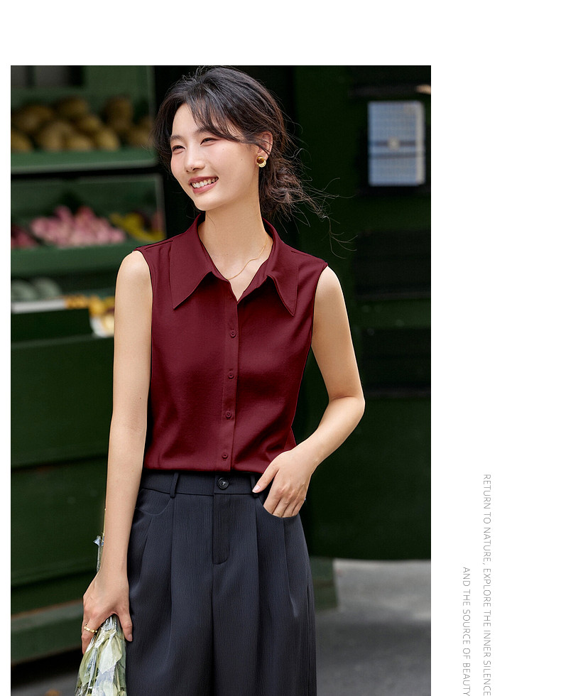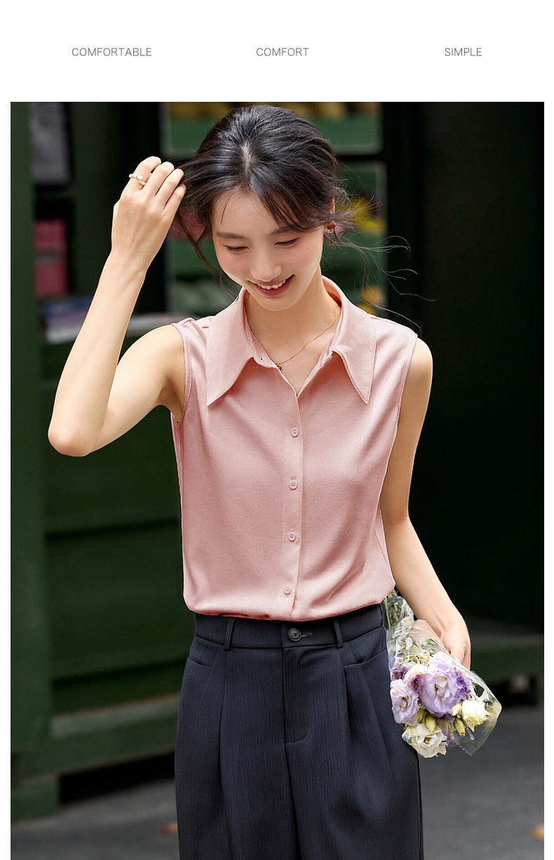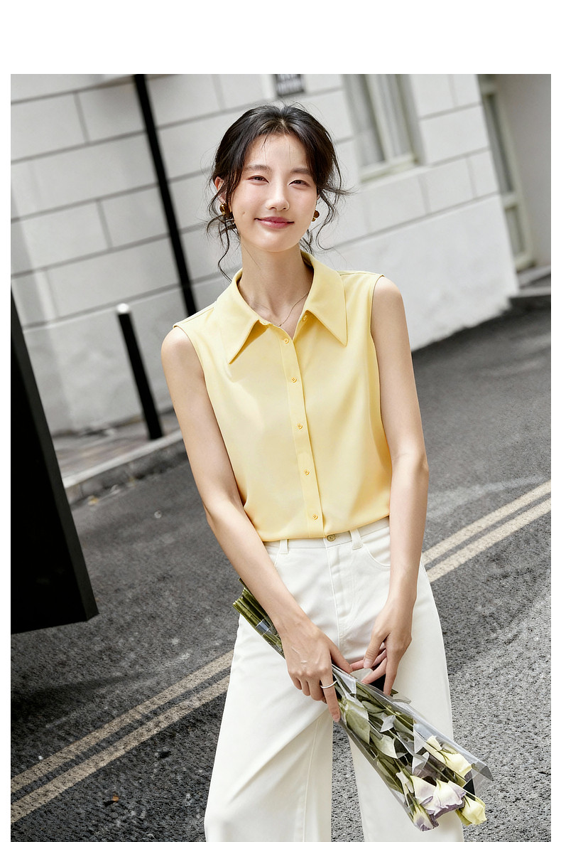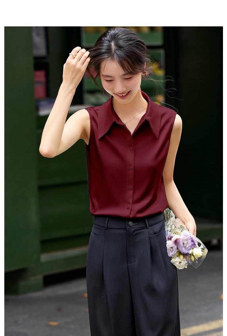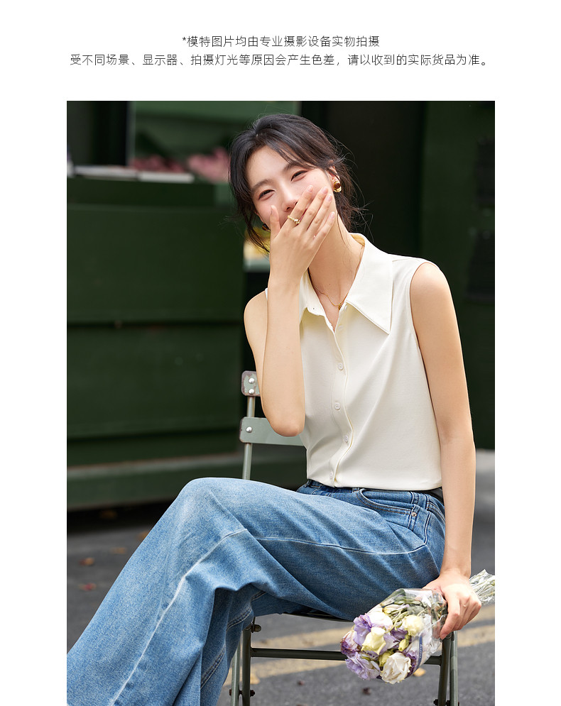 Fanxi Man Blue Commuter Sleeveless Shirt Women's 2025 Autumn New Style Inner Layering Shirt with a Turn-Down Collar Vest Top