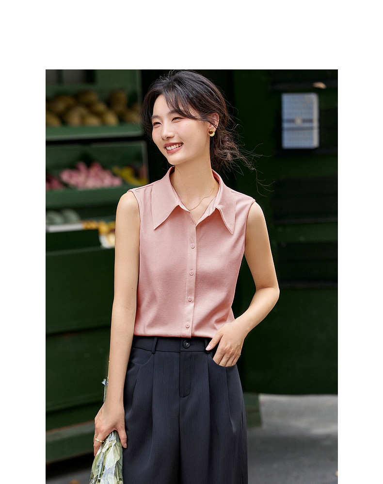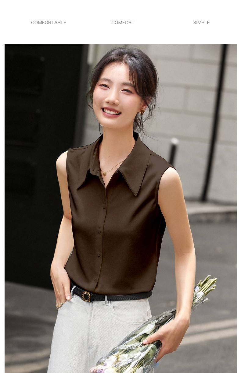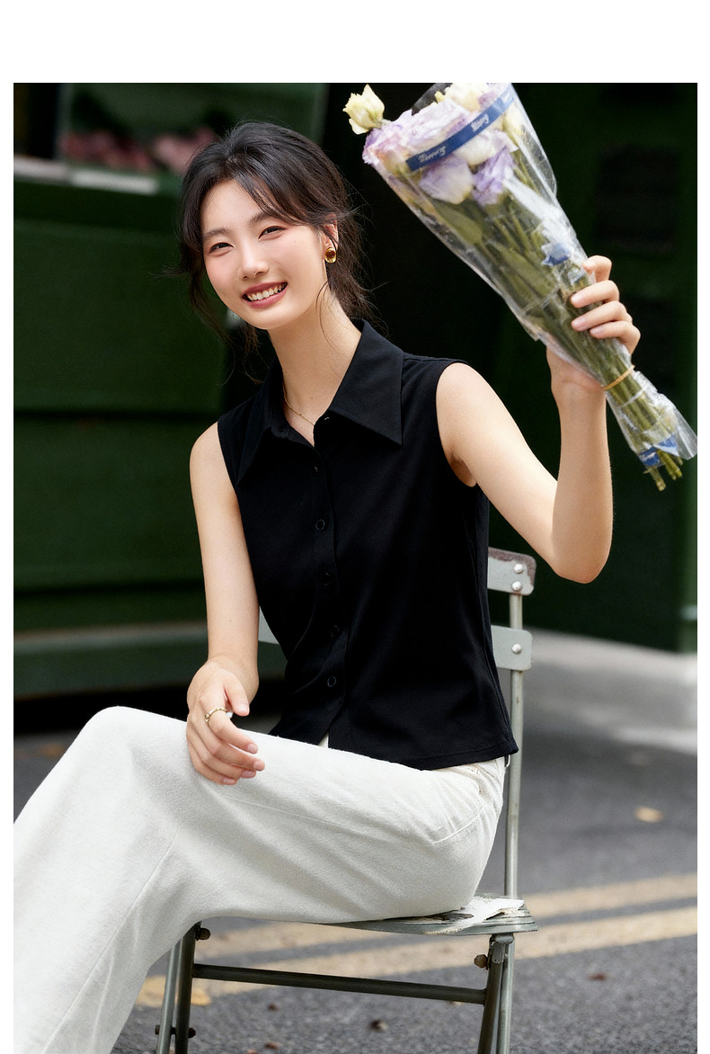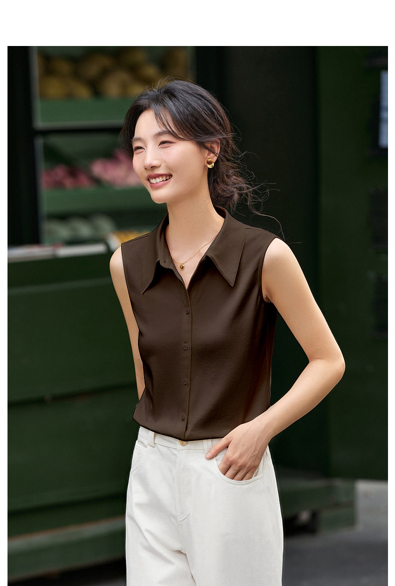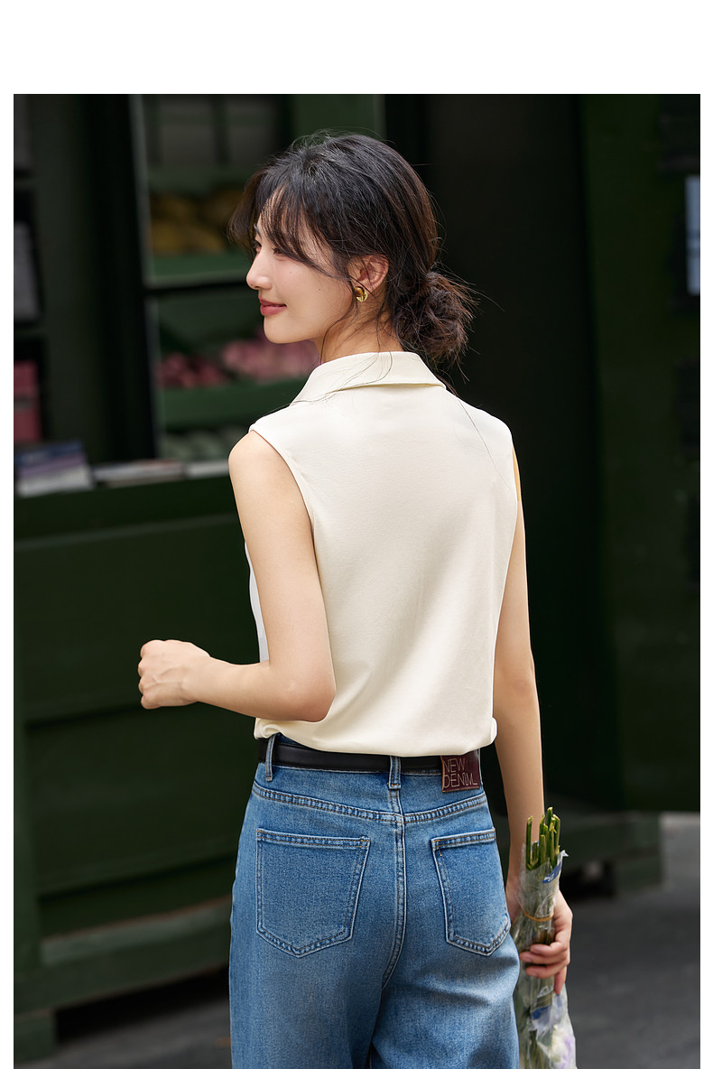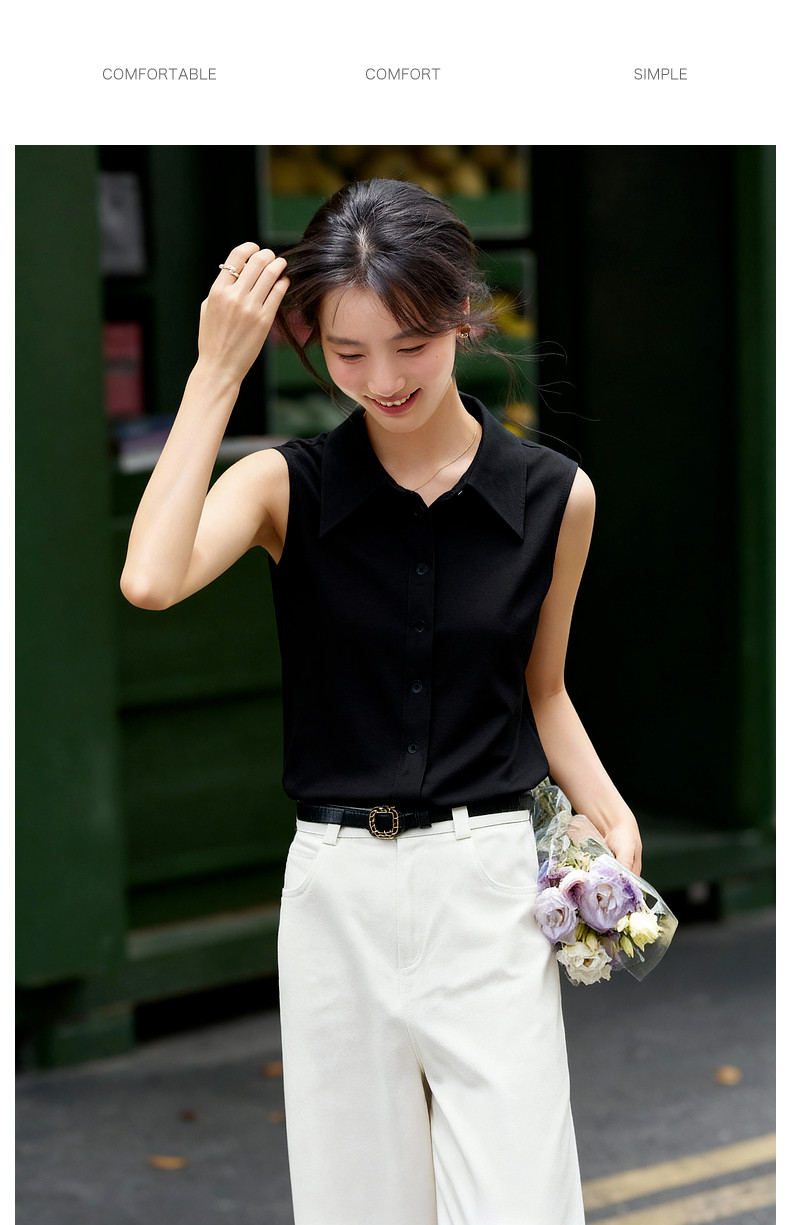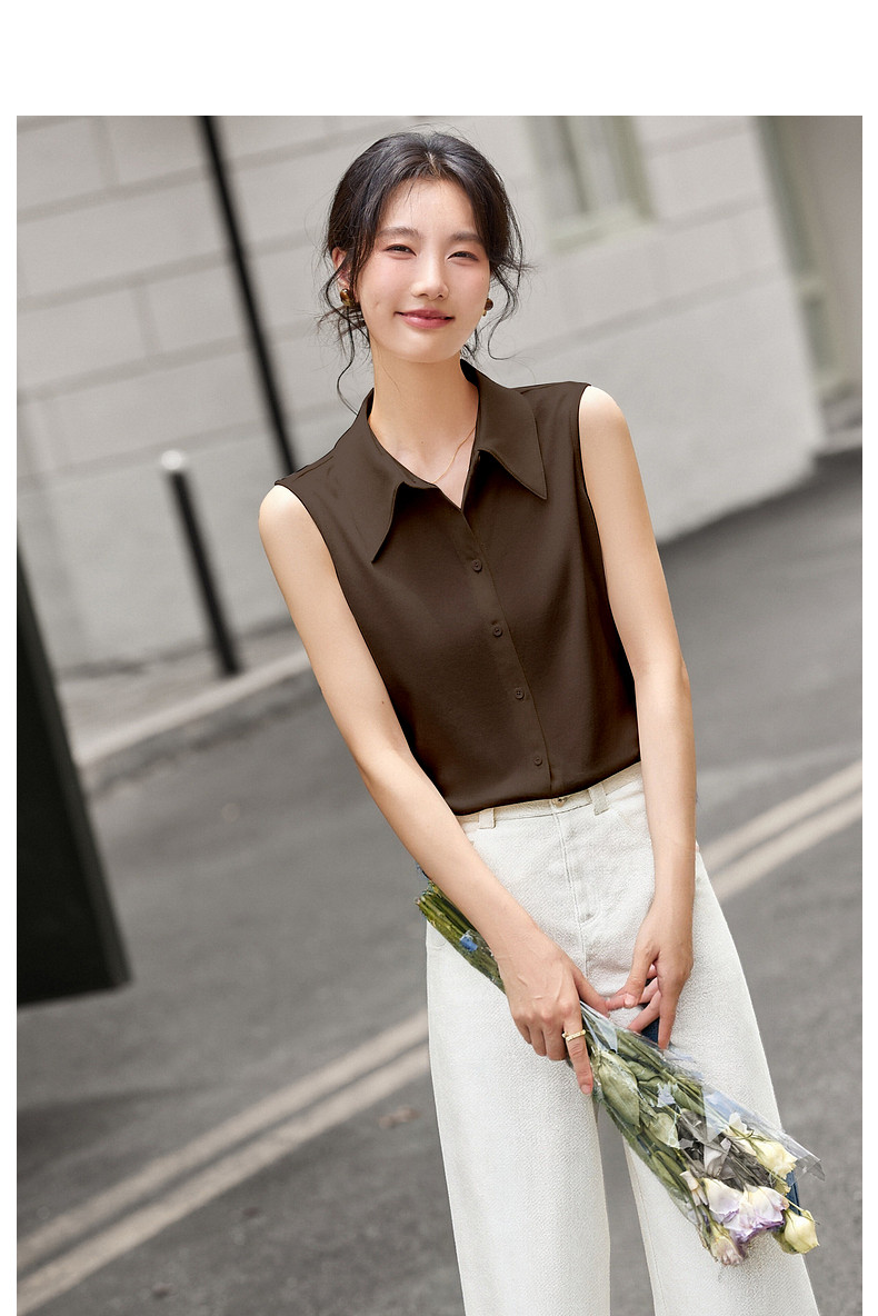 Fanxi Man Blue Commuter Sleeveless Shirt Women's 2025 Autumn New Style Inner Layering Shirt with a Turn-Down Collar Vest Top