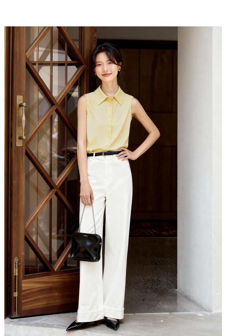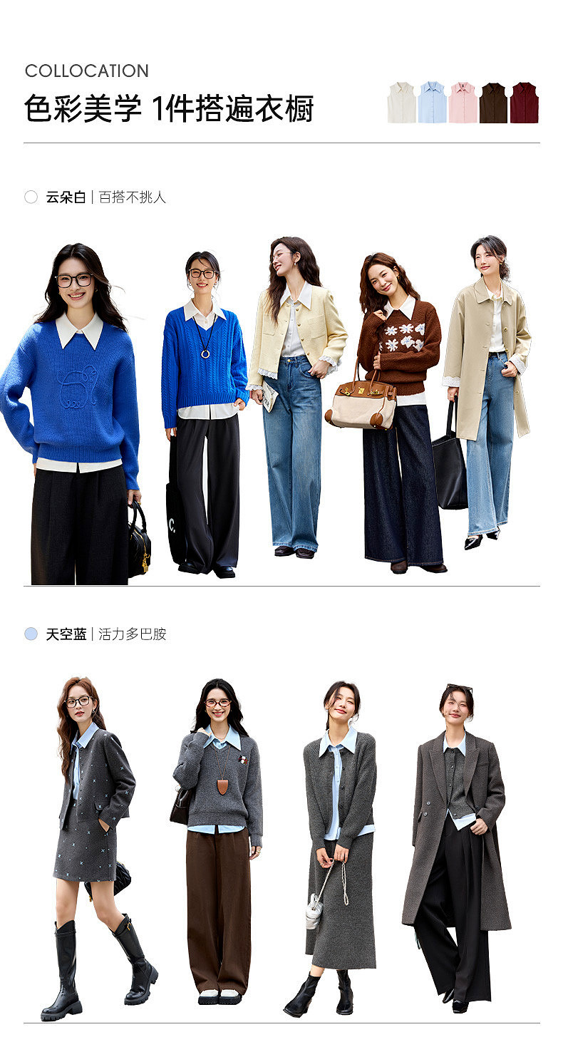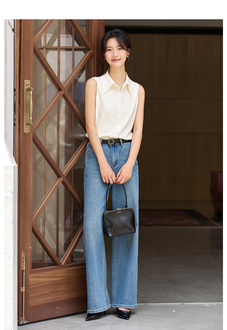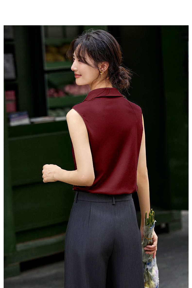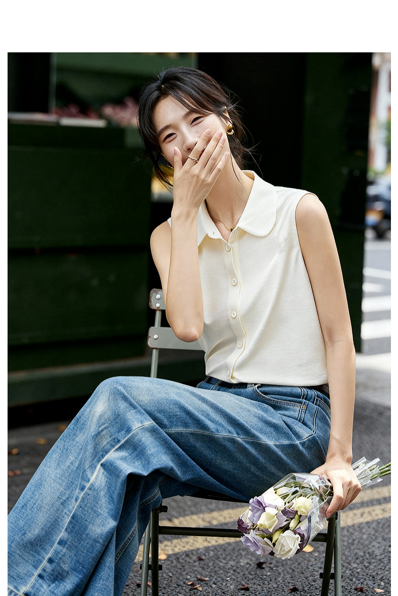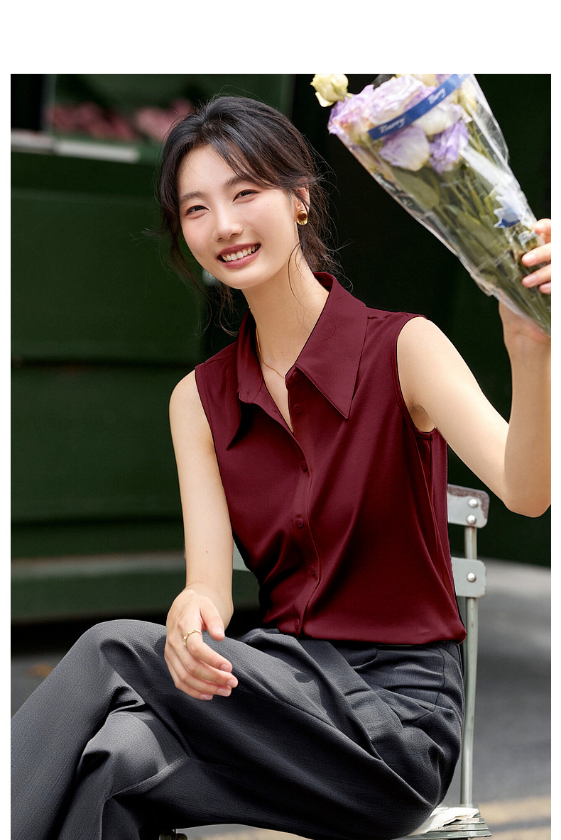 Fanxi Man Blue Commuter Sleeveless Shirt Women's 2025 Autumn New Style Inner Layering Shirt with a Turn-Down Collar Vest Top