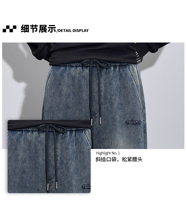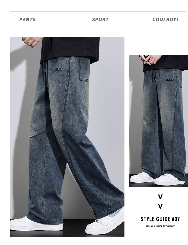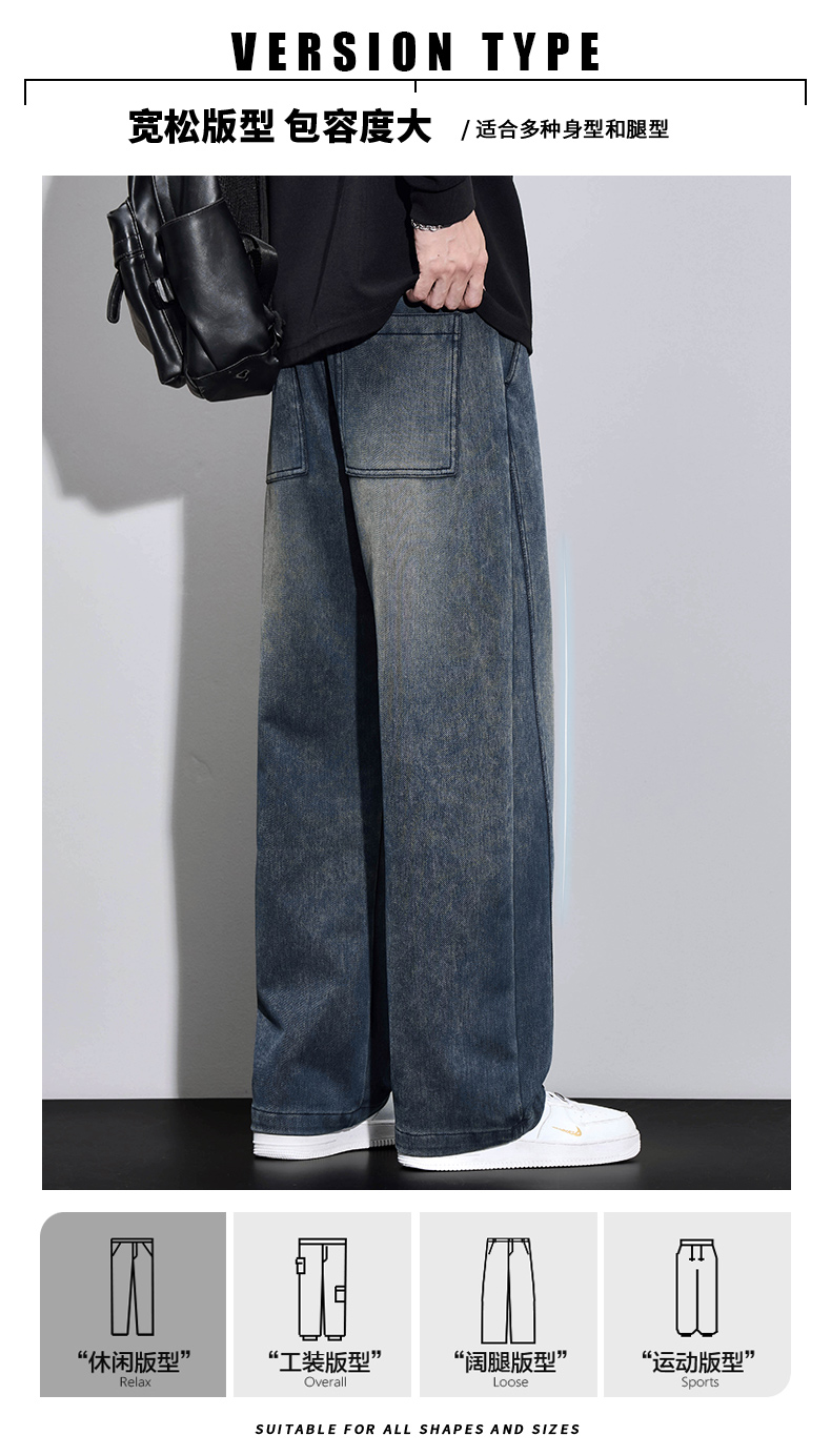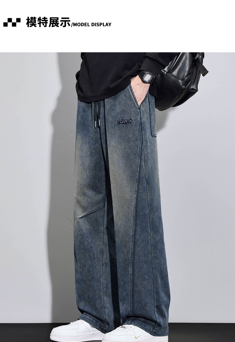 2025 Autumn/Winter New Men's Vintage Washed Knitted Loose Straight American Casual Fleece-Lined Long Jeans