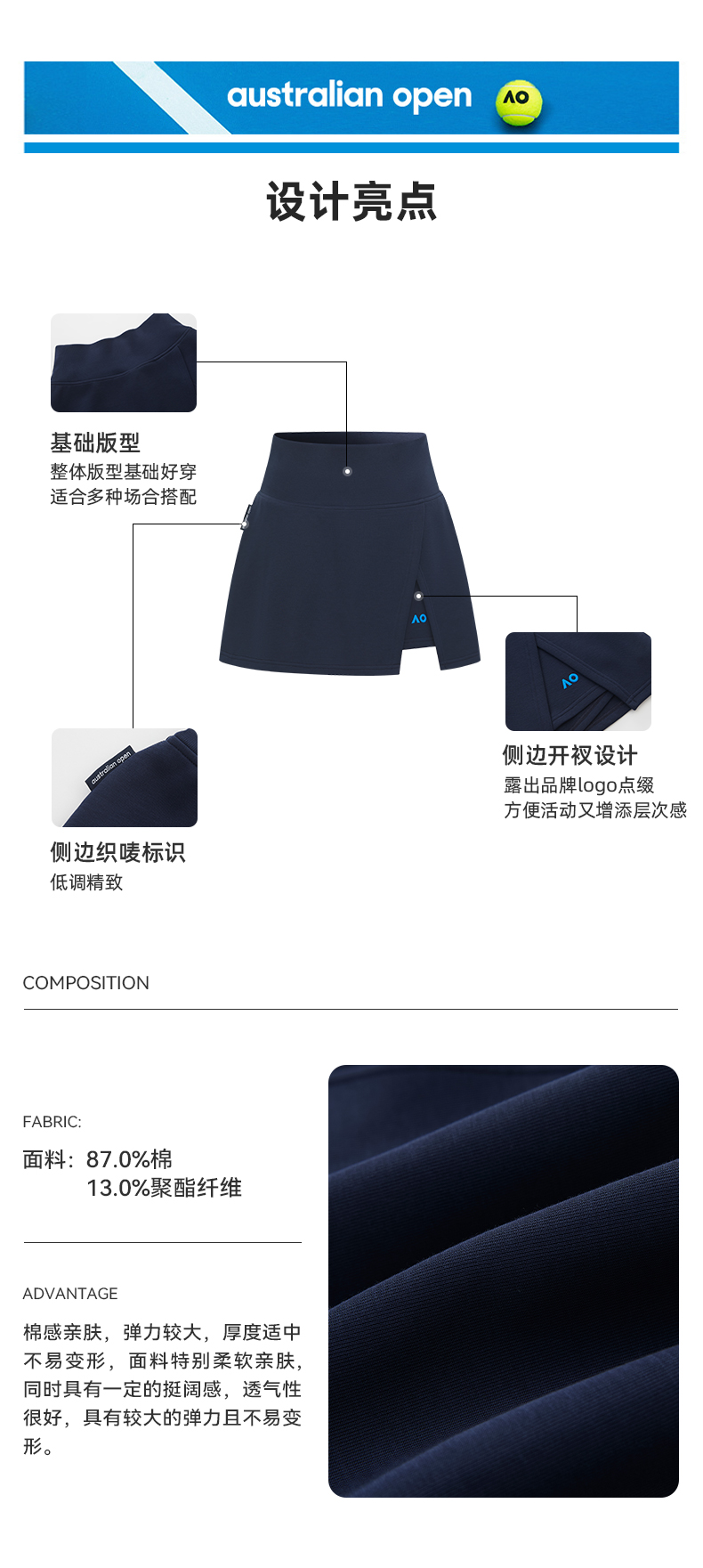 Ao Australian Open Sports Skirt Tennis Skirt Training Fitness Short Skirt Basic Slit Skirt Anti-Exposure Women's Short Skirt