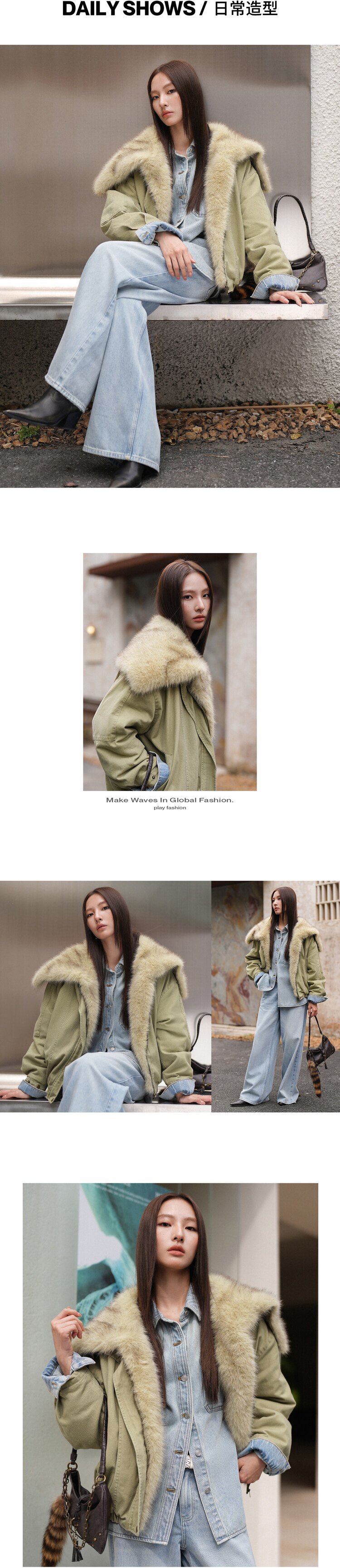 材质成分 : 面料:100%棉 仿毛领:100%聚酯纤维 里料:100%聚酯纤维 填充物:100%聚酯纤维