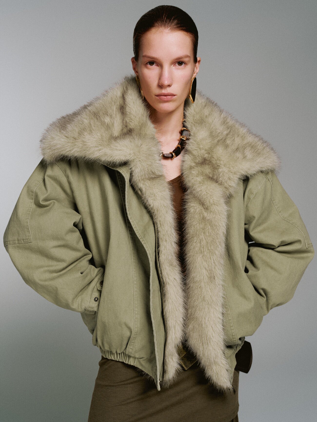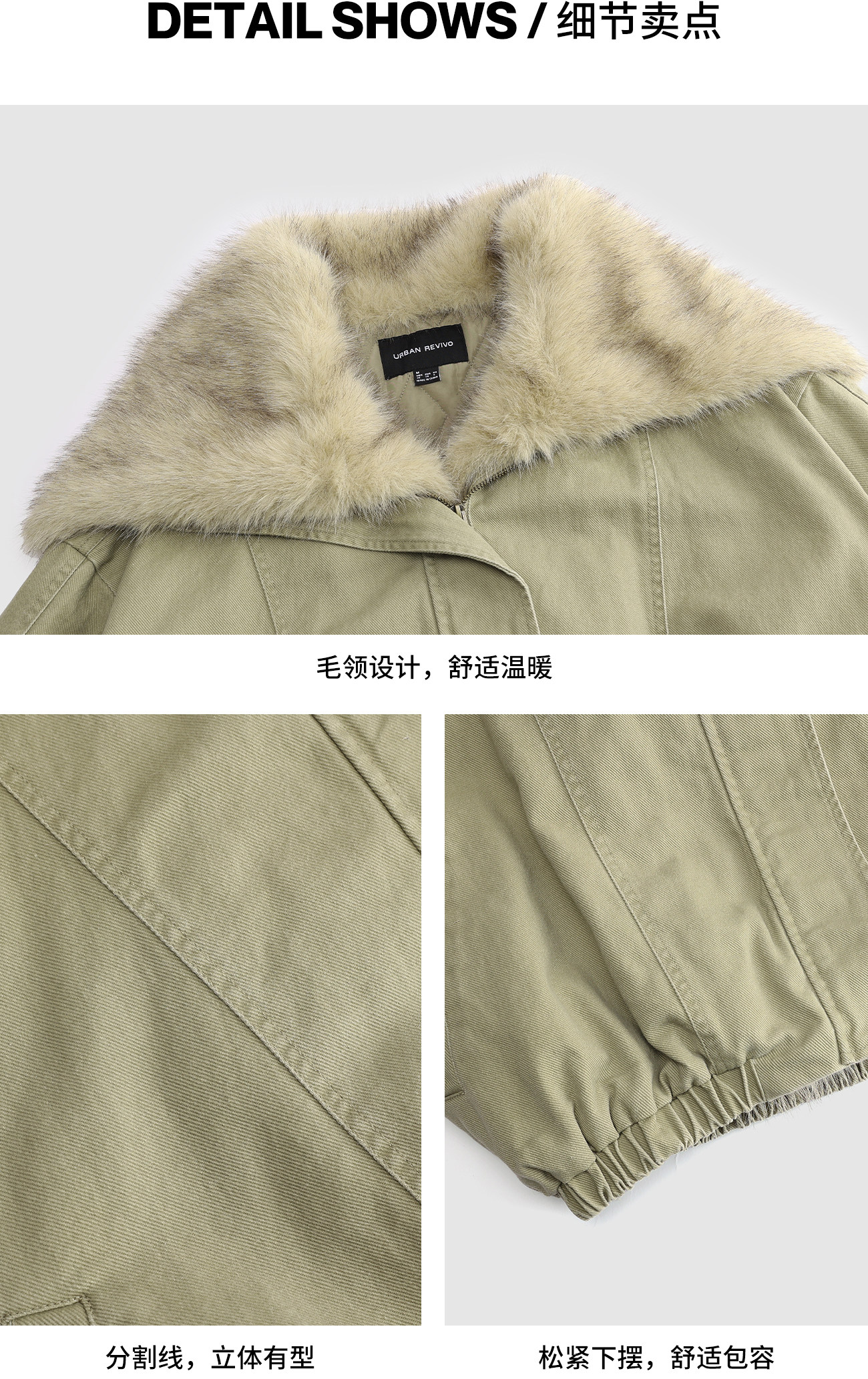 面料:100%棉 仿毛领:100%聚酯纤维 里料:100%聚酯纤维 填充物:100%聚酯纤维