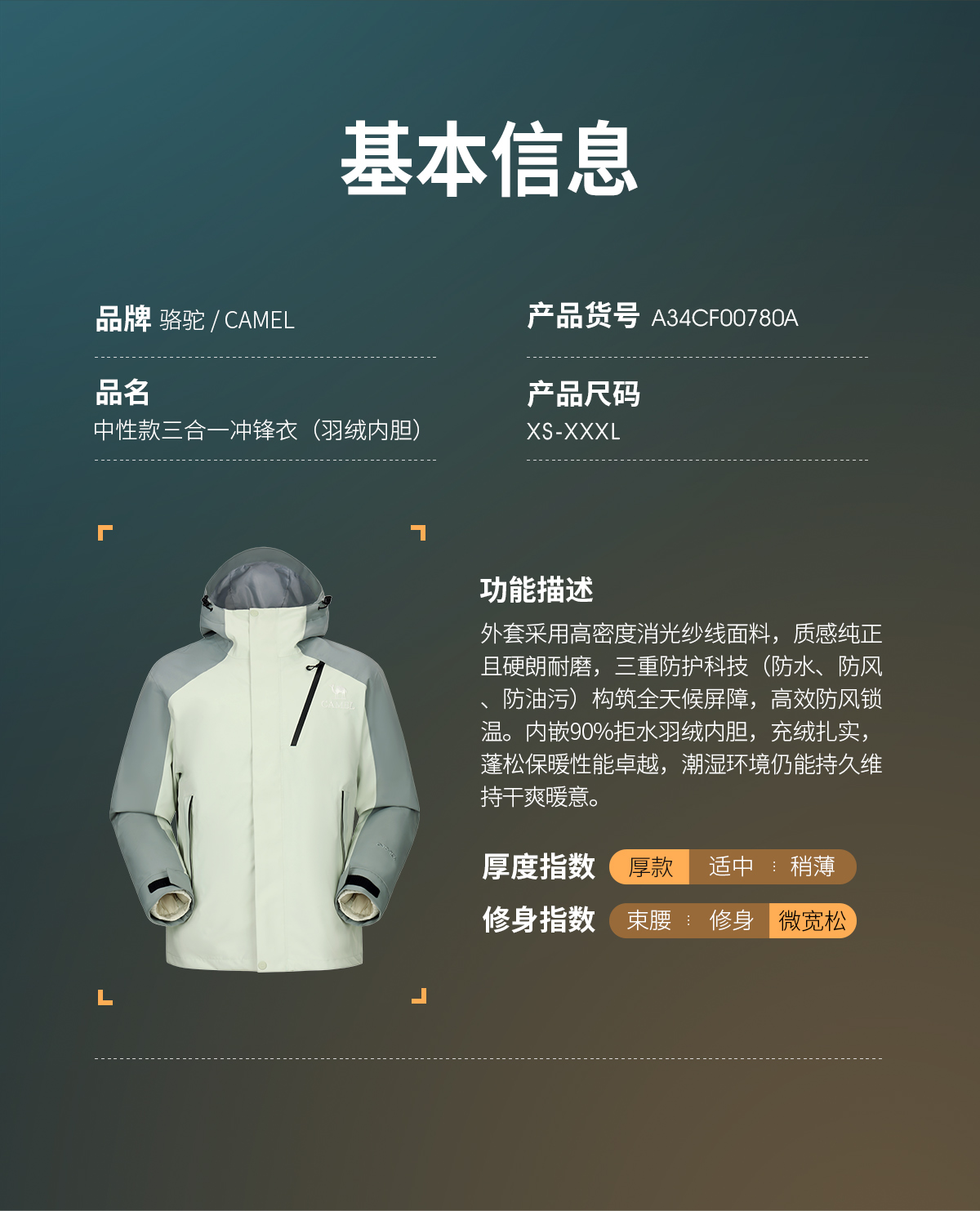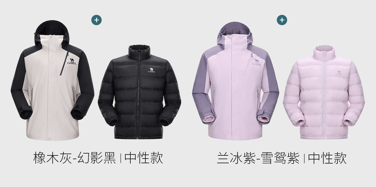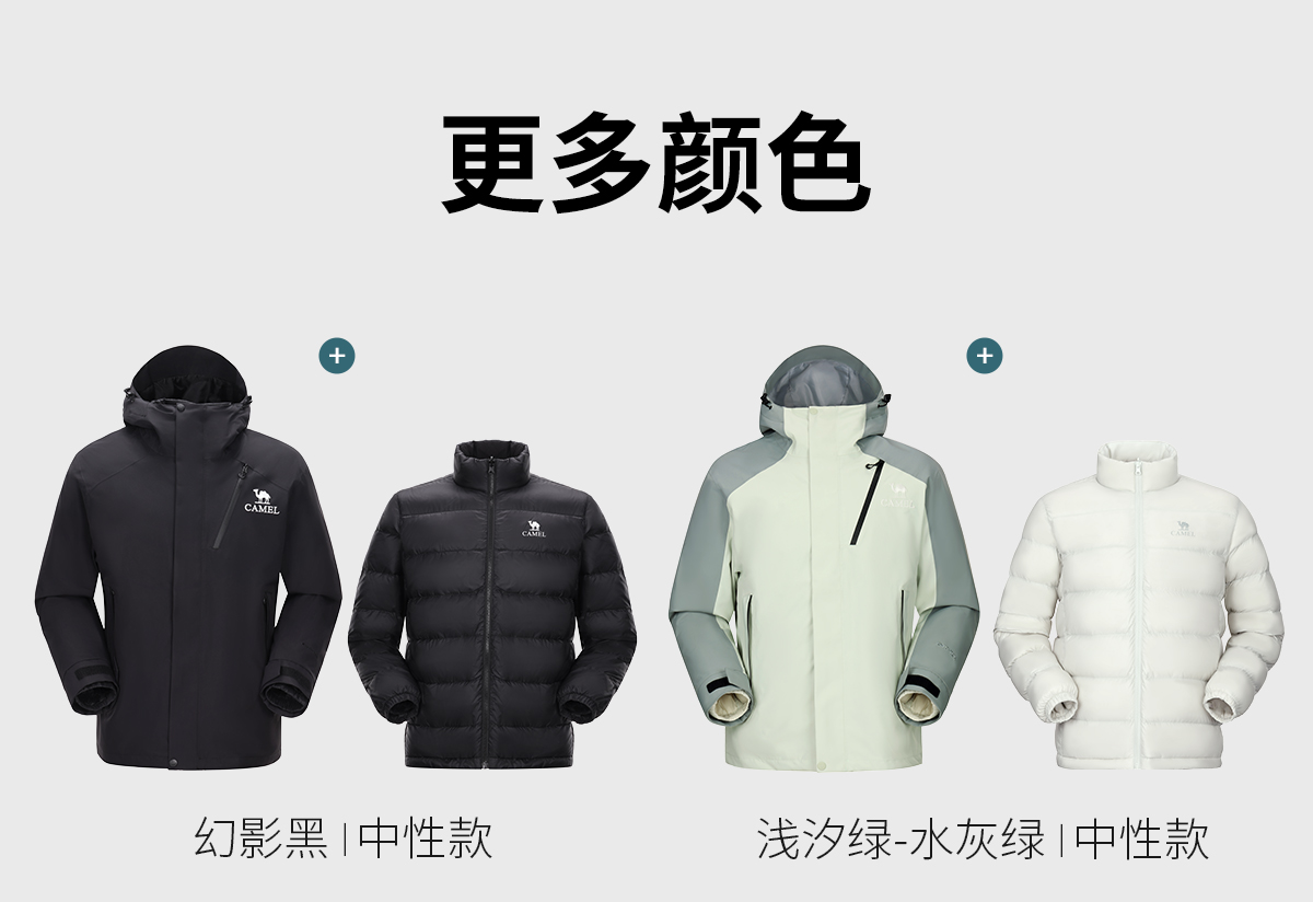 [down Version] Camel King Kaijia Evo Series Three-In-One Jacket for Men and Women, down Jacket, Mountaineering Jacket, Outerwear