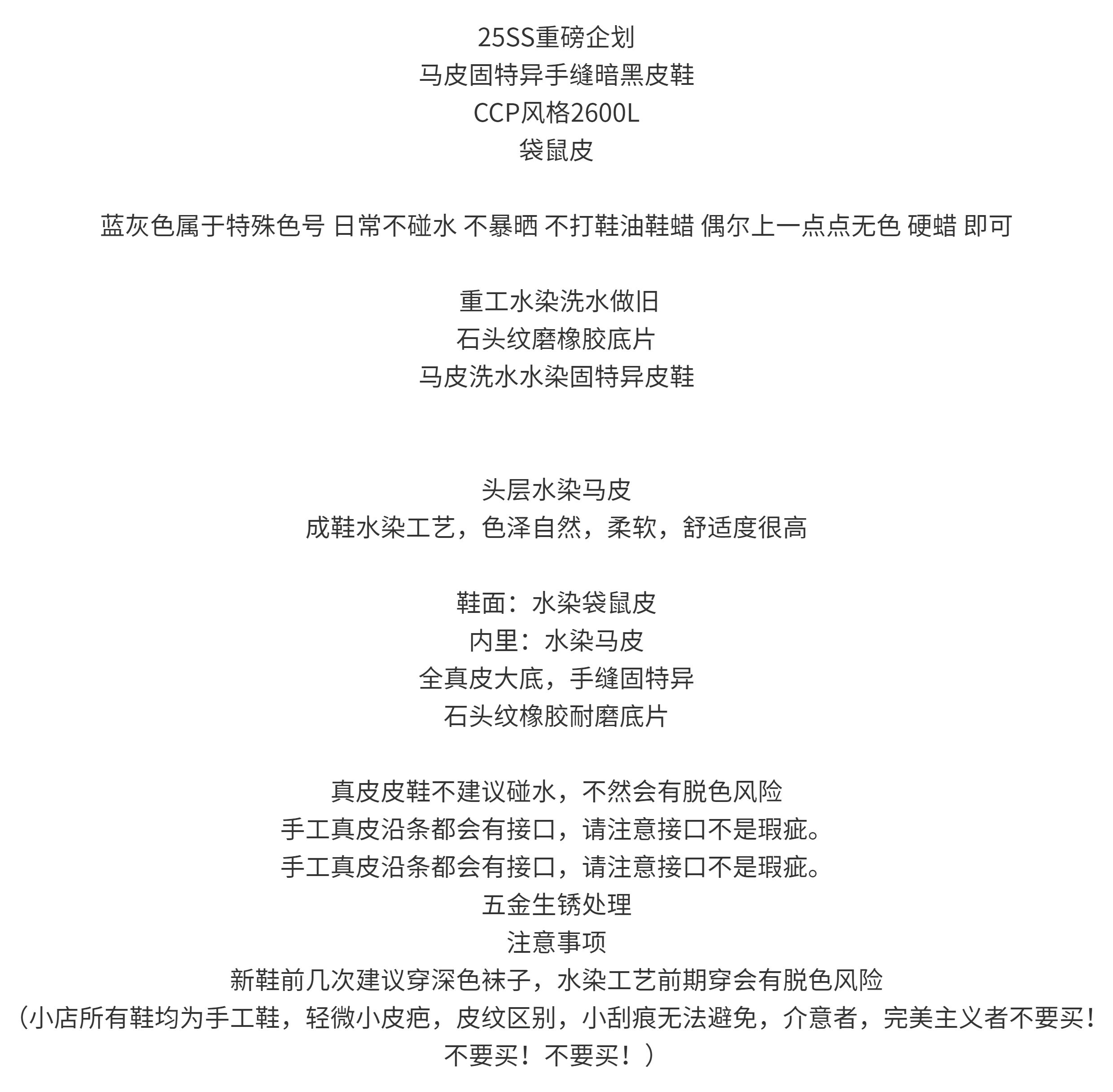 First-Layer Kangaroo Leather Pointed-Toe Lace-Up Dark Avant-Garde Hand-Stitched Goodyear Welted Water-Washed Artisan Derby Leather Shoes 2600L
