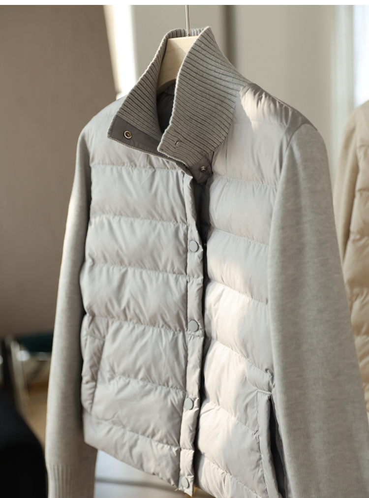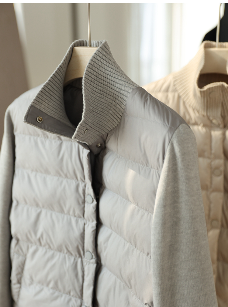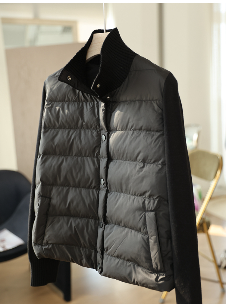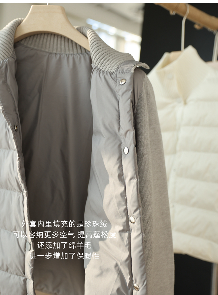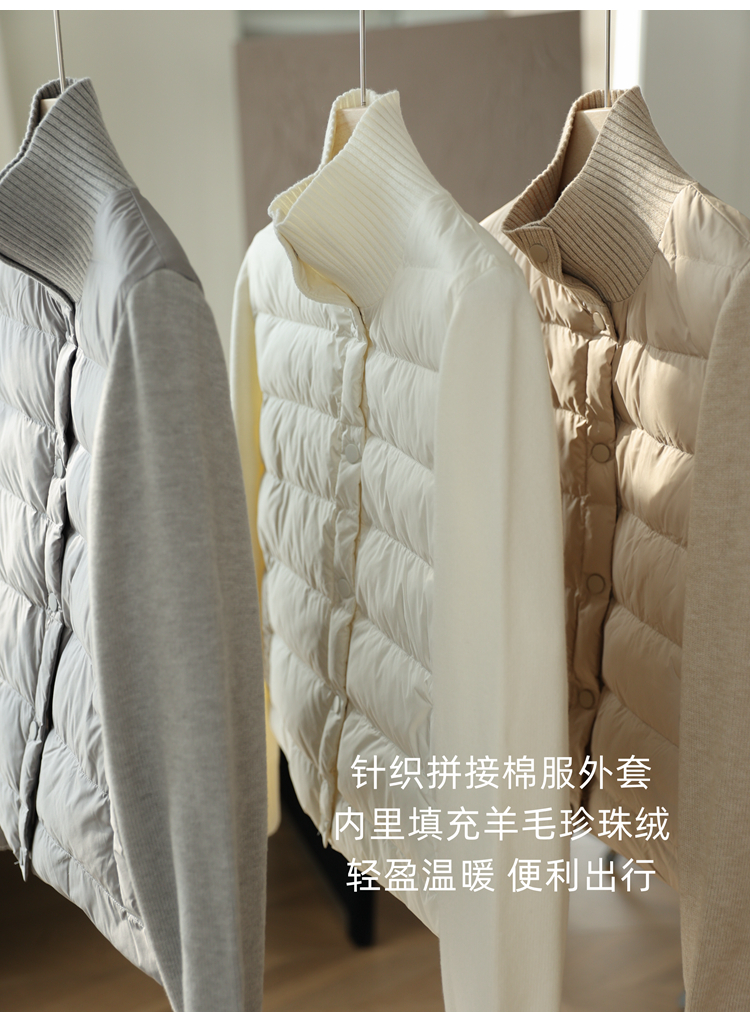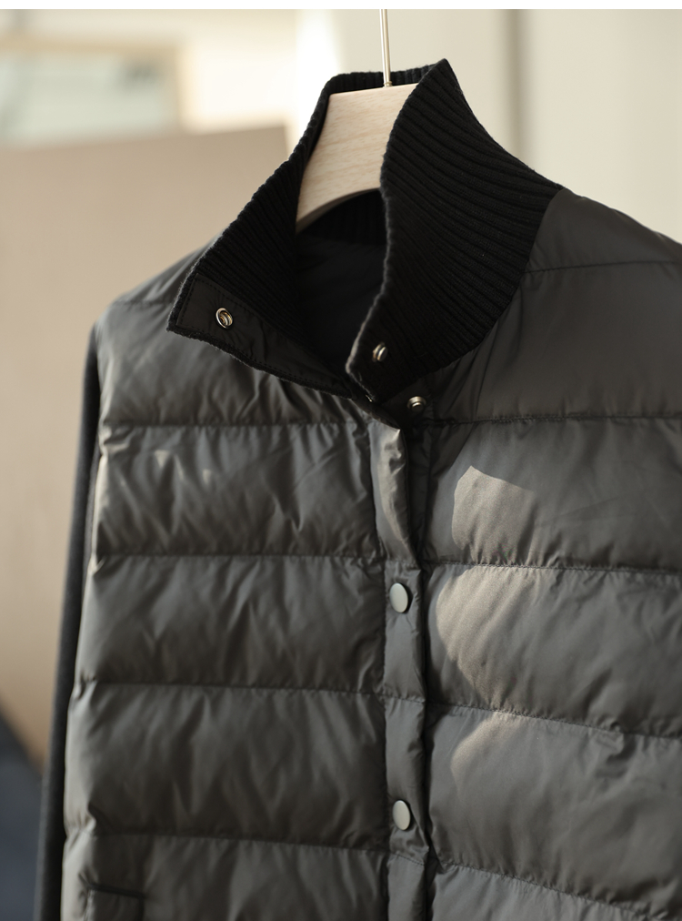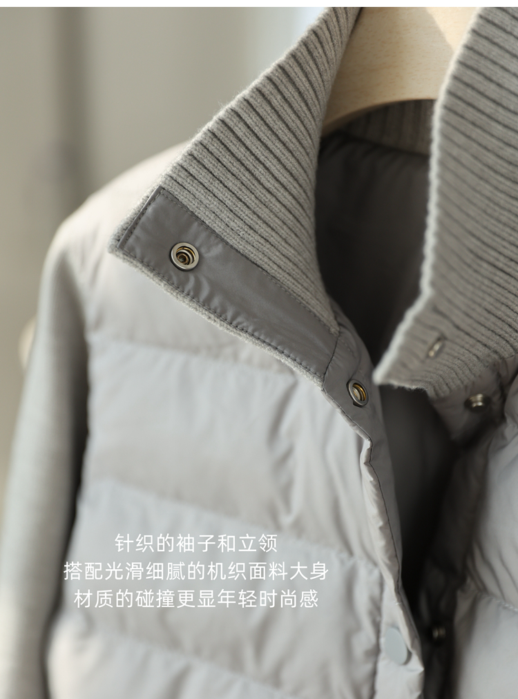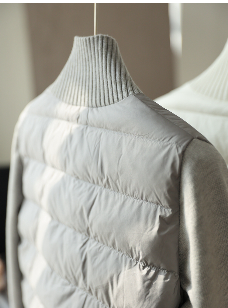 针织的袖子和立领搭配光滑细腻的机织面料大身