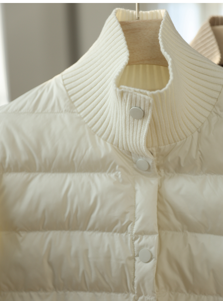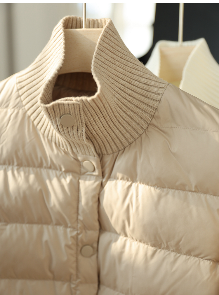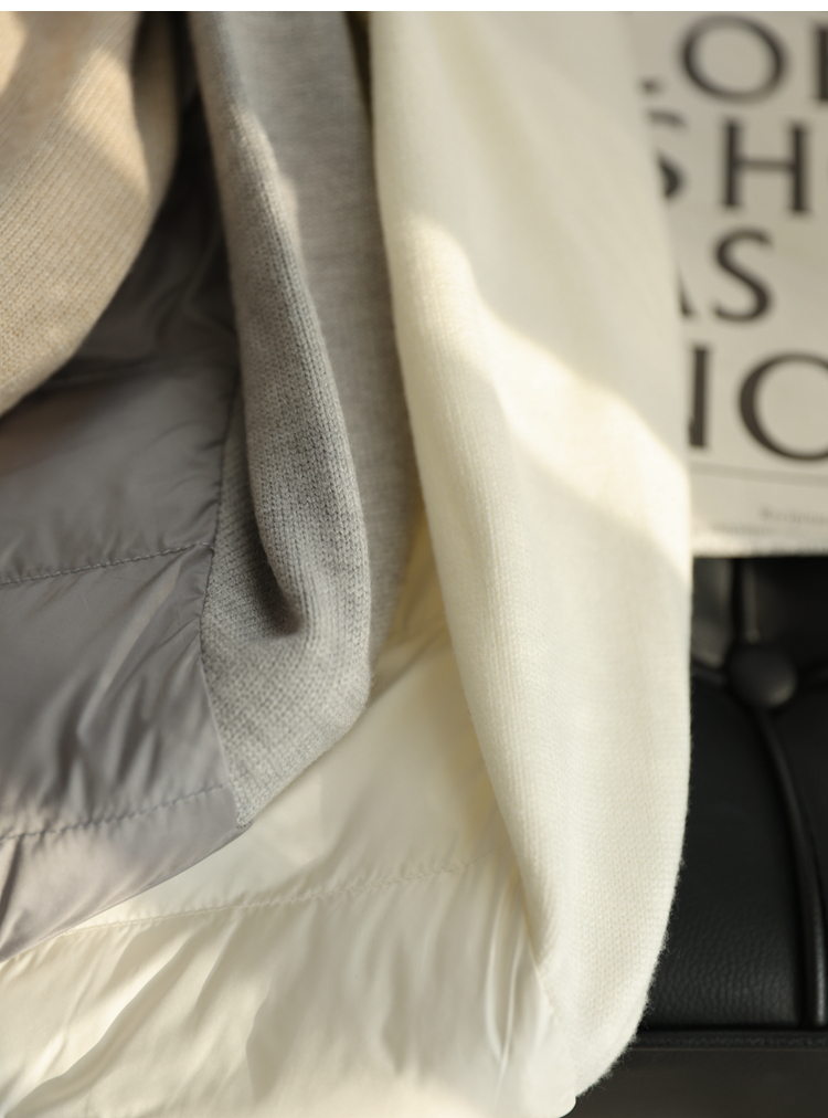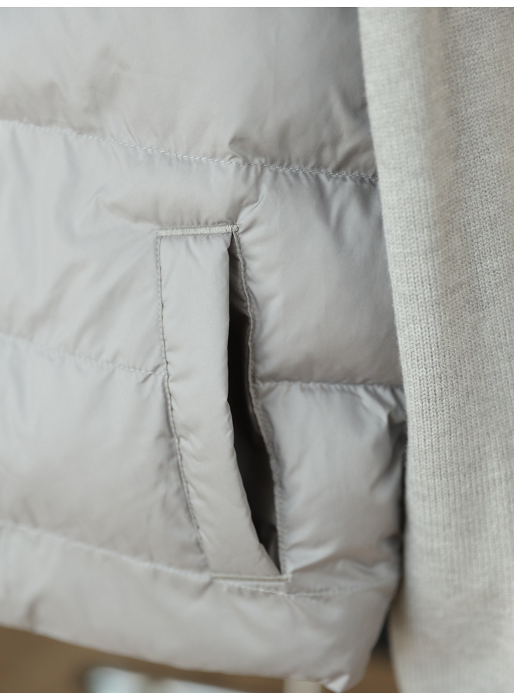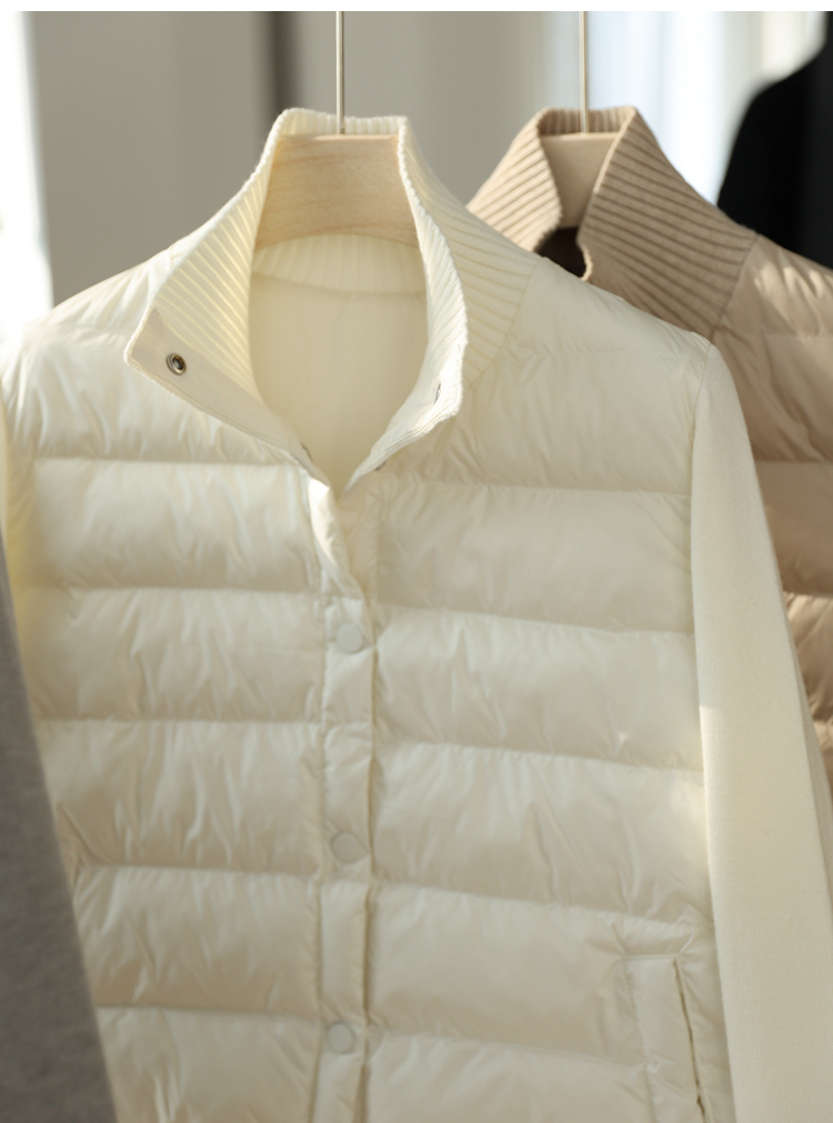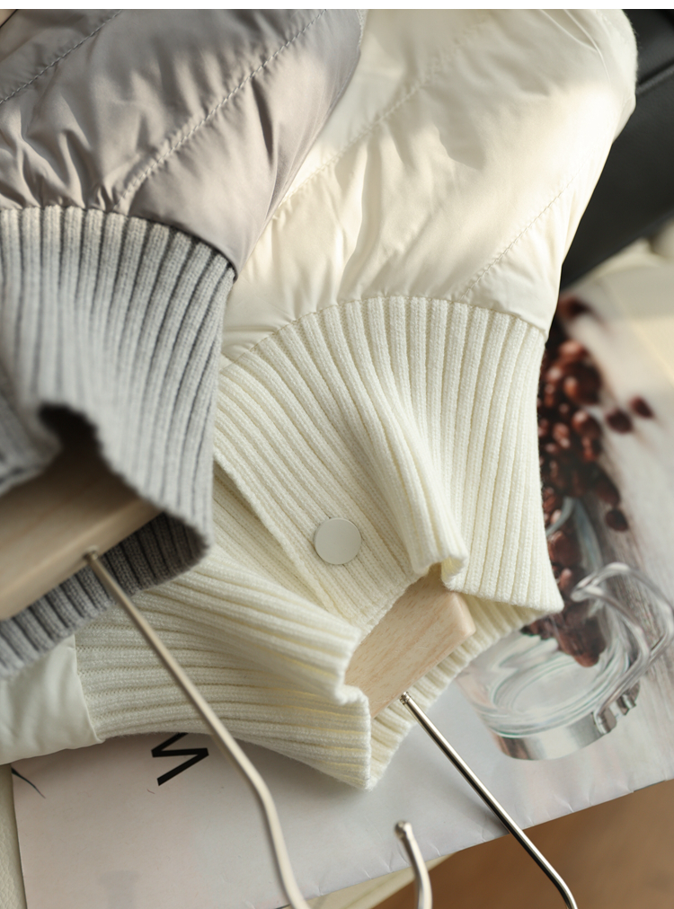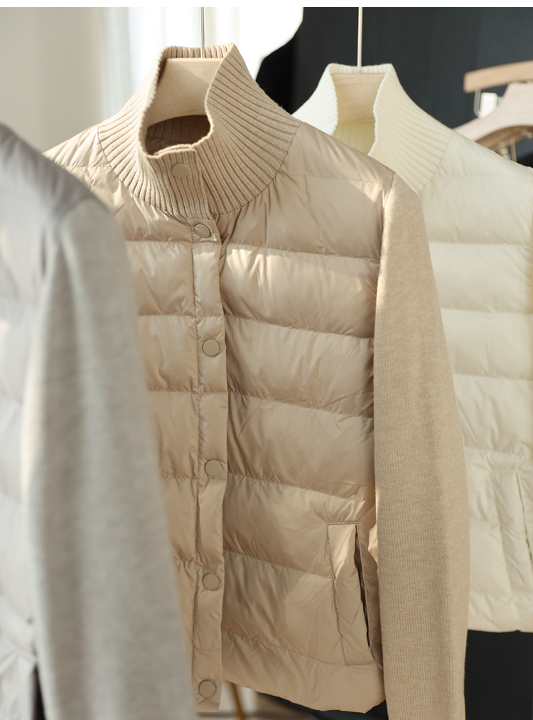 针织的袖子和立领搭配光滑细腻的机织面料大身