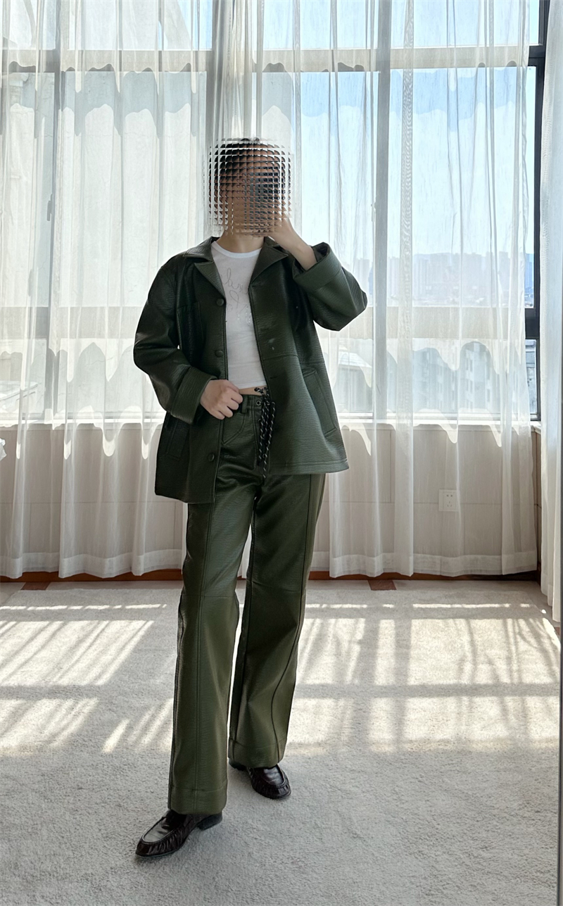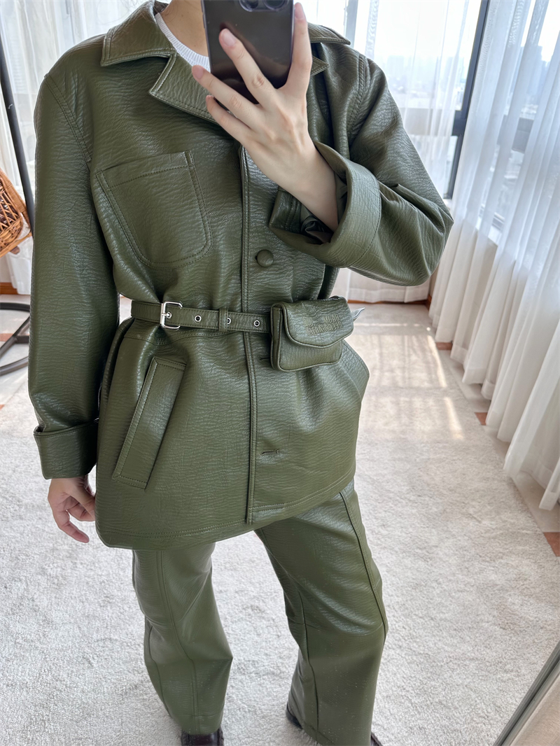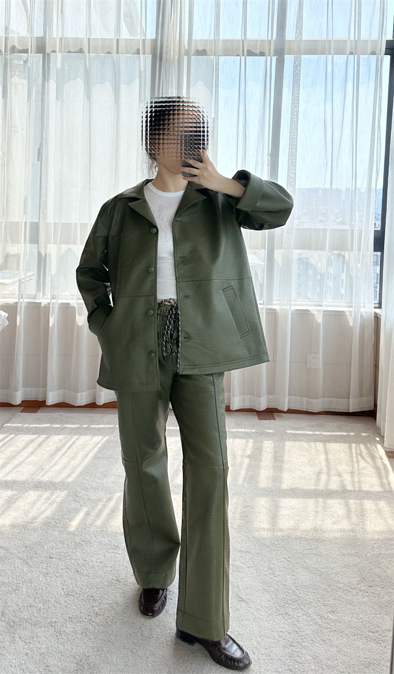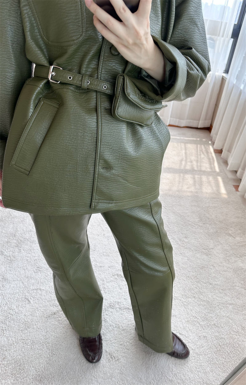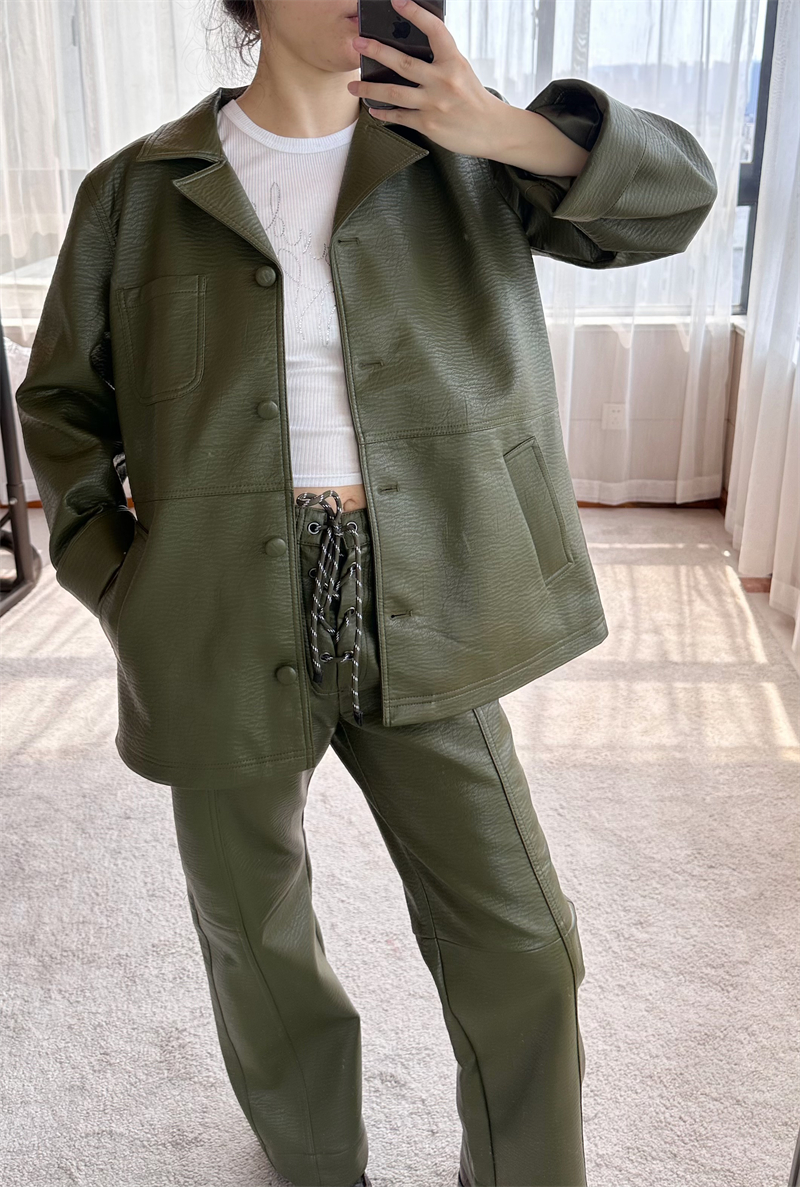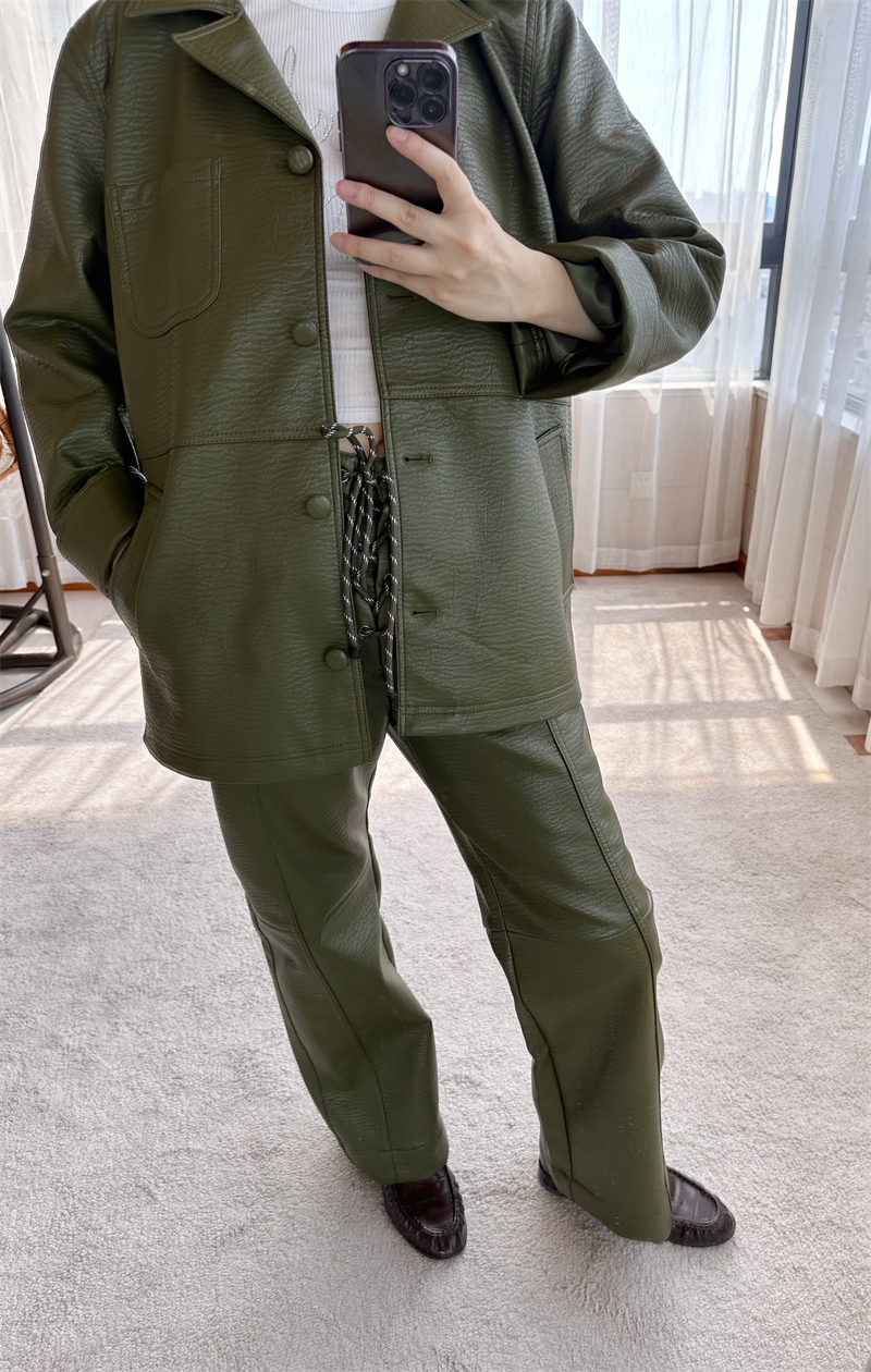 Nordic Niche Bup Irregular Line Embossed Faux Leather Pu Protein Leather Jacket/Leather Pants