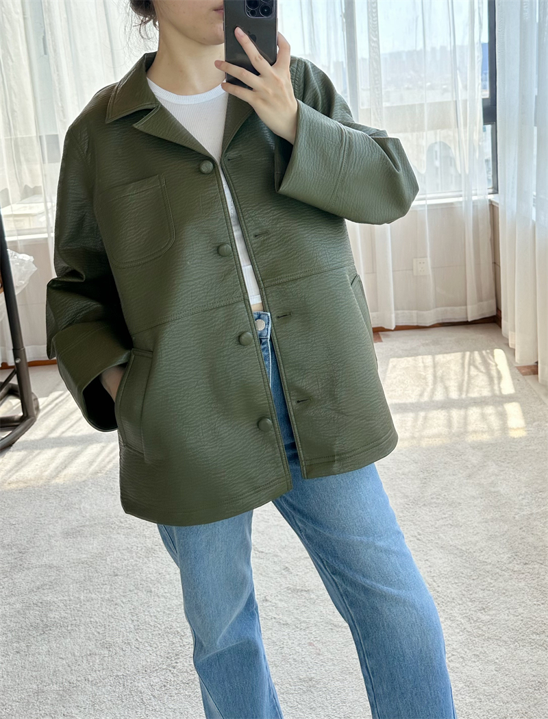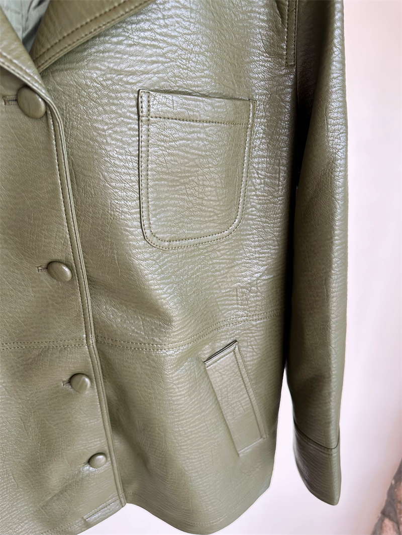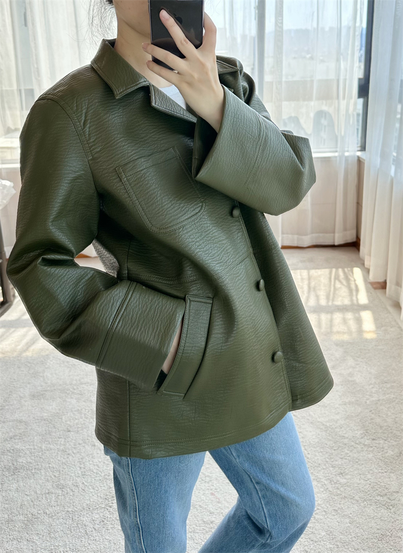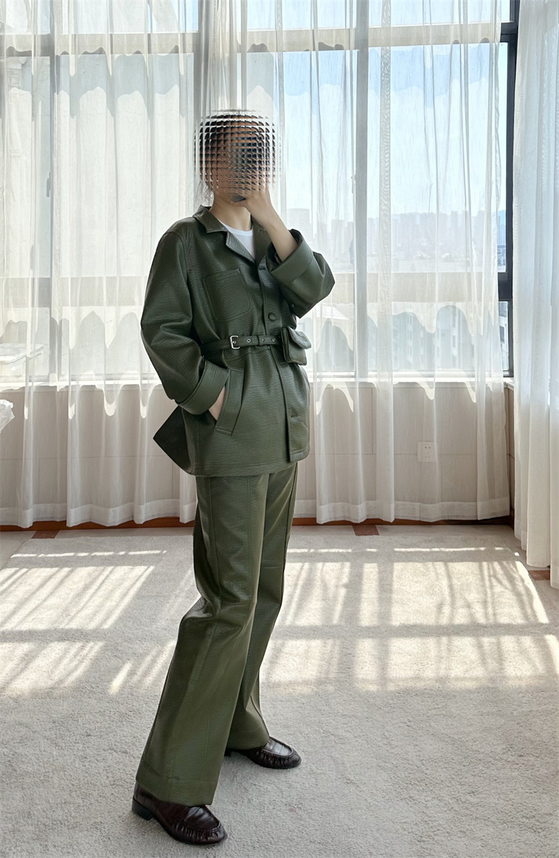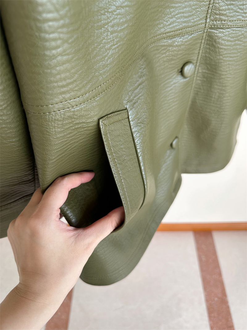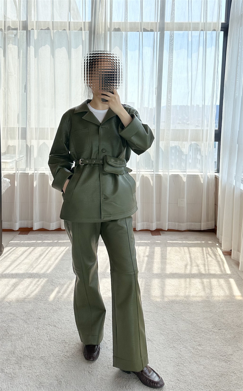 Nordic Niche Bup Irregular Line Embossed Faux Leather Pu Protein Leather Jacket/Leather Pants