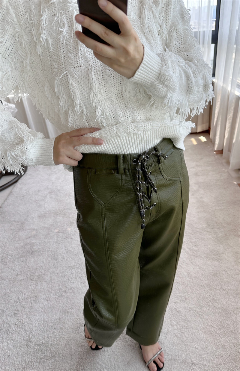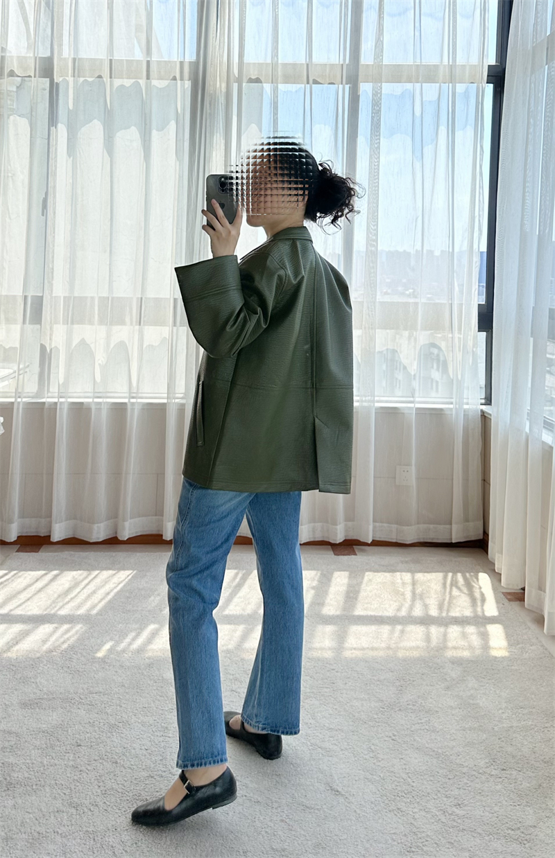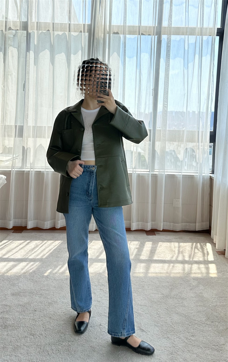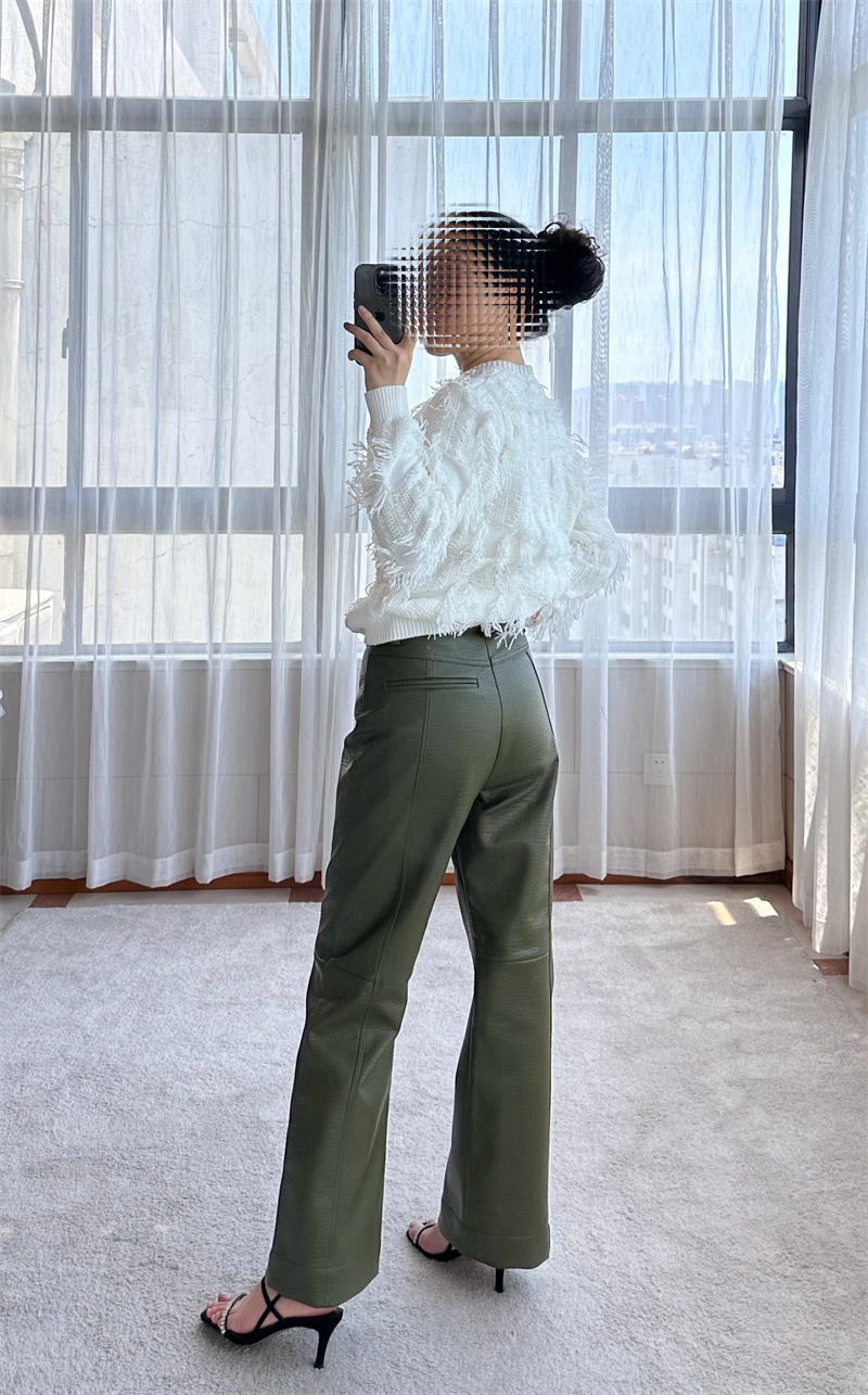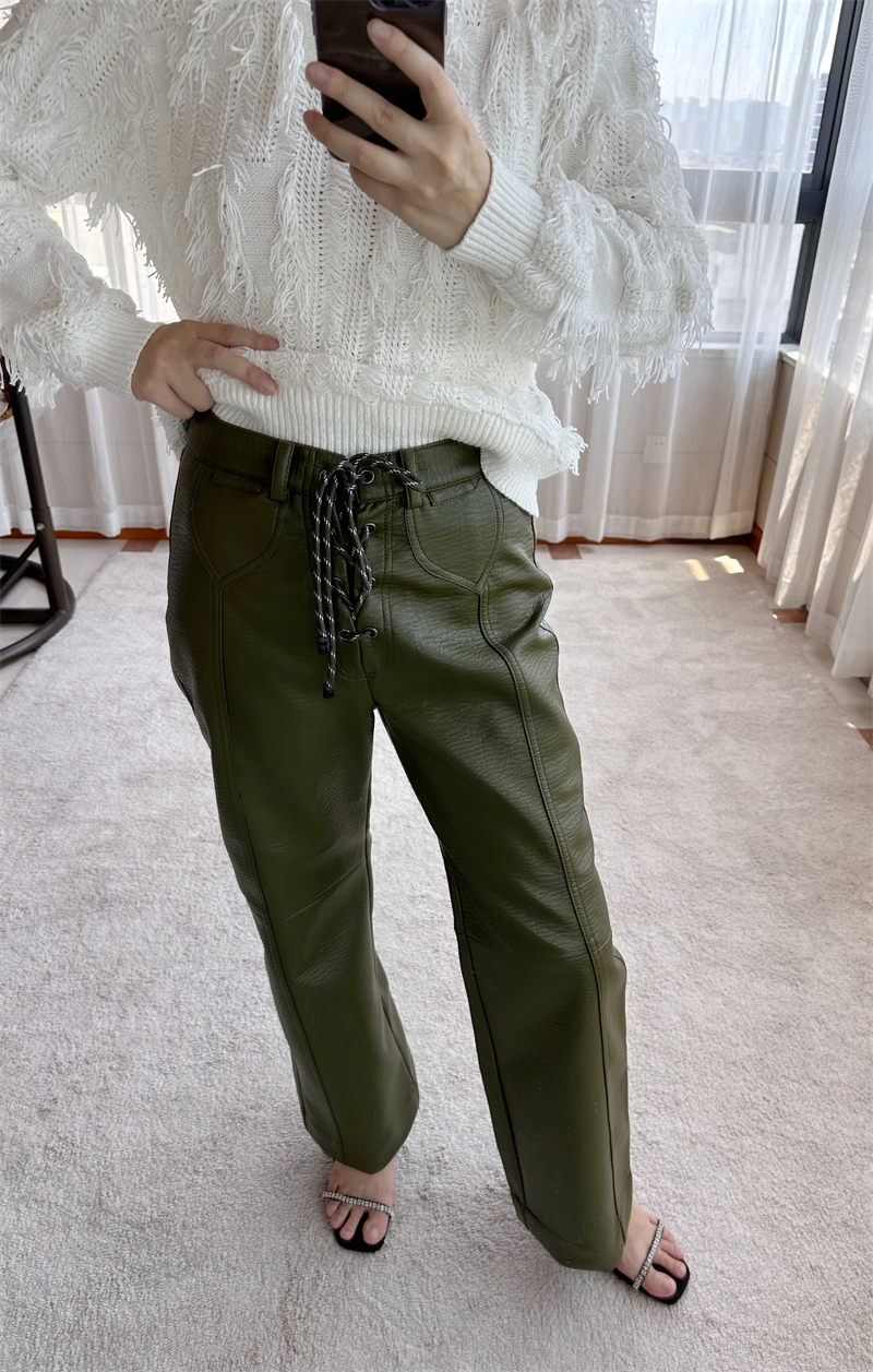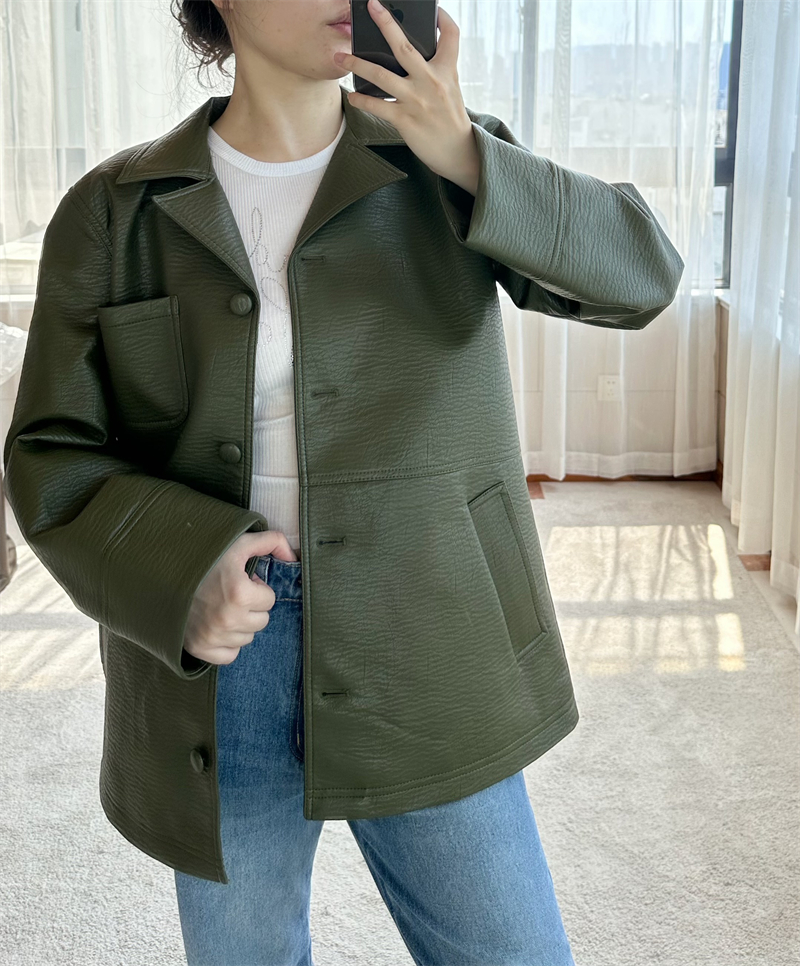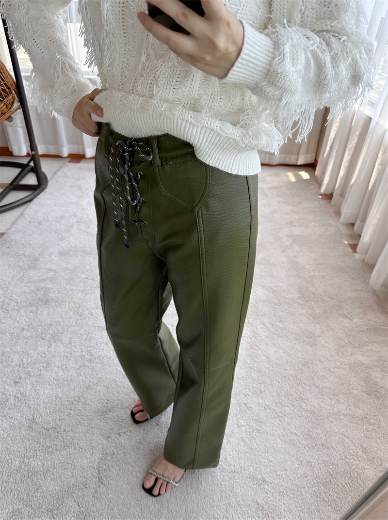 Nordic Niche Bup Irregular Line Embossed Faux Leather Pu Protein Leather Jacket/Leather Pants