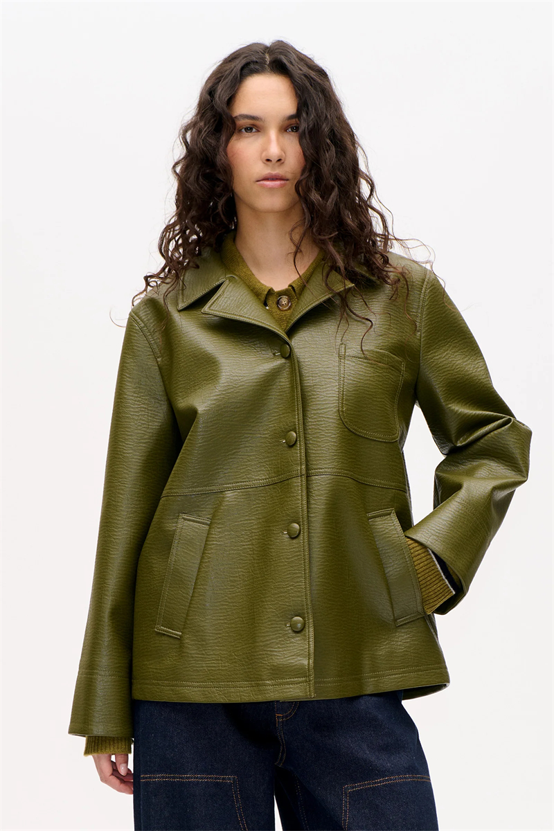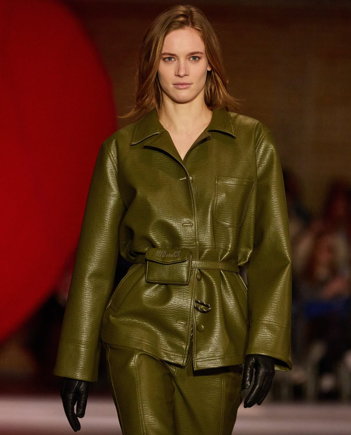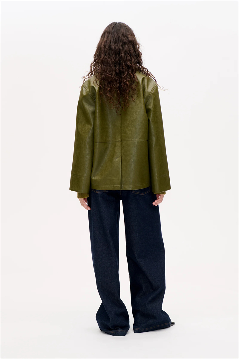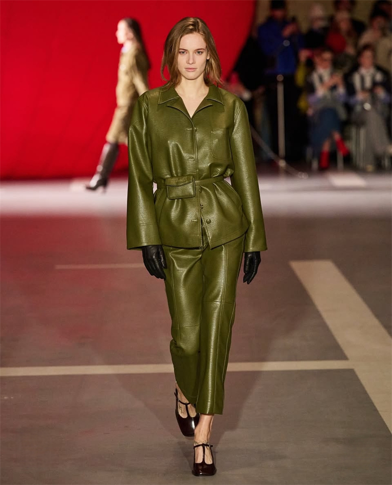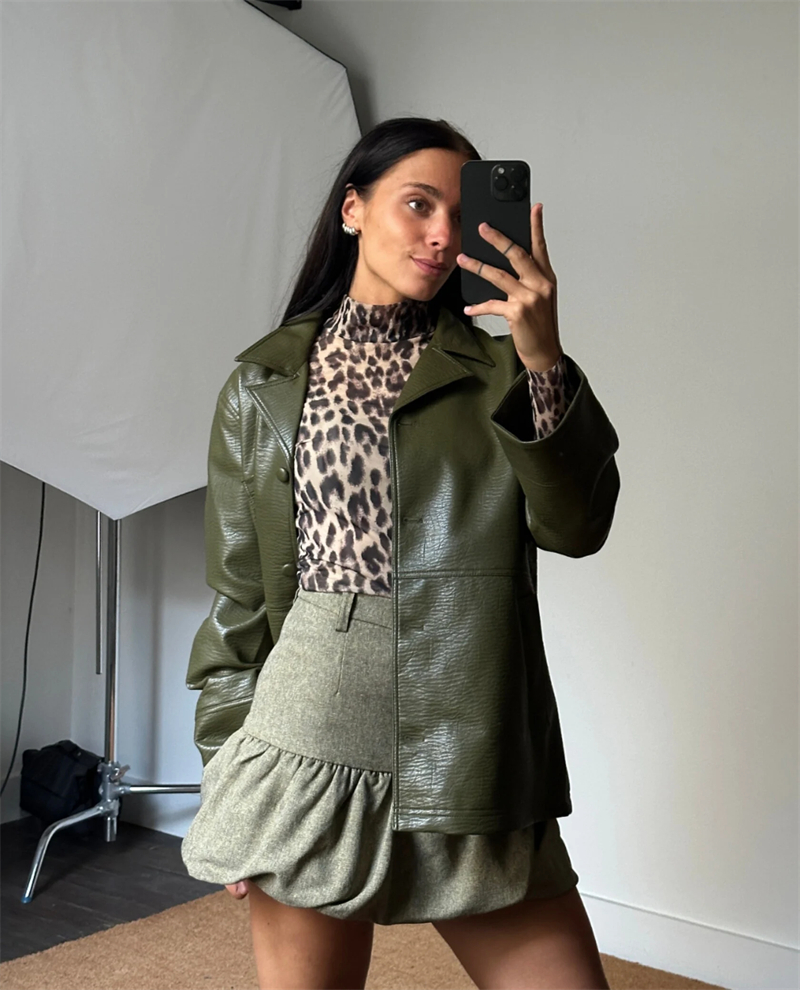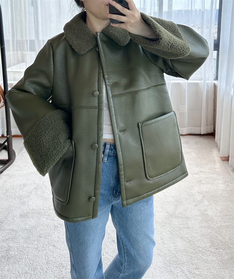Nordic Niche Bup Irregular Line Embossed Faux Leather Pu Protein Leather Jacket/Leather Pants