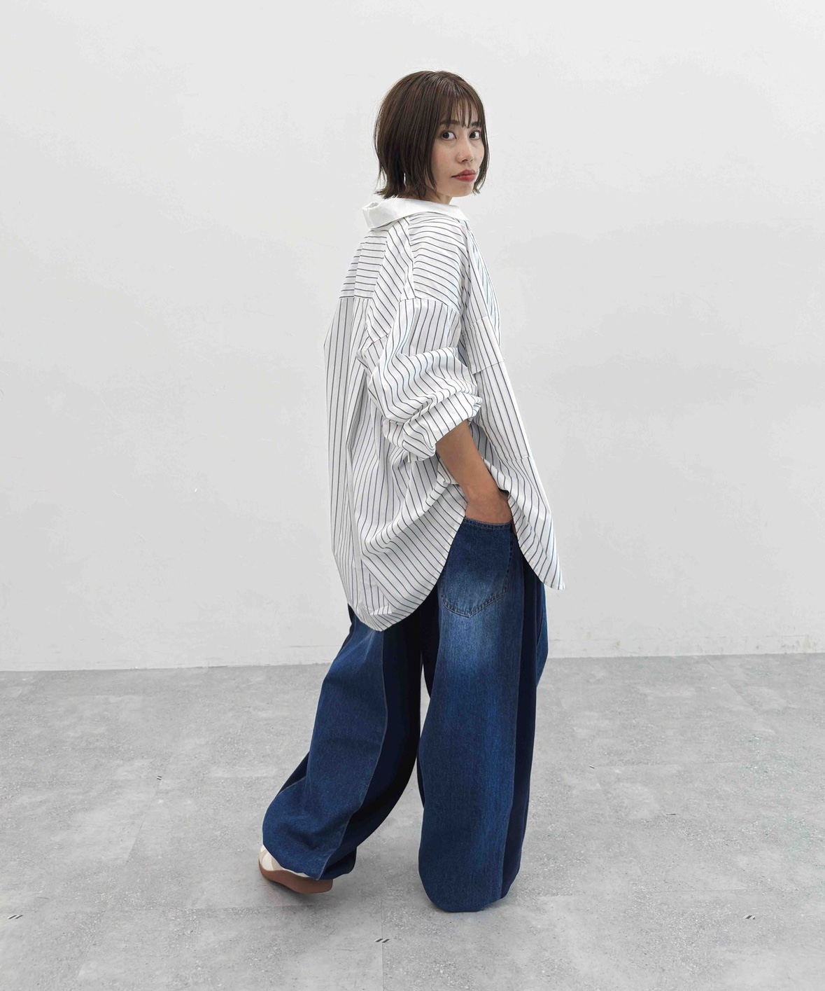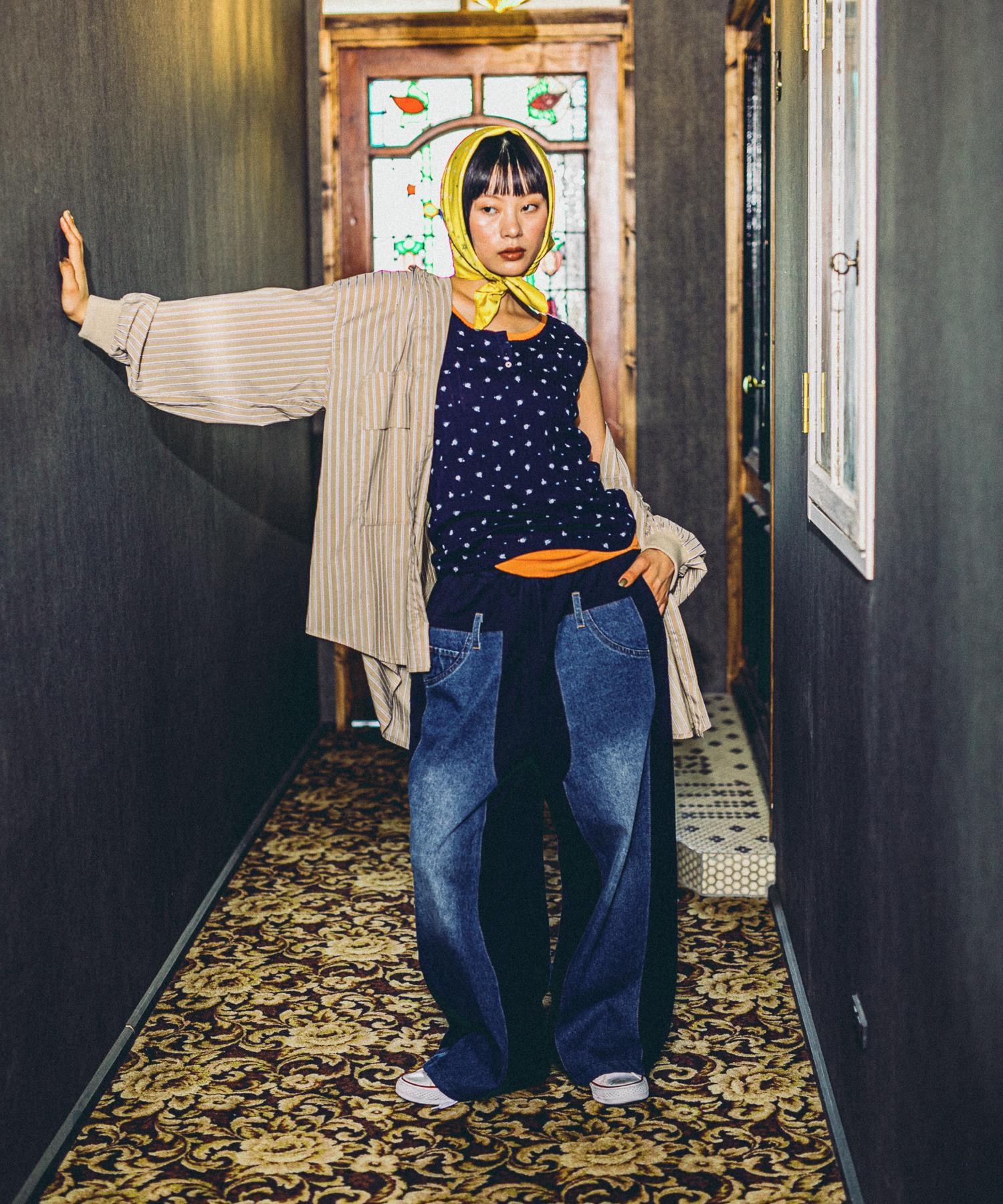 2025 Autumn New arrival Export Japan Original Single Material Patchwork Color Matching Drawstring Denim
