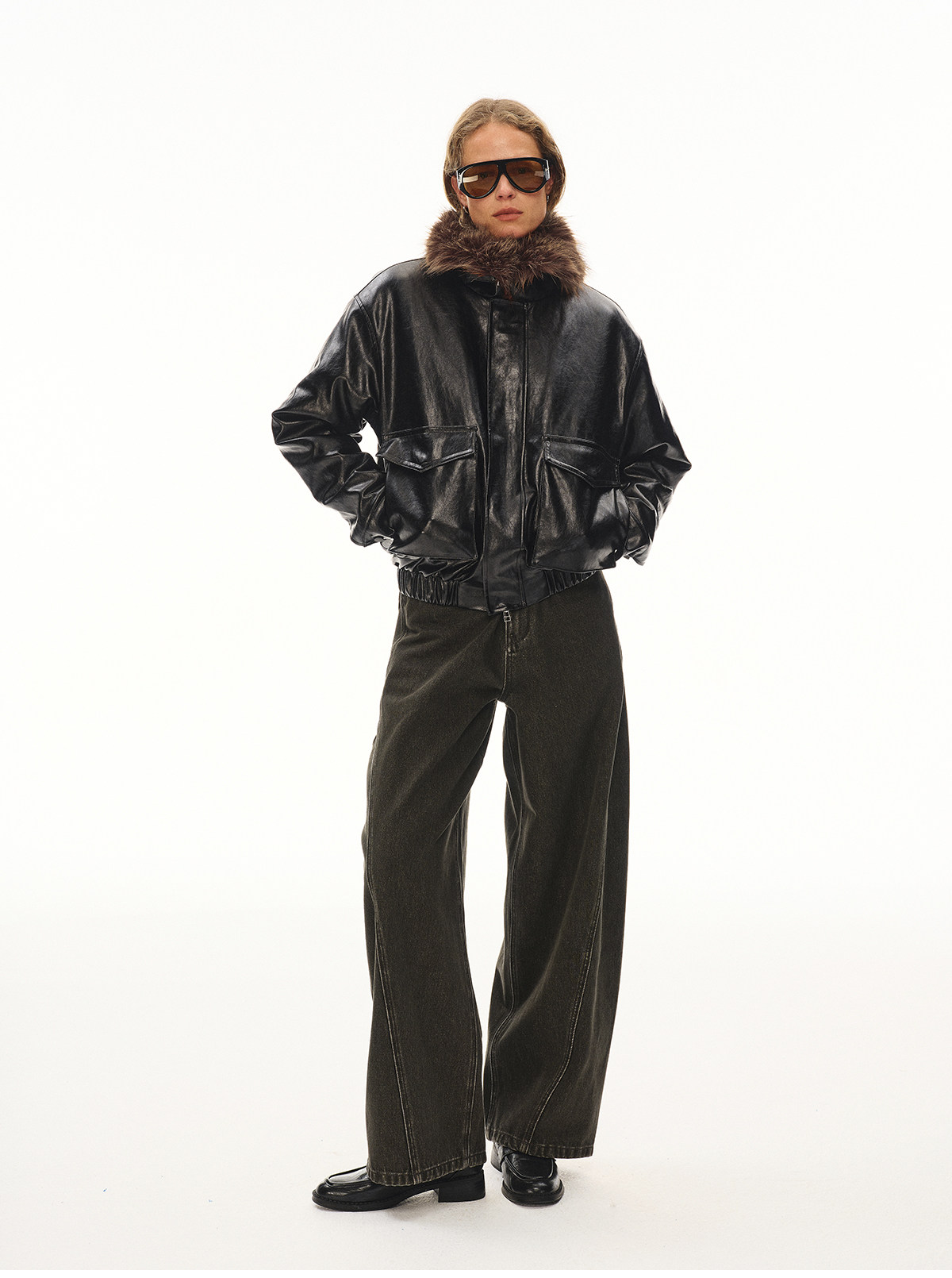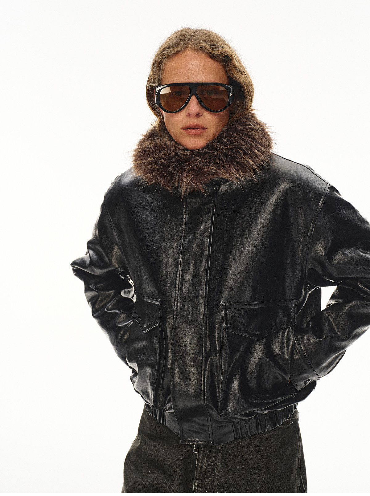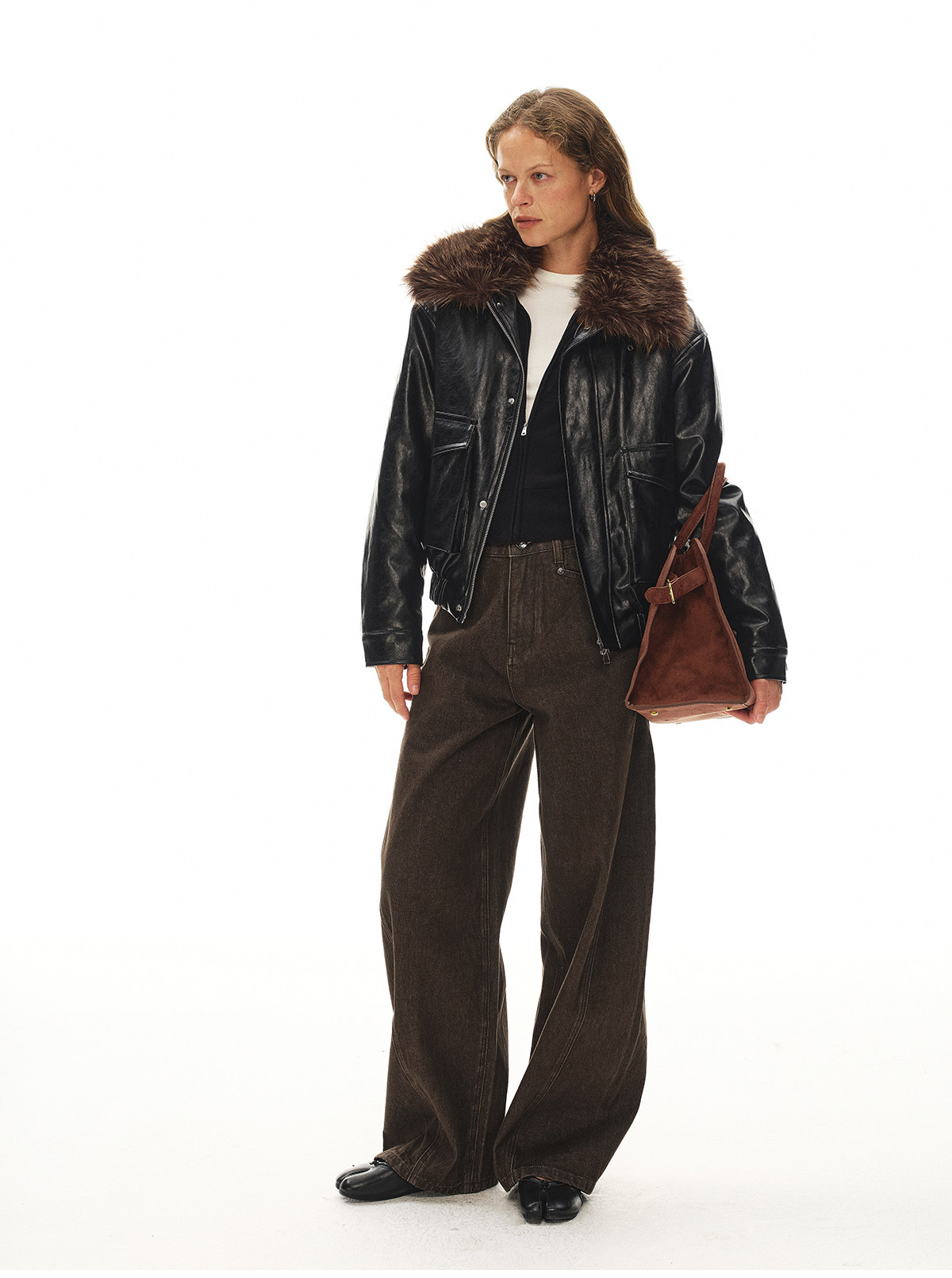 Right Above Air Wash Eco-Friendly Fur Collar Padded Leather Jacket Coat Super Warm Winter 25