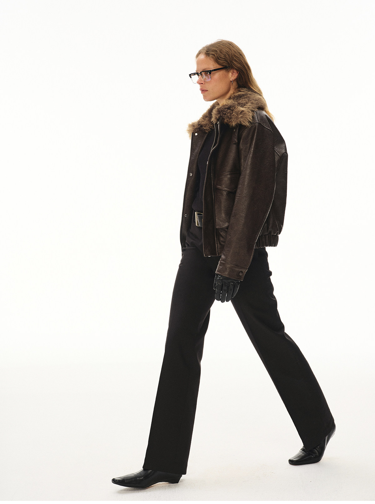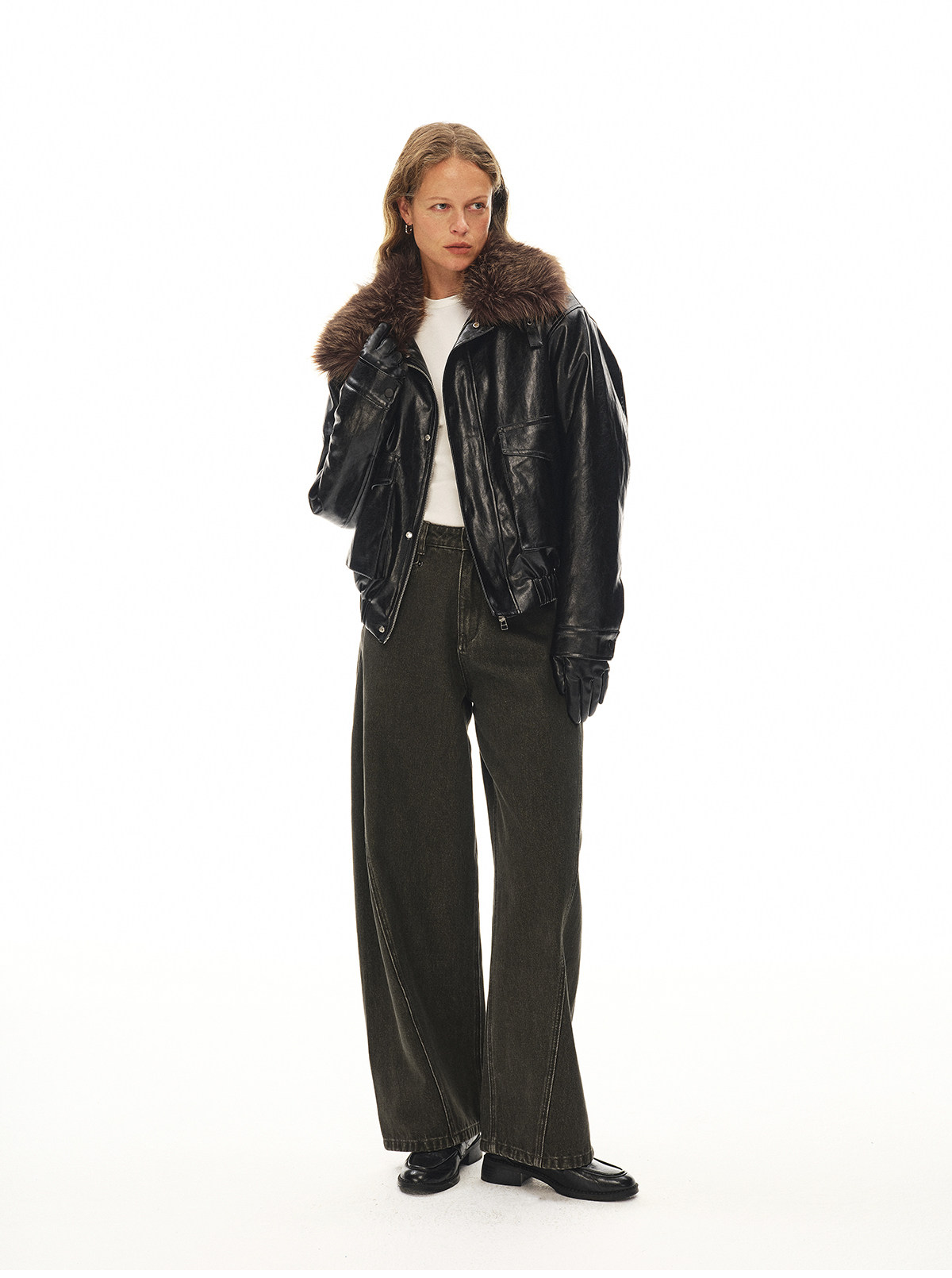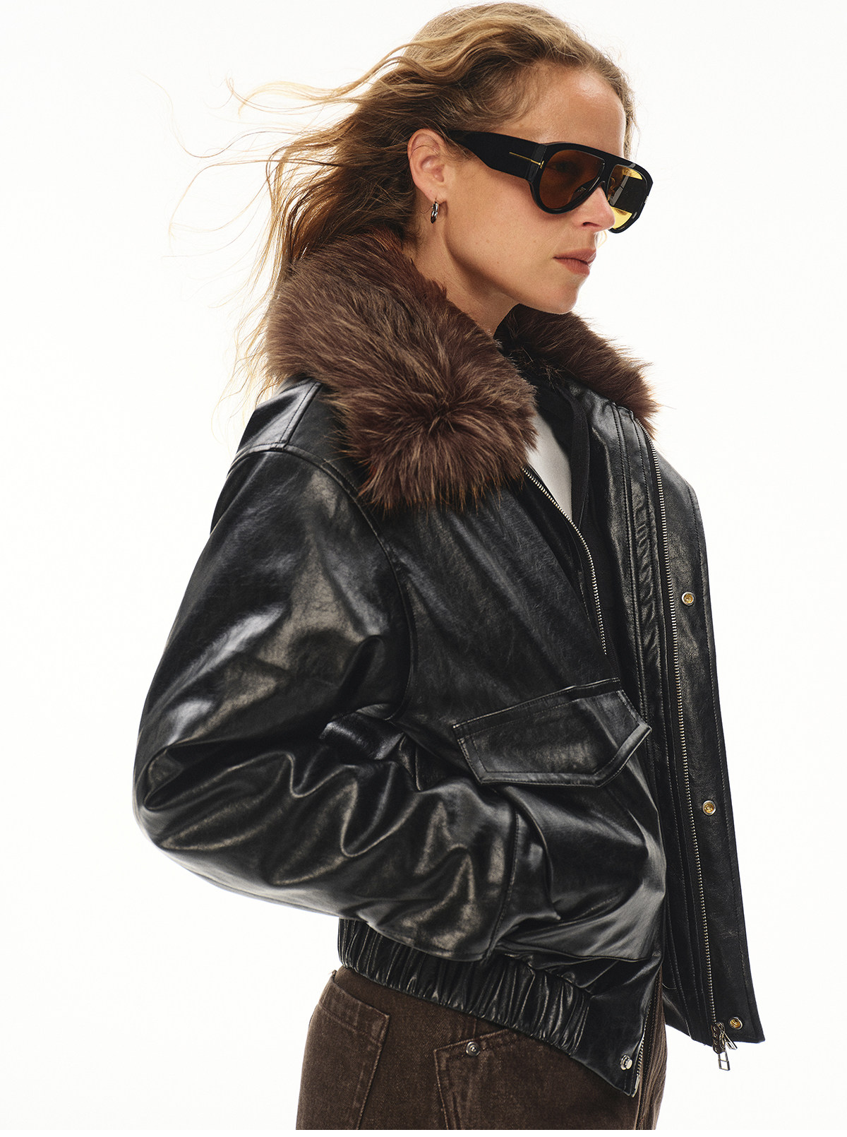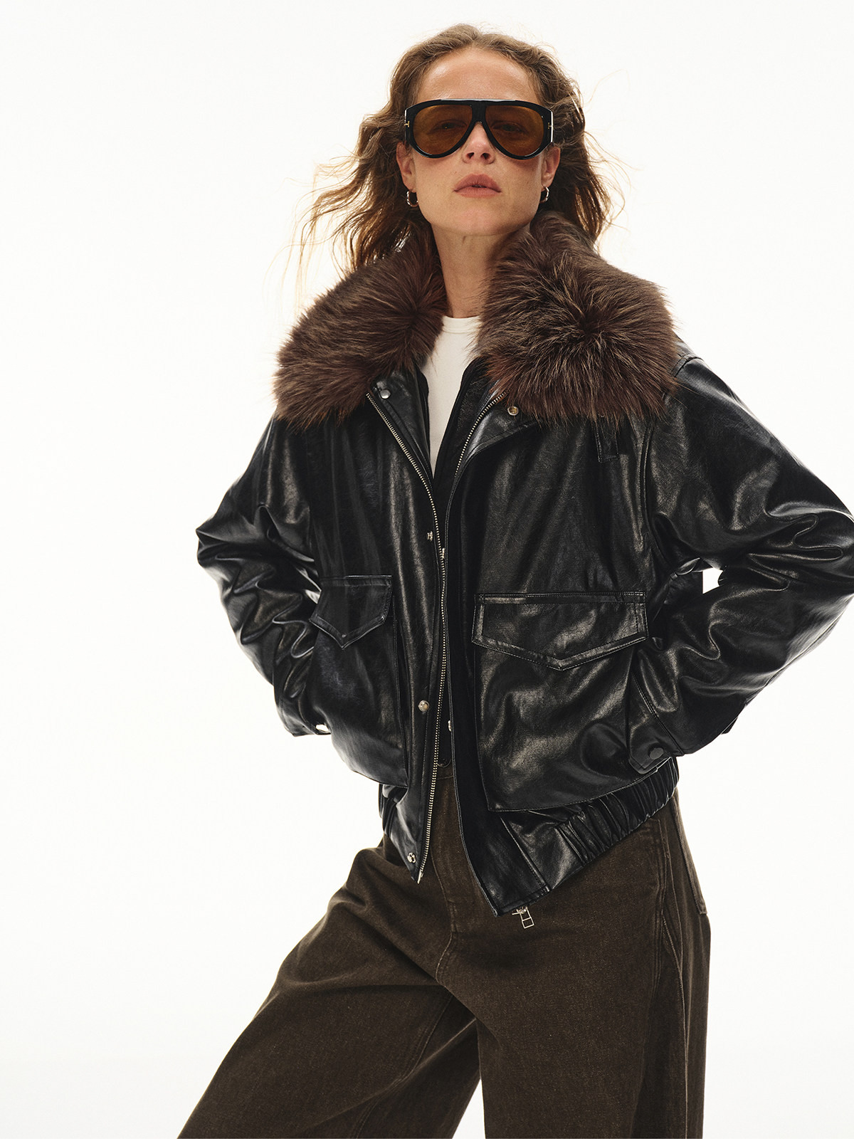 Right Above Air Wash Eco-Friendly Fur Collar Padded Leather Jacket Coat Super Warm Winter 25