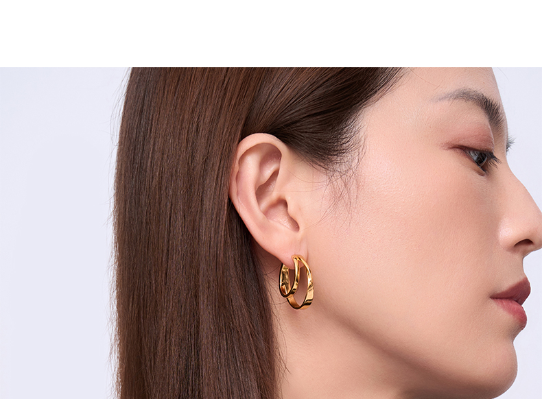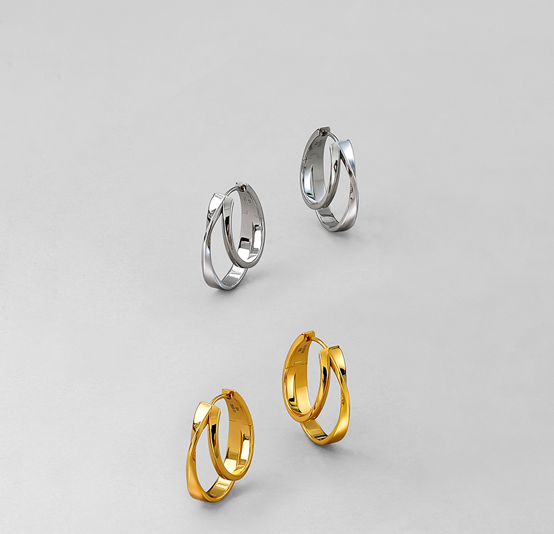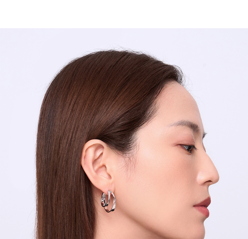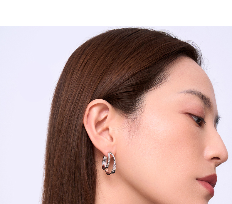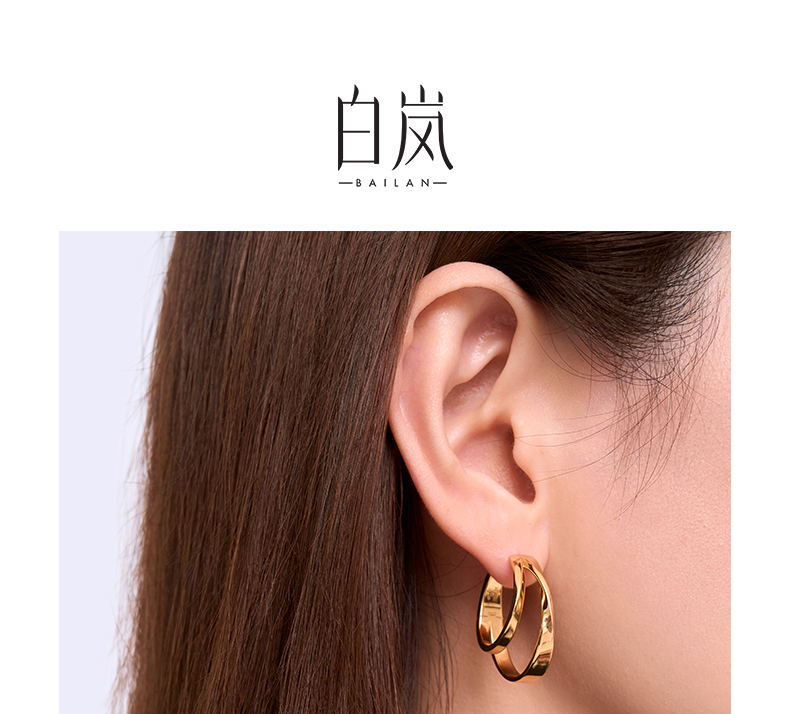 【New on Double 11】Bai Lan Silk Road Double Circle Ear Cuffs 925 Silver Women's Earrings New Jewelry Ed4797